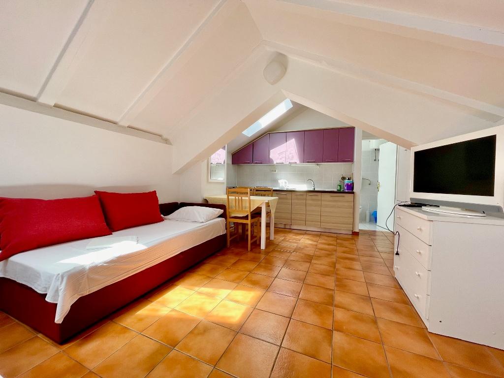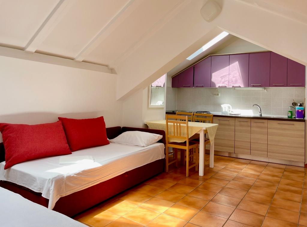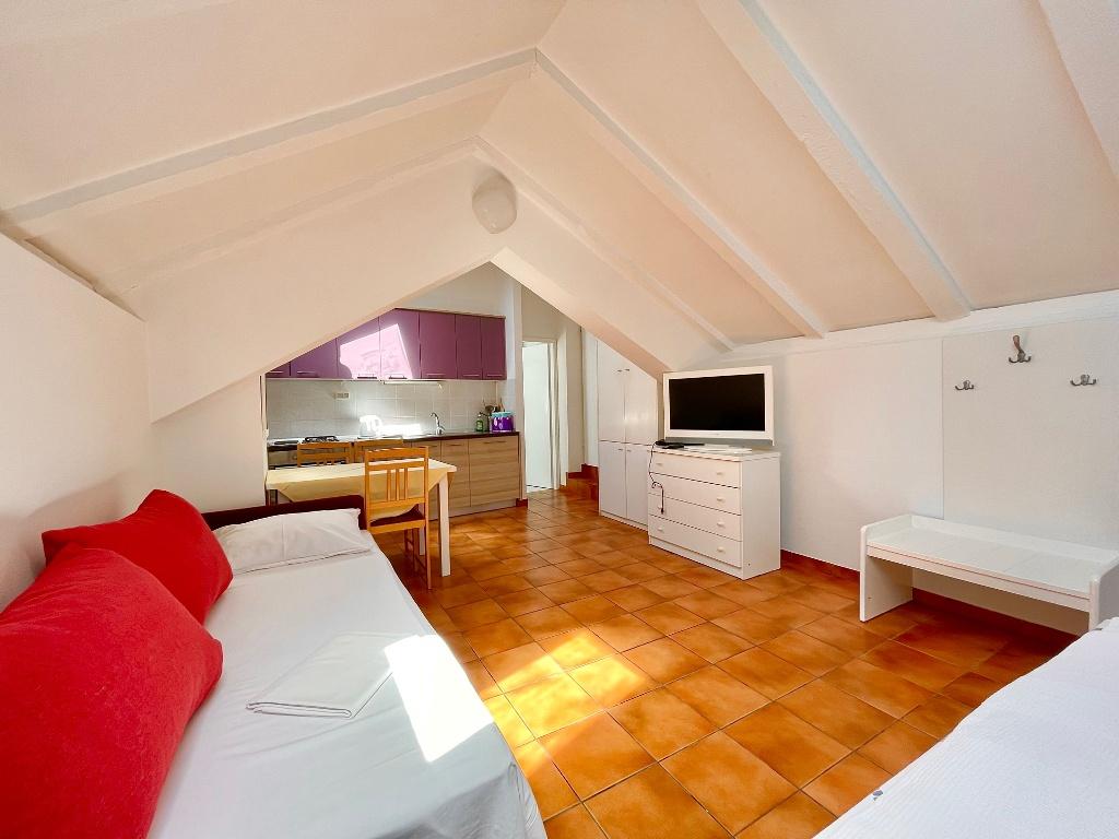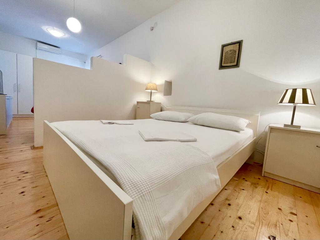 Accommodation as in the photos, everything OK. The owner of the house is a super nice person. He can speak English, Slovak, Czech, Croatian. Parking in front of the house, ice cream parlor right under the house, pizzeria right next door, 2x shops within 3 minutes walk. The beach is great, right in the water you have a big bouncy castle. Just great.
