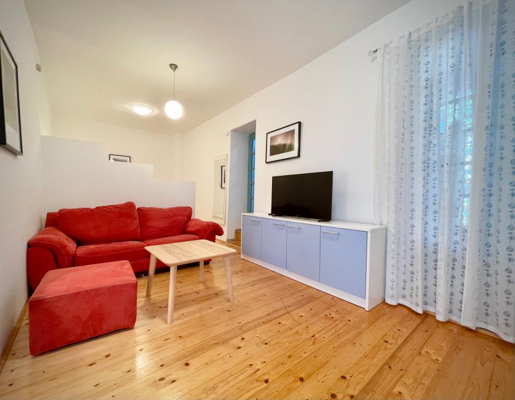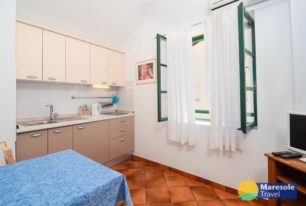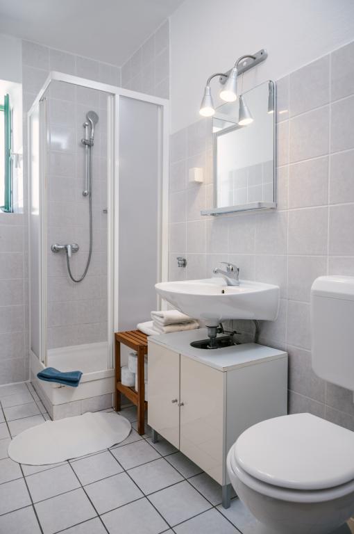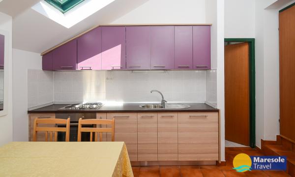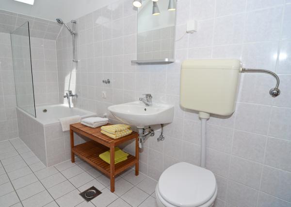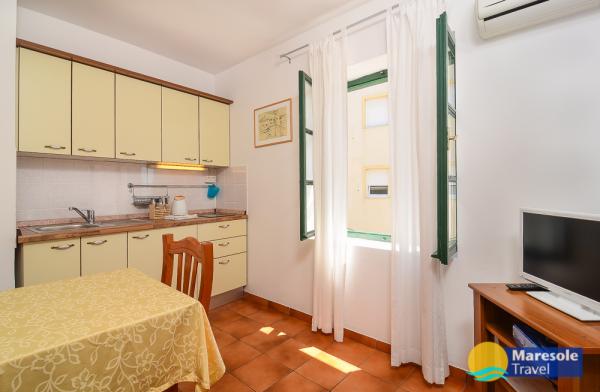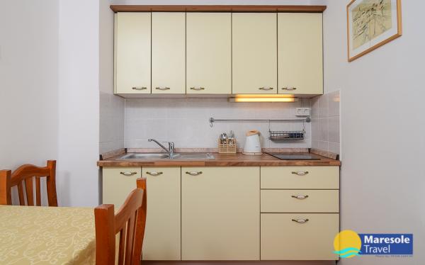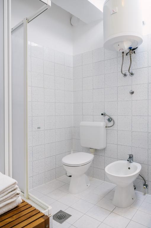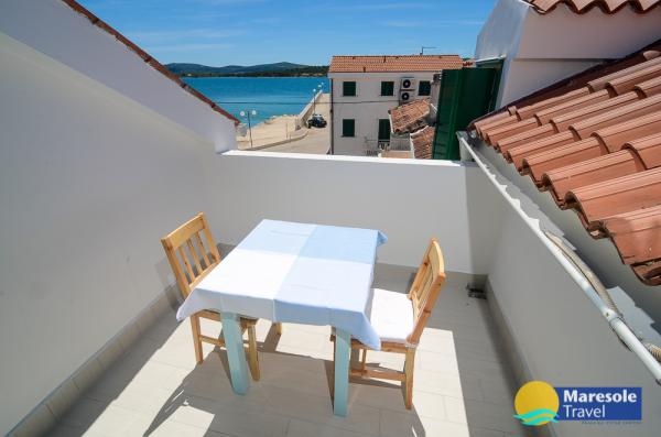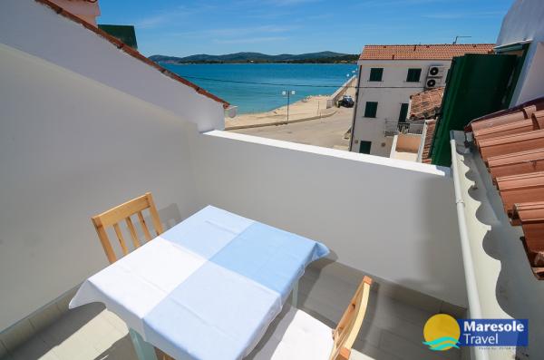Modernly equipped apartments are located on the first floor and the second floor (attic) in the house in the center, on the first line to the beach, overlooking the sea. Apartments consist of living room with kitchen and dining corner in one, one apartment with balcony and sea view, one double bedroom, bathroom with shower / WC. Parking in public space in front of the house. - Supplement for pets E5, 00 per day.