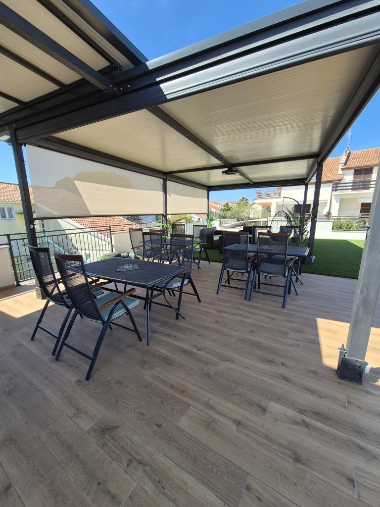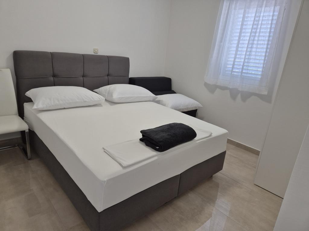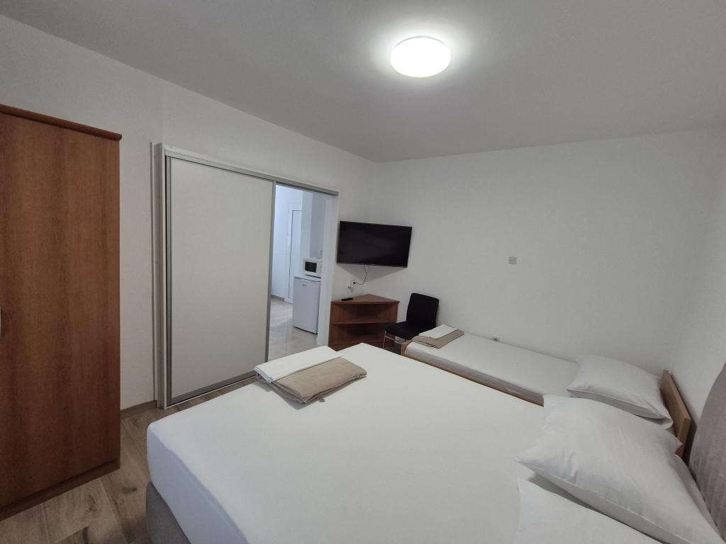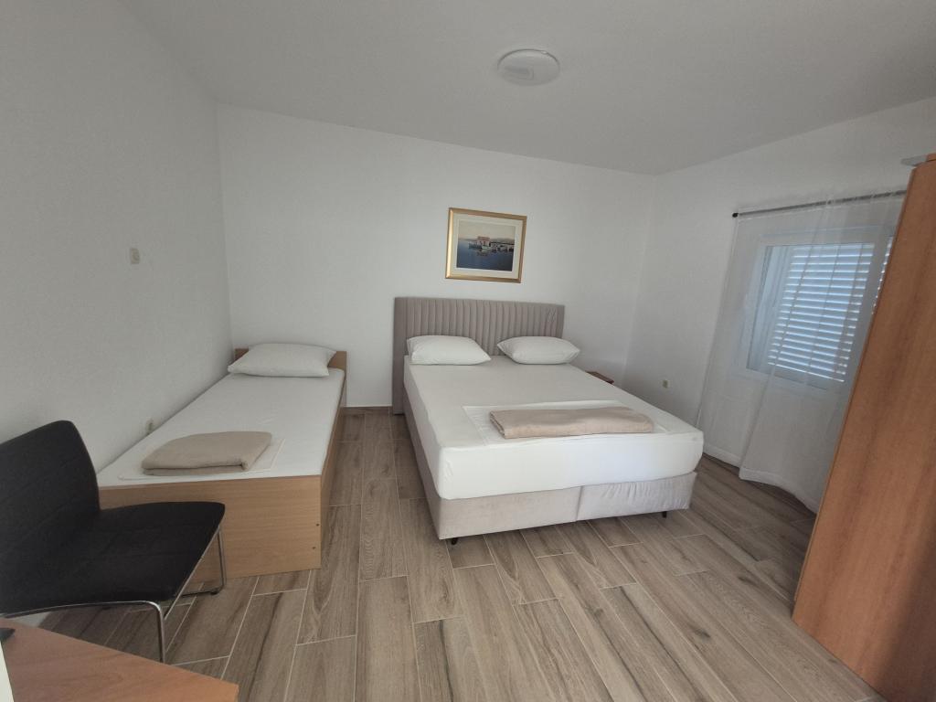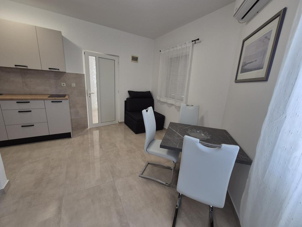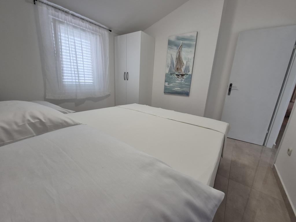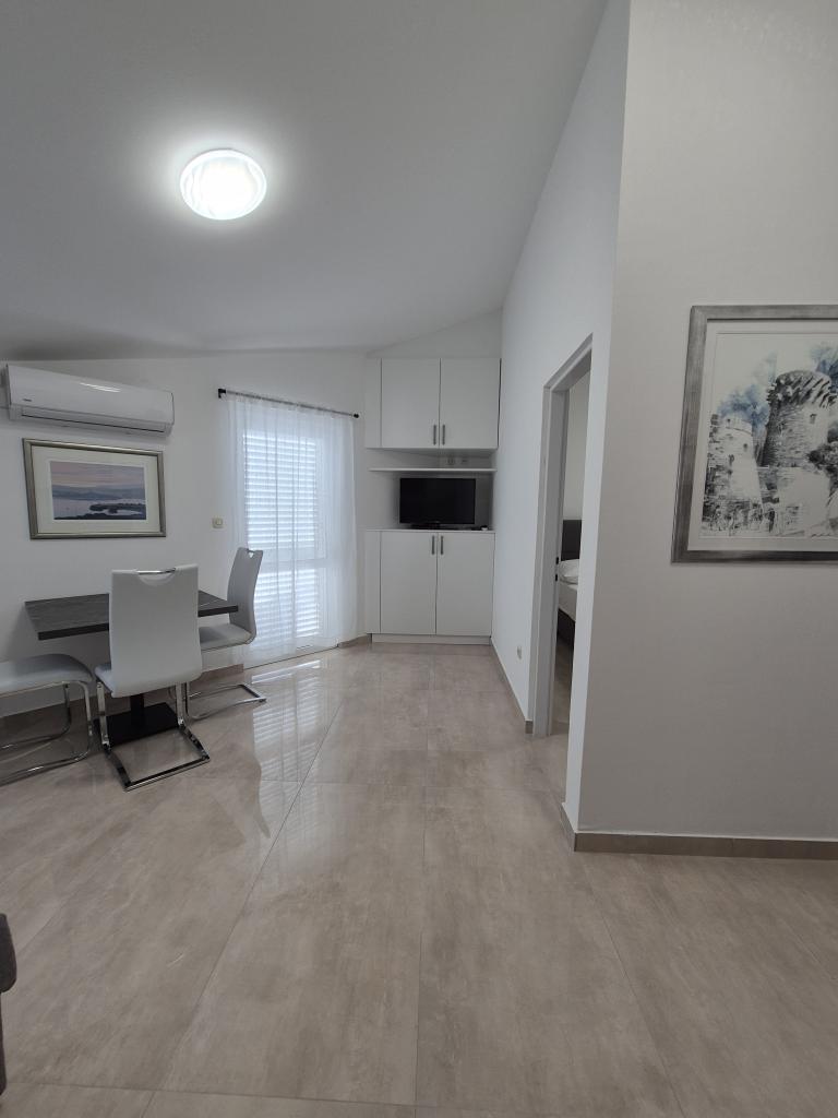 The apartments are located 90 meters from the sea, and in the immediate vicinity are all the important facilities: restaurants, shops, tennis courts and everything that will make your stay more enjoyable. If you are coming by boat from another country, the international ferry port is only 25 km away from our place. If you are coming by plane, then it is easy to reach our house, because the distance is only 20 km. If you are driving by car, our apartments are only 15 km from the highway. We offer 5 apartments and a parking space for your car. All apartments have: kitchen, living room, bathroom with shower, air conditioning, TV, balcony and parking space which is free for all our guests and no reservation is required.