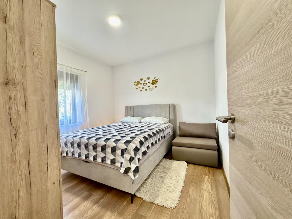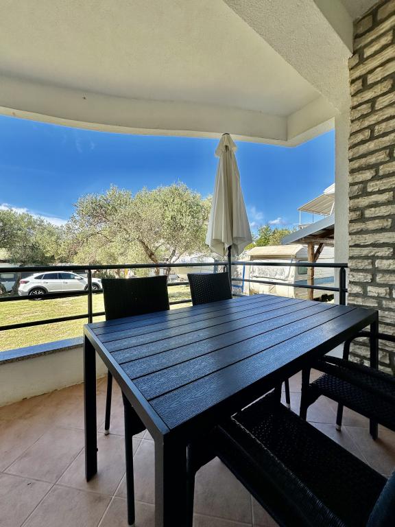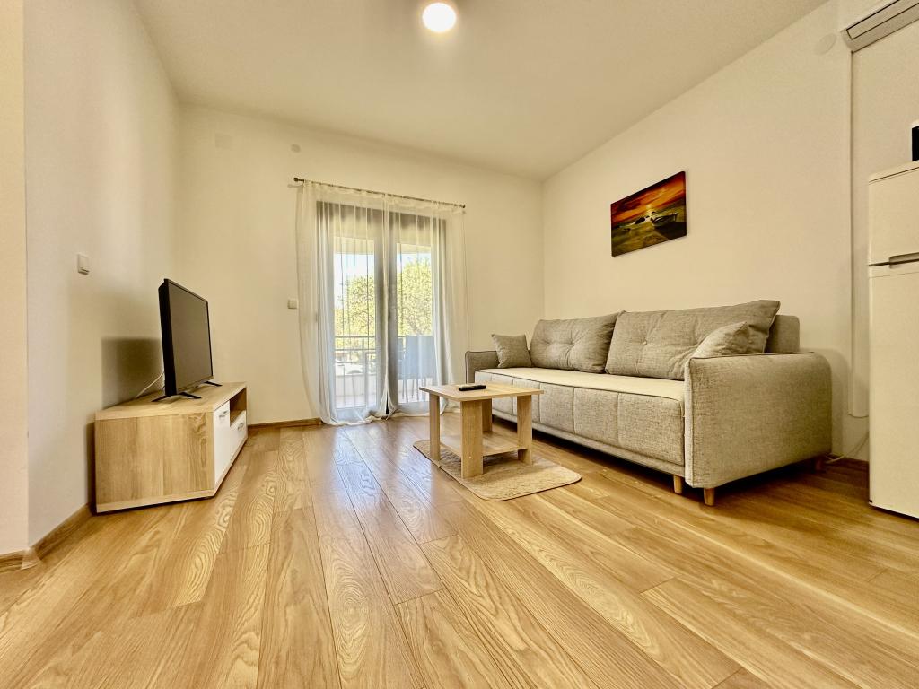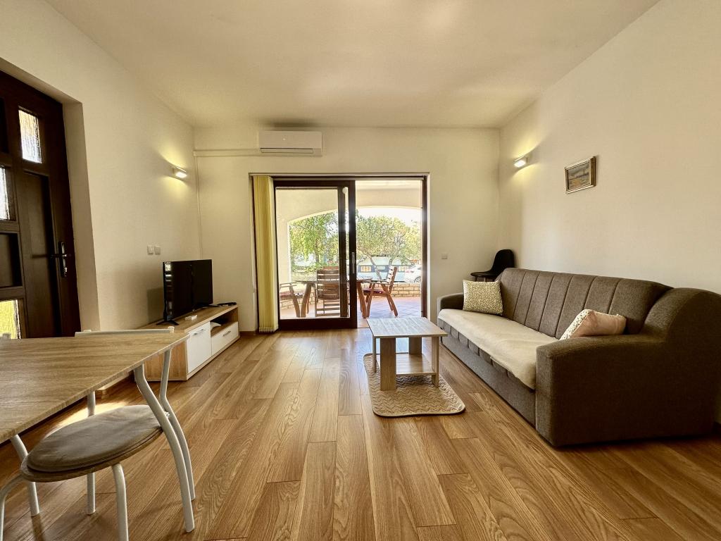 Our apartments are located in Turanj, just a 2-minute walk from the first beach. There is not much natural shade on this beach, but you can find refreshment just a few steps away. Our house has 4 one-bedroom apartments and 1 studio. The large yard offers plenty of space for parking cars and children to play. Given the 5 apartments in the house, you can expect to occasionally meet and see other guests, which is quite normal. Some apartments have a shared entrance. All apartments have a separate bedroom (except for the studio apartments), kitchen, living room, bathroom, balcony/terrace, air conditioning, WiFi, bed linen, towels. One parking space is available for each apartment within the building. Some apartments have a washing machine, while those that do not have one can use the washing machine in the building upon request. Please send inquiries exclusively via the contact form. The price list is up-to-date and correct.