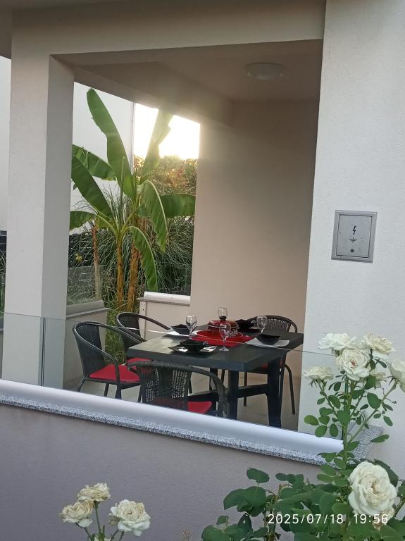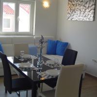 The apartments are located in a building with a total of 6 apartments. The building is located at the end of a low-traffic street in a quiet environment. The beach is 150m from the building. There is also a Plodine supermarket nearby. There is no noise from cars or other tourists in the area. The apartments consist of two bedrooms. One is larger with a double bed 2.0m x 1.6m and the other with two single beds 2.0m x 0.9m. The bathroom is spacious with a shower cabin and an exterior window. The kitchen has a 3.5m work surface with all the necessary amenities. The living room has a sofa and a dining table for 6 people. There is SAT TV and air conditioning. All windows have mosquito nets. Parking is located right next to the entrance to the building