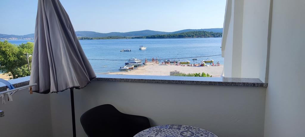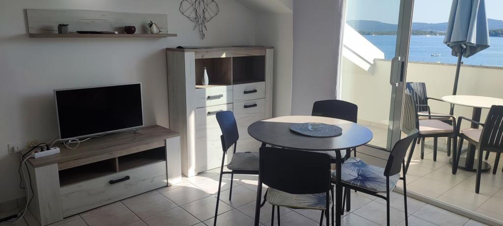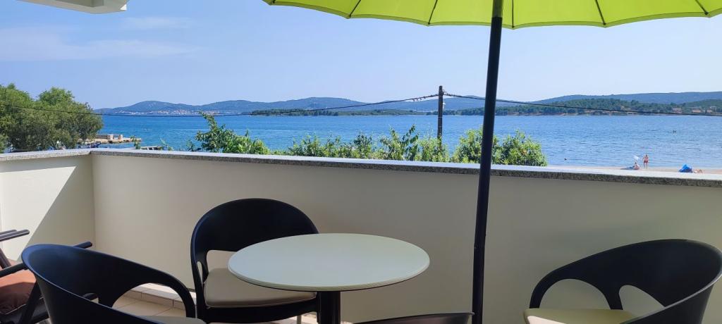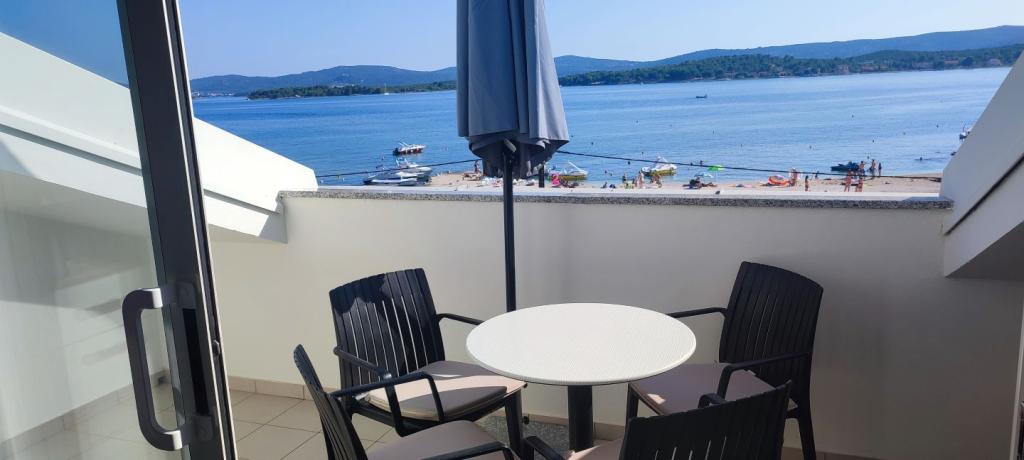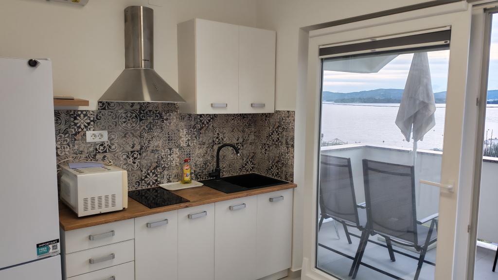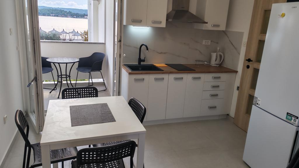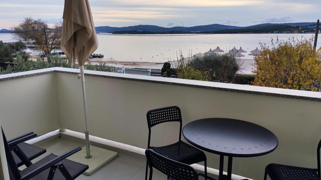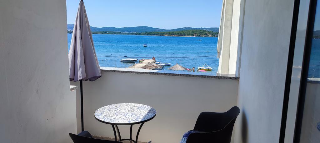Maestral apartments are located in Turanj, first row to the sea. In front of the house is the beach and in the house we have 9 apartments for rent. The apartments are spread over 3 floors and are suitable for accommodating 3 or 4 people. All have balconies and sea views. In the yard there is a free parking for our guests. They are equipped with televisions, air conditioning and wi-fi internet. Turanj is an ideal place for a peaceful family vacation. The vicinity of Biograd, Zadar and the national parks of Kornati, Krka, North Velebit and Plitvice give this location additional value. It is very easy to go on a one-day excursion and get to know Zadar-Roman monuments, Forum, Cathedral of Sv. Stošije or visit some of the national parks. It is especially important to mention the Babac and Komornik islands in front of the Tour, which are an ideal dive site.