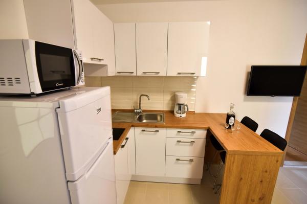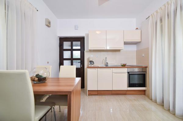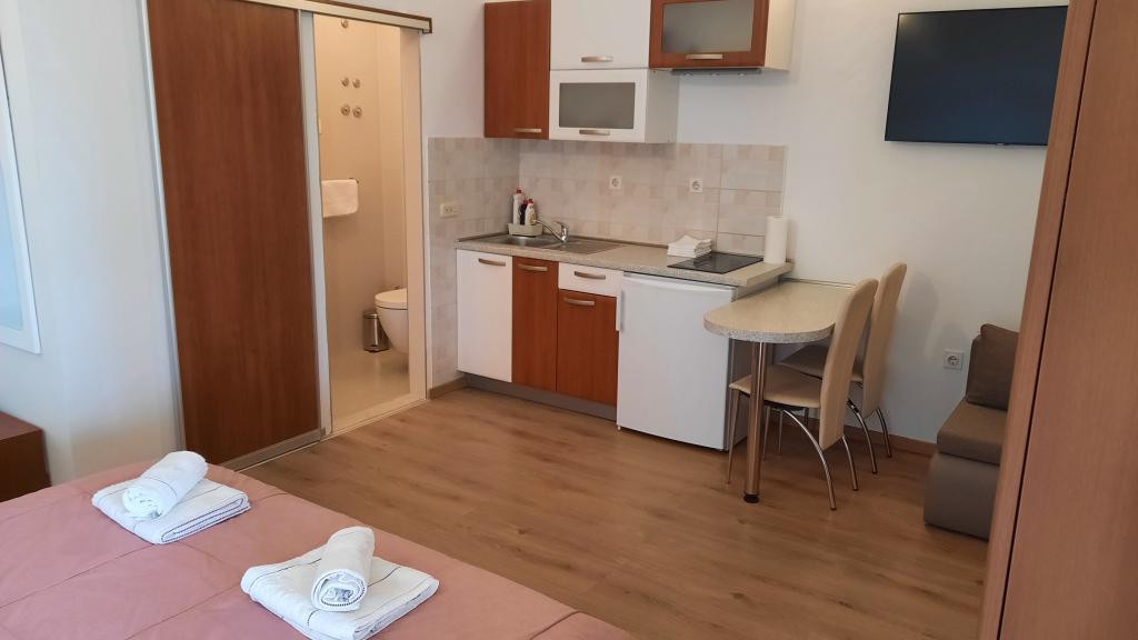 All apartments are excellently equipped. We have been coming here for years and have lived in all of them. Everything is very clean and in order. The house is right on the beach. Bars and restaurants are nearby. In the evenings it is pleasantly quiet around the house. The hosts are extremely friendly and careful to ensure that no strangers who do not belong to the house have access. The beach is also very child-friendly as the water only gets deeper slowly. We can highly recommend the Pedesic family; you can enjoy your holiday here.