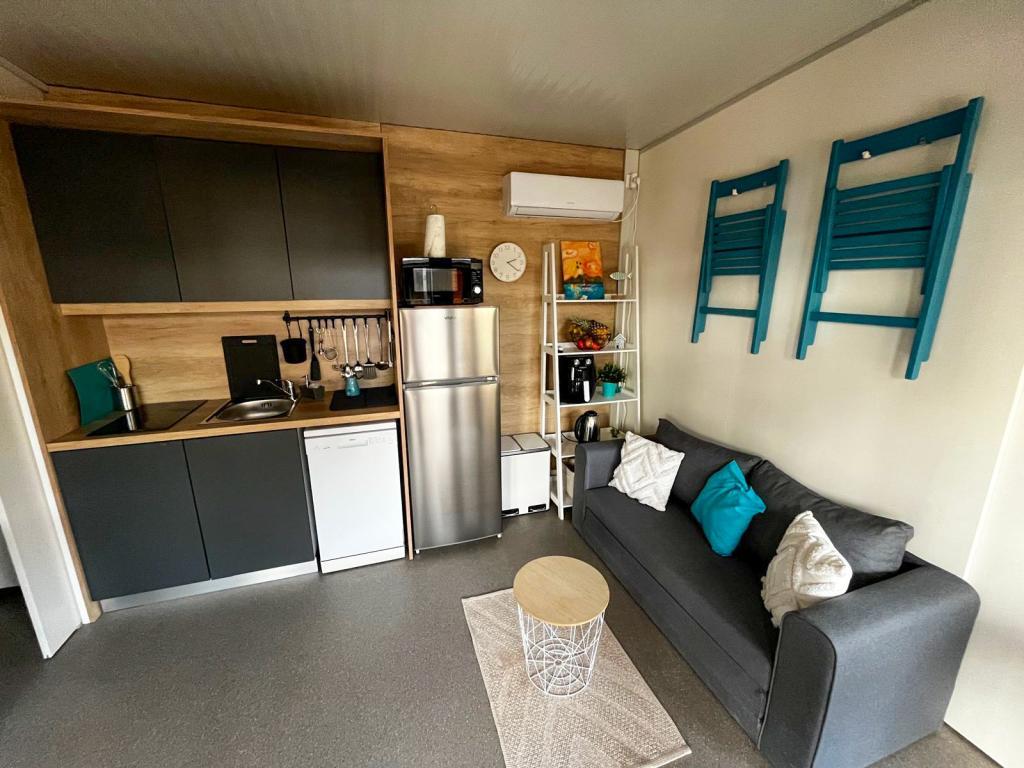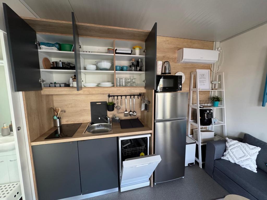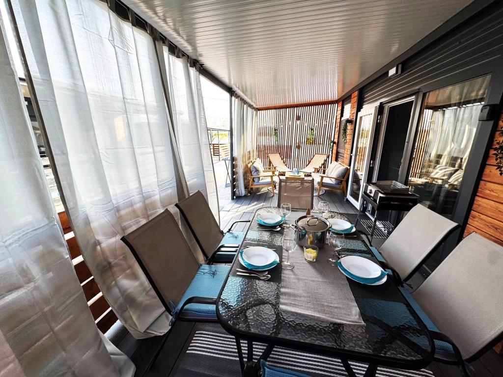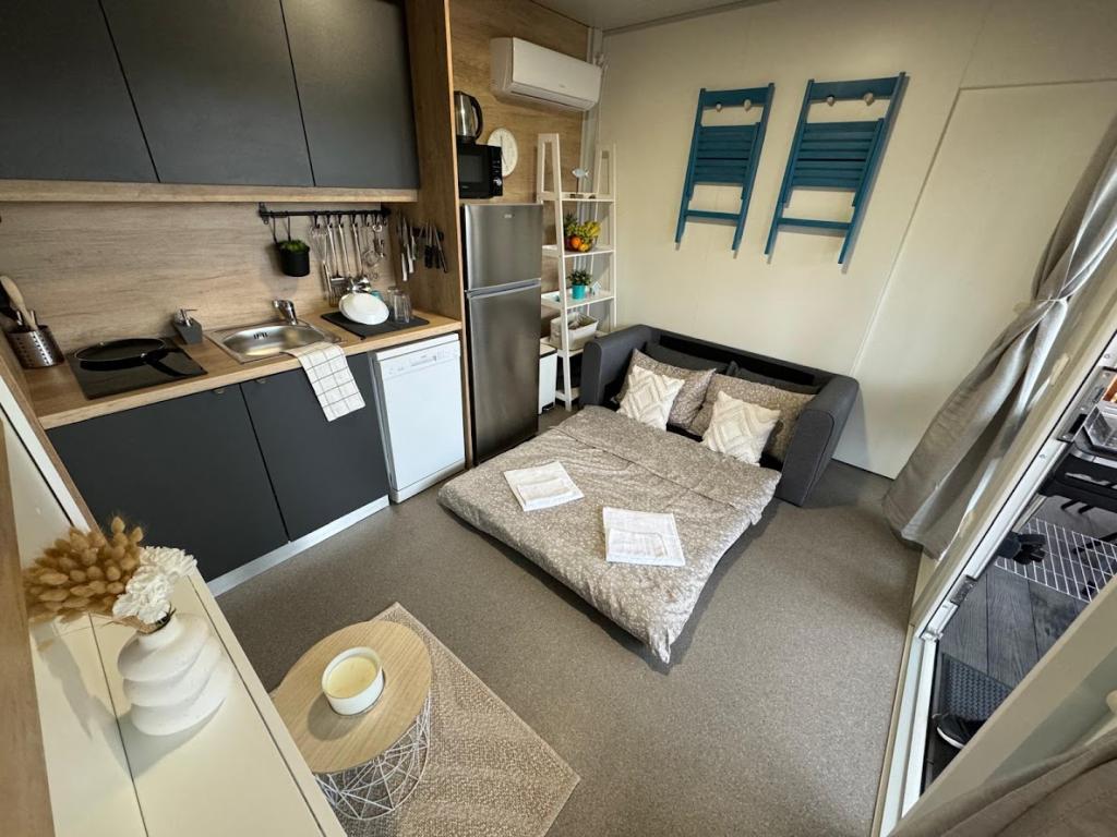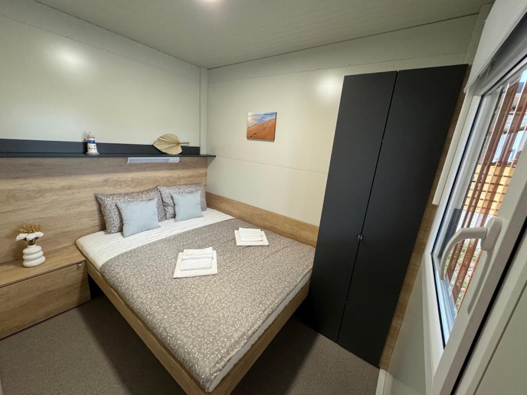 Our Marea mobile homes are designed to make your vacation carefree, comfortable and filled with moments of relaxation. Each home is carefully decorated and fully equipped for a pleasant stay for families or couples looking for privacy, peace and all the amenities of a modern home by the sea. They are located in a small, fenced family campsite just 30 meters from the beach, in the quiet town of Turanj, surrounded by greenery and a Mediterranean atmosphere. Equipment and facilities of both homes: Two bedrooms with double beds Fully equipped kitchen (induction, dishwasher, large refrigerator) Living room: sofa bed, smart TV, Wi-Fi (Starlink), air conditioning Bathroom: shower, towels, hairdryer Spacious terrace with furniture and deck chairs Secure parking ( Marea 1 - Place number 3 | Marea 2 - Place number 5 ) Welcome gift The homes are air-conditioned and available throughout the year, making them an ideal choice for a summer vacation, but also for a quiet winter getaway by the sea.