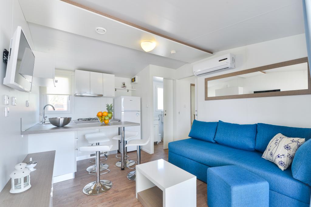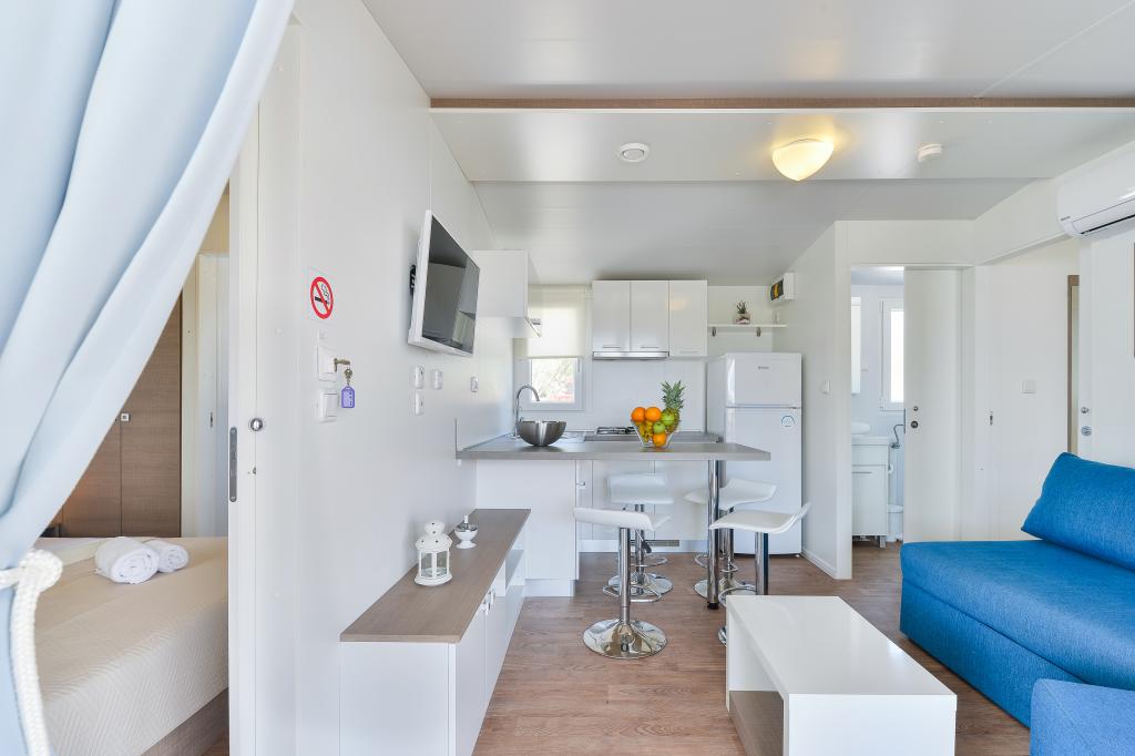 Fully and modernly equipped mobile home 40 m from the sea in Turanj. The mobile home is located in a small camp in a quiet part of Turanj by the sea. The house is fully equipped and has two bedrooms, two bathrooms, large terrace, grill, internet.