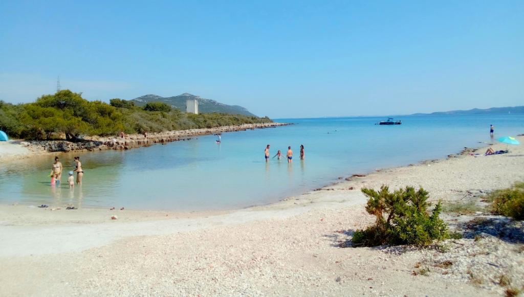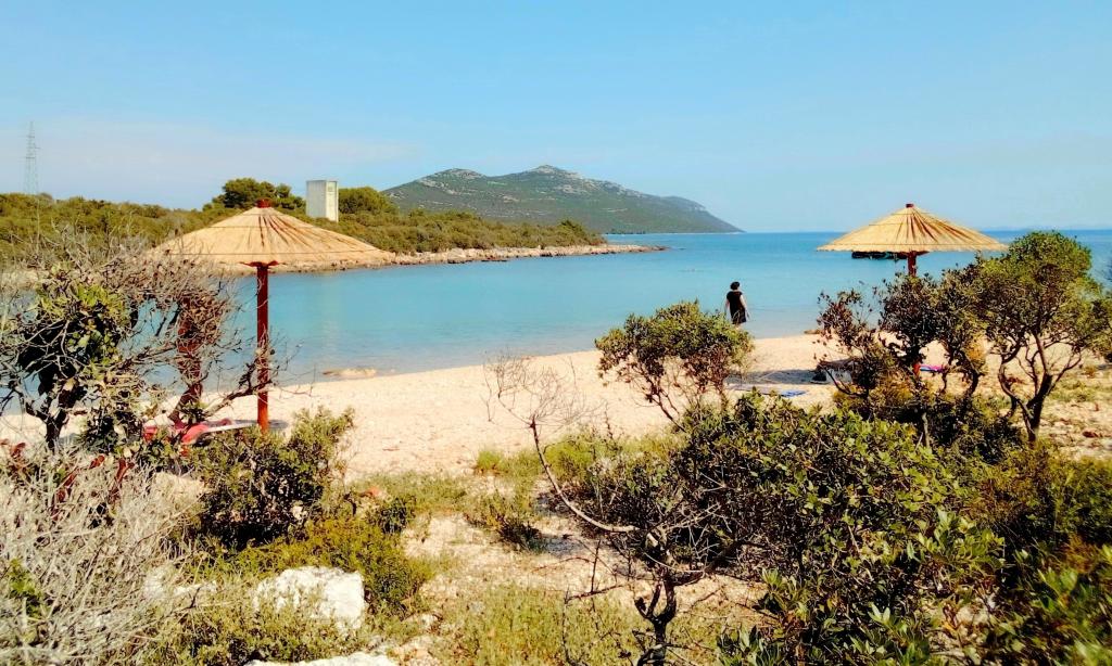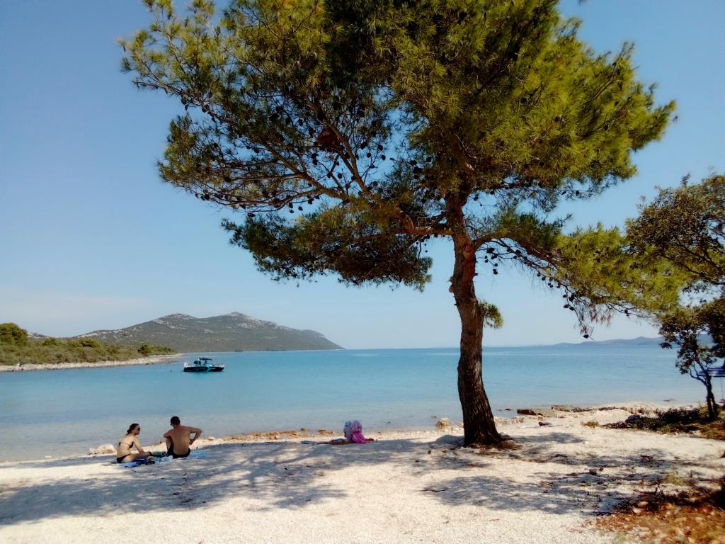 The apartment is located on the first floor of a family house in a quiet area of Ugljan, surrounded by greenery. There is an olive grove nearby. Convenient for walking, relaxing, spending time in nature. The apartment can accommodate 5 people. The beach is 8 minutes walk away. You can also get to all the beaches by car. There is a kitchen and a living/bedroom with a large comfortable bed 160 cm for 2 people; a bedroom with a bed 180 cm; both rooms lead to a balcony; a small single room-bed 90 cm for 1 person and from that room there is an exit to a smaller balcony. There is an additional portable oven and electric grill, so you can cook and bake outside on the balcony; sink, shower 90 cm, toilet. The house is surrounded by a beautiful garden where you can stay. Pets are allowed and welcome. A suitable place for nature lovers, romantics, sports types, families who like a peaceful vacation. Close to the famous city of Zadar, which is definitely worth visiting. The ferry and passenger ship run every day, almost every hour, the ride takes about 20 minutes. Possible excursions from Ugljan are to the Kornati and Dugi otok. Welcome!