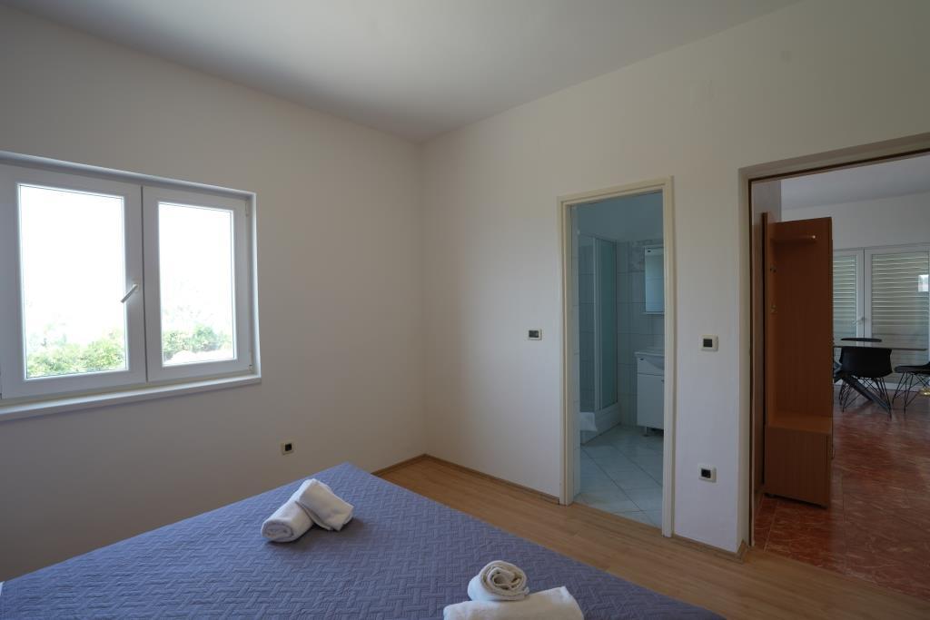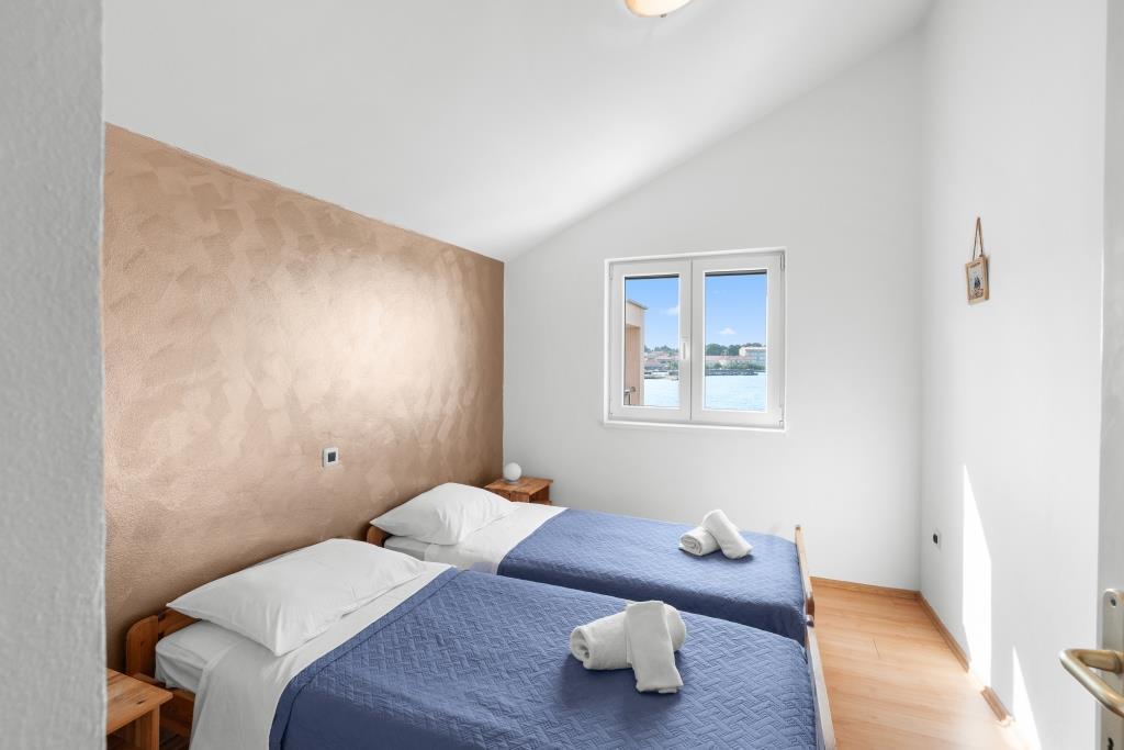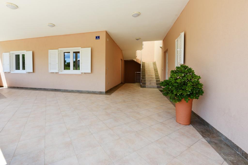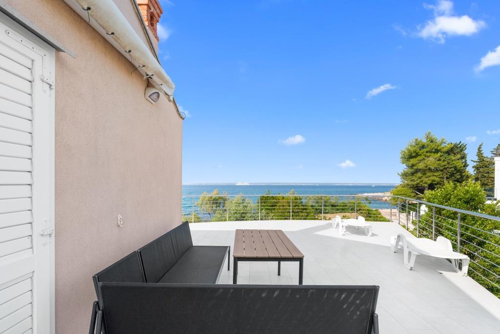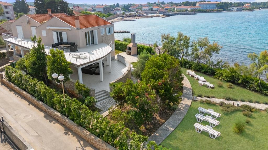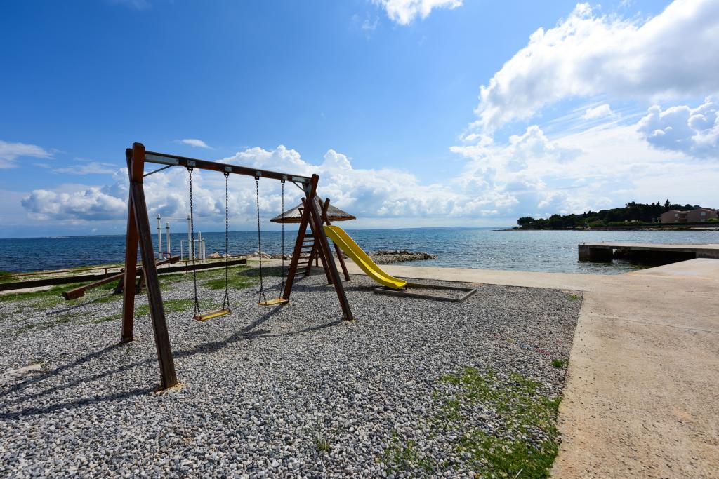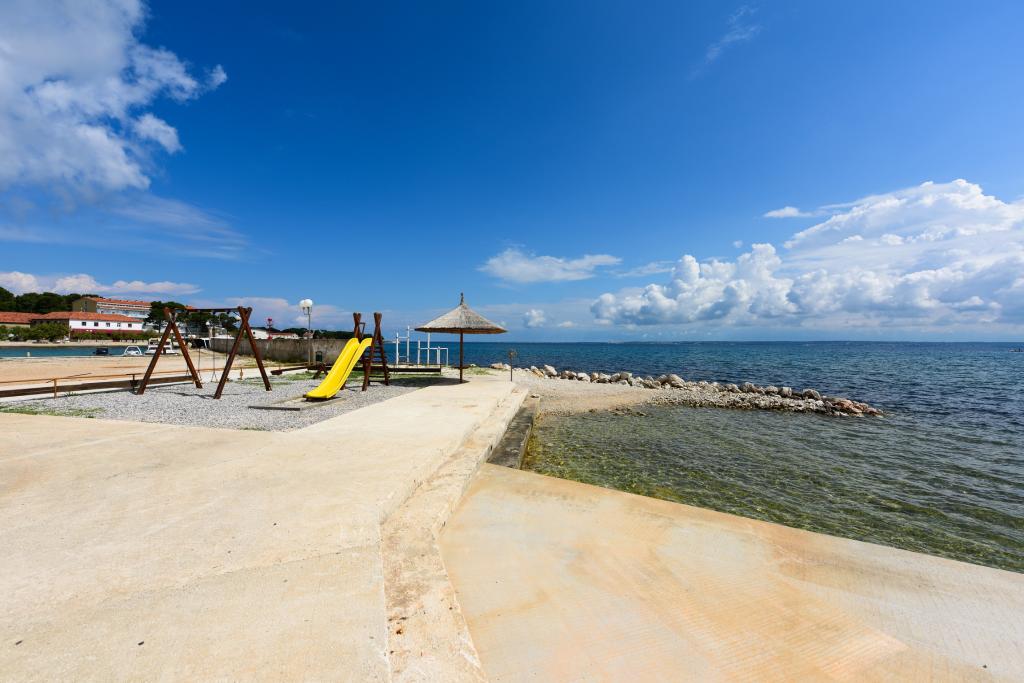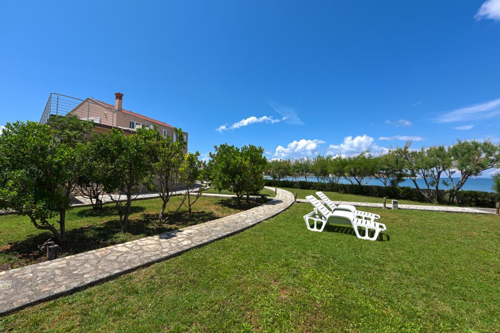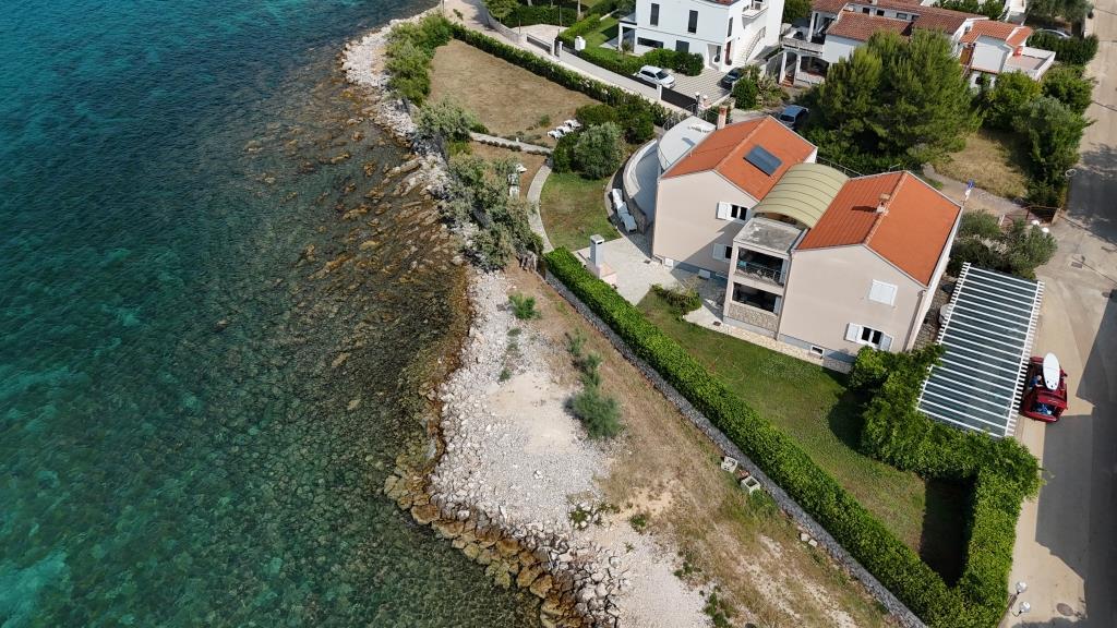 The apartments are located right by the sea in a quiet and friendly rural setting. Each apartment has a large terrace with a sea view. They are surrounded by a landscaped Mediterranean garden suitable for children to play. There are deck chairs and a shared barbecue in the garden. Each apartment has 2 bathrooms. Nearby, a 5-minute walk away, is the center where there is a market with products from local farms, as well as shops and restaurants. Emergency medical care is available 24/7. The beach directly in front of the apartment is pebbly and there are several beaches a short distance away where there is also a sandy beach. Arrival by car: the highway leads directly to the ferry port of Gaženica. After that, boarding the ferry to Preko follows. In summer, the lines are frequent, operating at least every hour. From the ferry port of Preko, you can reach the town of Ugljan, which is 10 km away, via the island highway. Arrival by plane: From Zadar airport, by bus or taxi, in 15 minutes. you can reach the ferry port of Gaženica directly, where you can board the ferry to Preko.