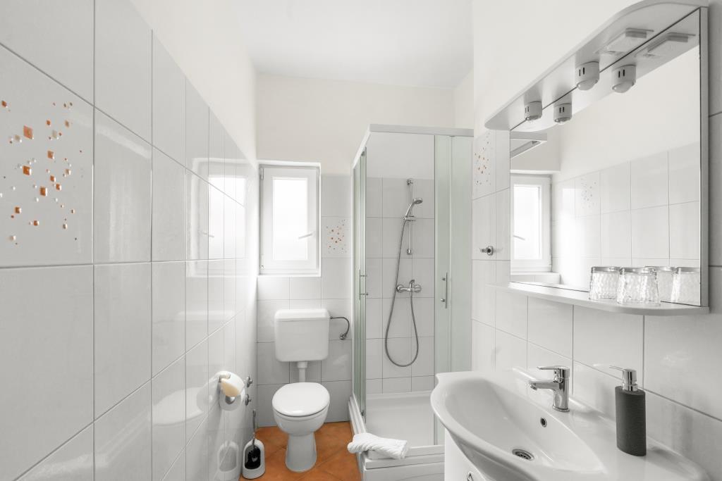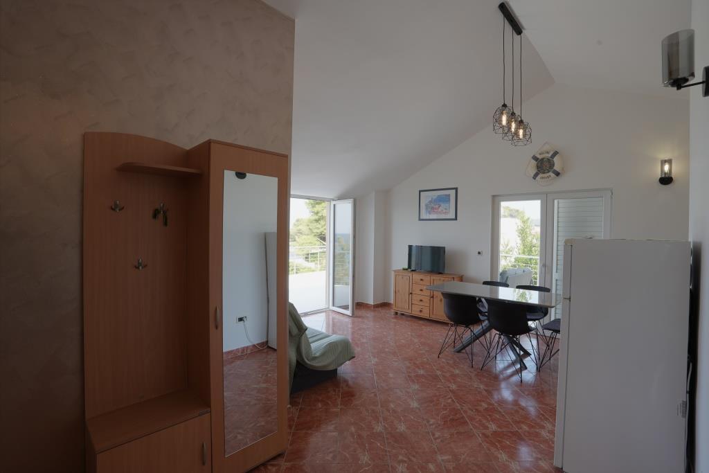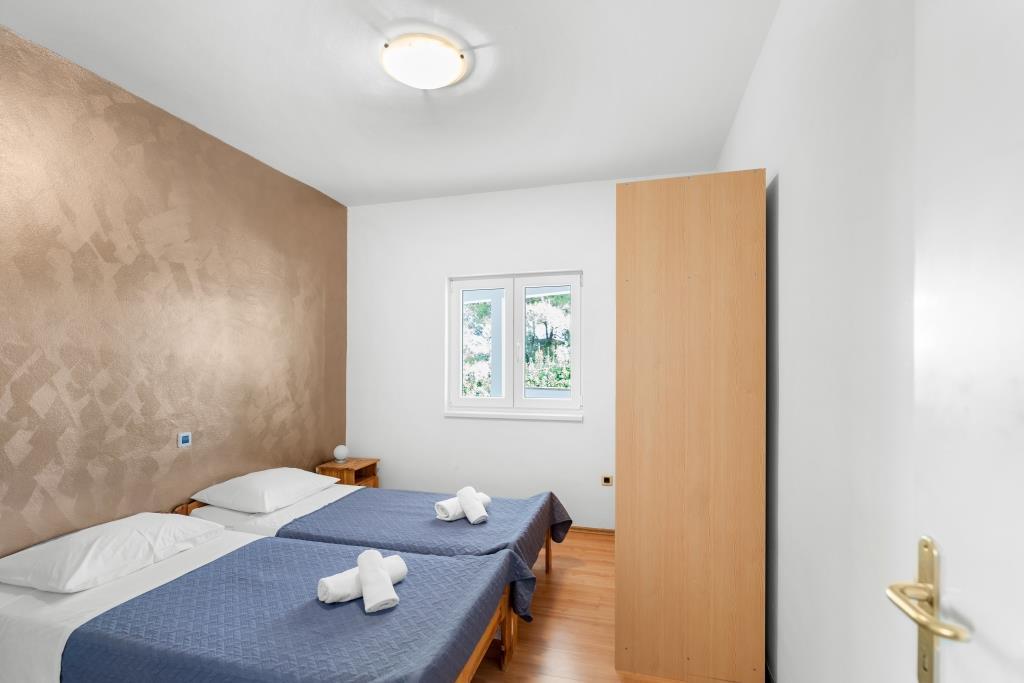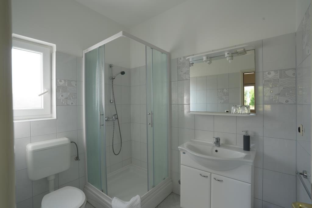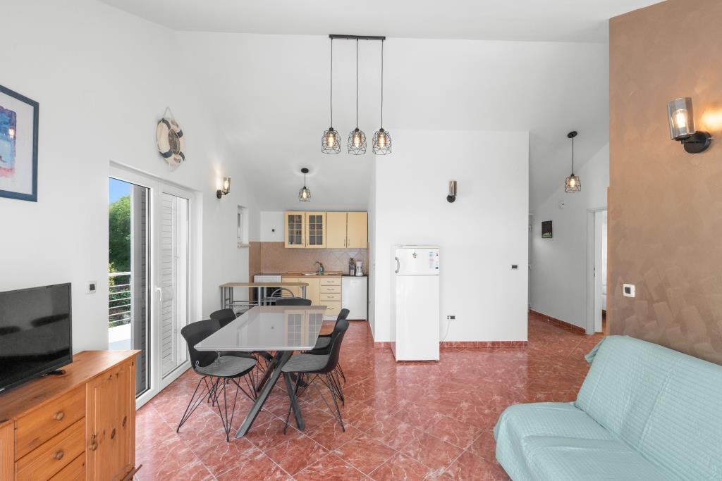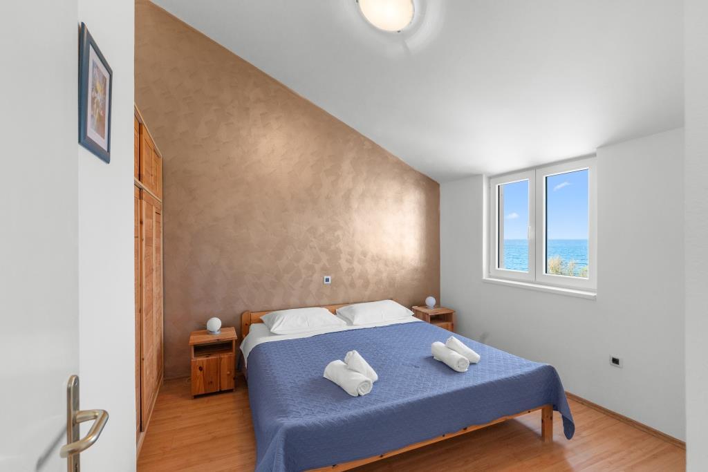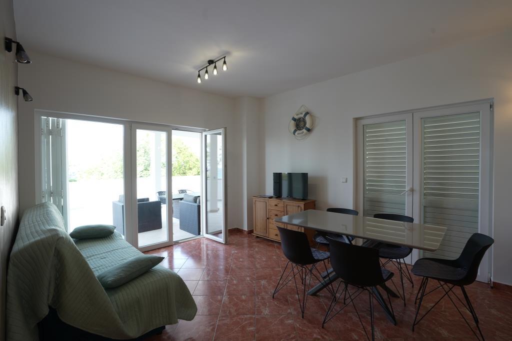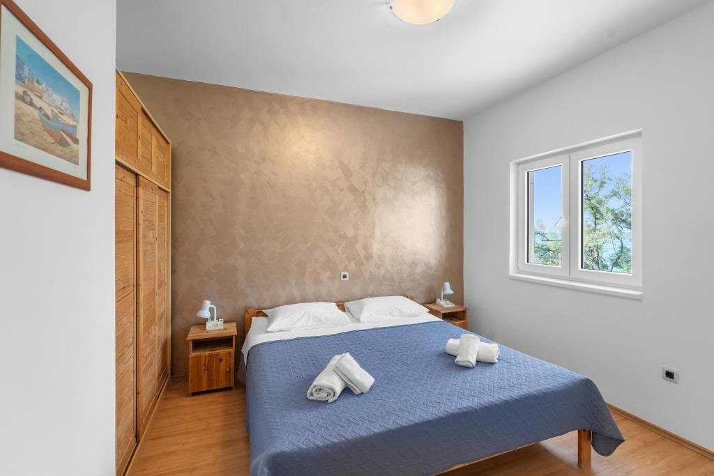 The apartments are located right by the sea in a quiet and friendly rural setting. Each apartment has a large terrace with a sea view. They are surrounded by a landscaped Mediterranean garden suitable for children to play. There are deck chairs and a shared barbecue in the garden. Each apartment has 2 bathrooms. Nearby, a 5-minute walk away, is the center where there is a market with products from local farms, as well as shops and restaurants. Emergency medical care is available 24/7. The beach directly in front of the apartment is pebbly and there are several beaches a short distance away where there is also a sandy beach. Arrival by car: the highway leads directly to the ferry port of Gaženica. After that, boarding the ferry to Preko follows. In summer, the lines are frequent, operating at least every hour. From the ferry port of Preko, you can reach the town of Ugljan, which is 10 km away, via the island highway. Arrival by plane: From Zadar airport, by bus or taxi, in 15 minutes. you can reach the ferry port of Gaženica directly, where you can board the ferry to Preko.