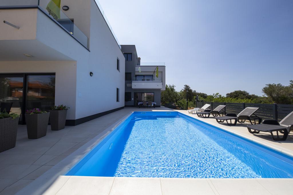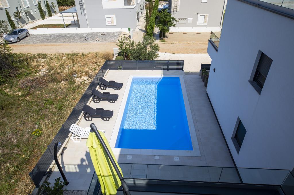 New, fully and modernly equipped apartments with a beautiful pool near the beaches and town center. Accommodation is suitable for families with children. The island is ideal for walking and cycling.