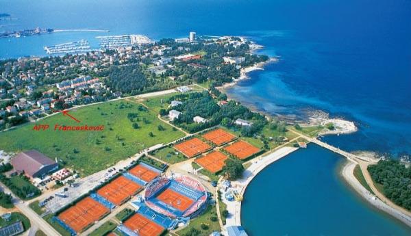 Umag, attractive apartments for 2-6 people, 200 m from the beach at top location Punta.. Located only 220 m from tennis center Stella Maris ATP Croata open, with free private parking (as the house is near the beach, it is a parking zone). Two private park with pine trees and greenery of approximately 1000 m2 with the use of a grill. Nearby there are excellent restaurants, wellness center, casino, and many other tourist services.
