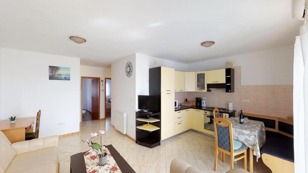The apartment is newly renovated with two bedrooms, large living room, bathroom and two large terraces. The apartment is located on the ground floor and overlooks the sea and the forest, located 4km from the town of Umag in the village of Vilanija. Come and relax in a peaceful environment, away from city noise.
