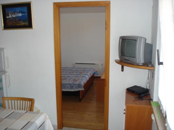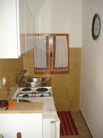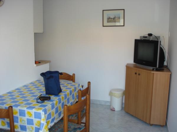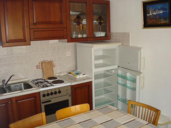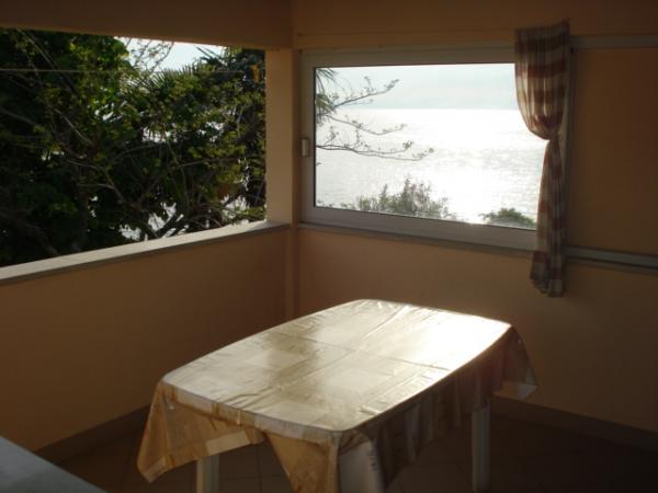 The apartment for 5 people has two bedrooms with double beds plus one extra bed for 1 person, fully equipped kitchen (stove combined gas /electricity, oven, fridge with freezer, utensils), bathroom with shower and washing machine, living room and satellite TV and terrace with sea view. The apartment is equipped with bed linen and towels.