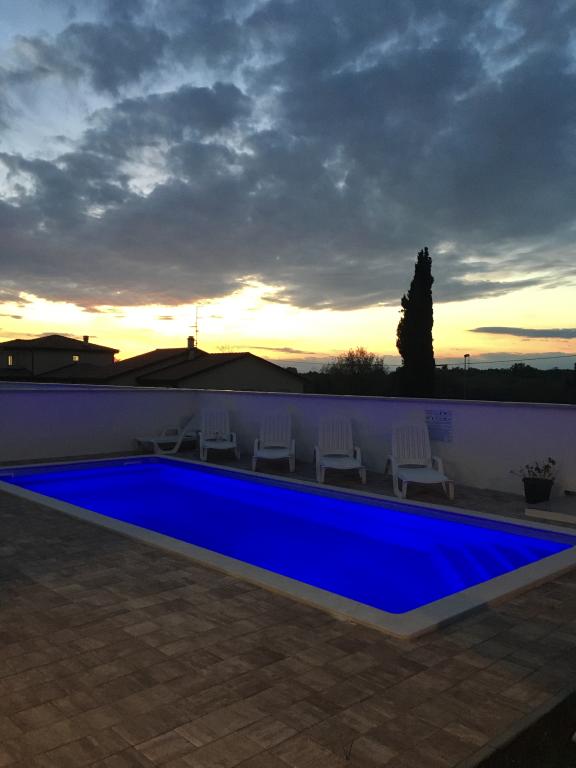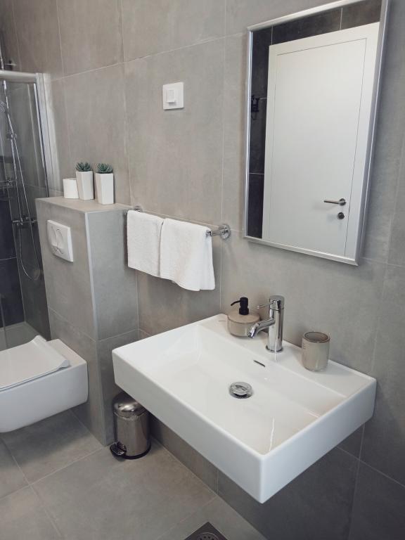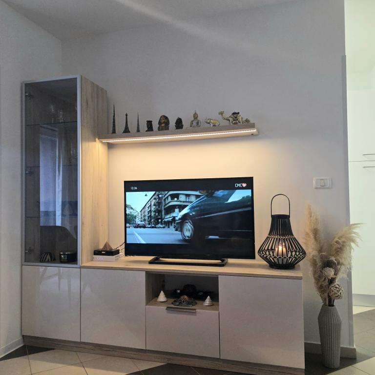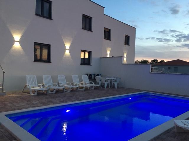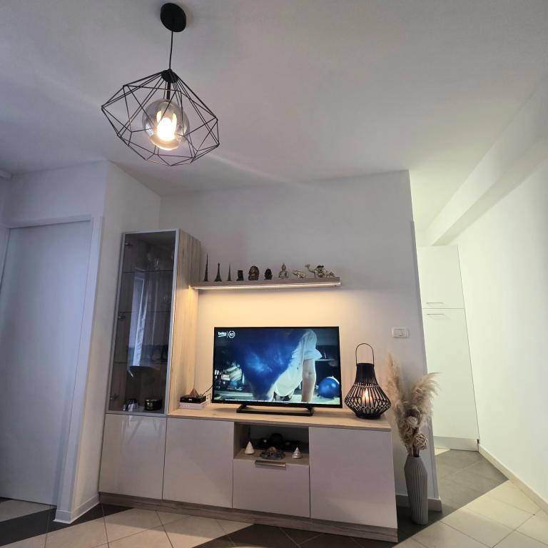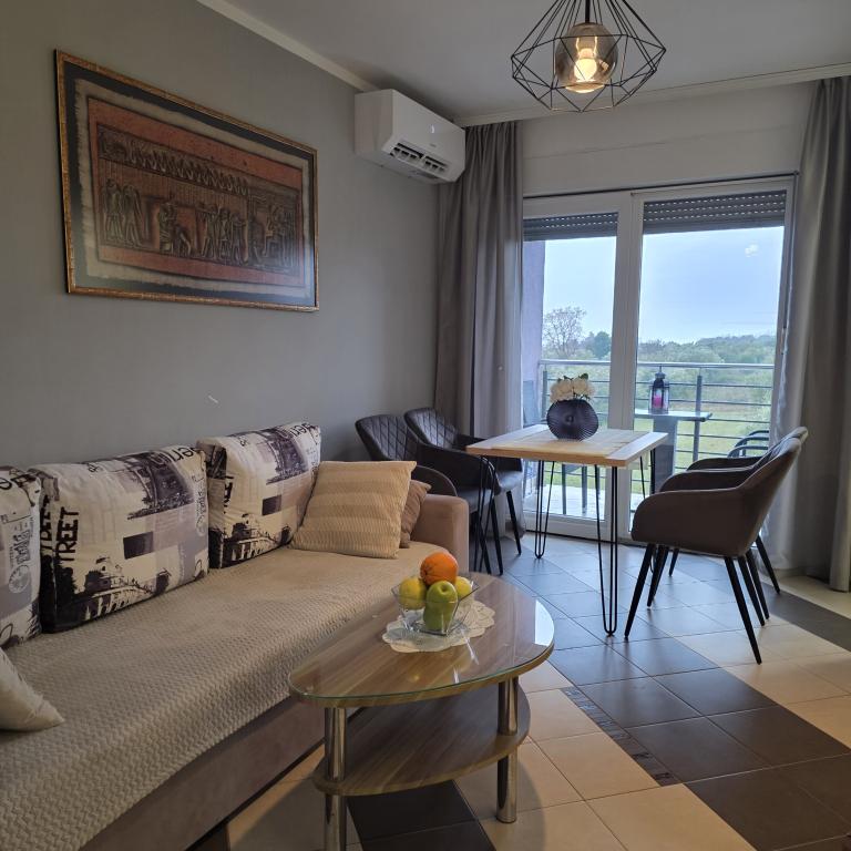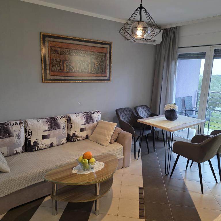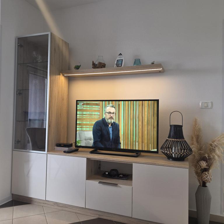 Apartments Mirella 4 are located in the newly built residence Lavender with sea views and a beautiful view of the sunset. To the sea and the beautiful sandy beach is only 150m. Shops, bakery and restaurants at 200m. To the center of Umag 3km. Along the sea there is a promenade all the way to the center of Umag and the possibility is transport by tourist train. The apartments are air conditioned and fully equipped with all appliances. Bathroom with massage shower, washing machine, hair dryer, iron. Kitchen with dishwasher, microwave, coffee maker, kettle large fridge with freezer and everything else to make the guest feel at home. Free internet and secured parking are available. The price includes the use of the pool, deck chairs, shower, two-seater, table and chairs in the covered part of the terrace by the pool. Thank you for choosing Apartments Mirella, I hope that in return we will satisfy your wishes during your stay in our apartments. Our goal is your satisfaction and recommendation. Dear guests, welcome to Apartments Mirella!