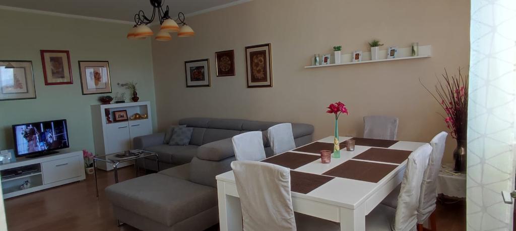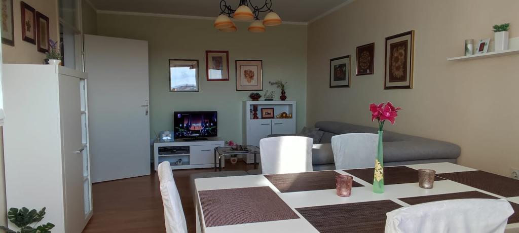 Welcome to the apartment "Florem", which is located near the ValMod center, at R. Boškovića Street 20, in a building with an elevator. Our air-conditioned 60 m2 apartment consists of a newly renovated kitchen equipped with all the necessary appliances and dishes, a pantry, a spacious living room, a bathroom with a bathtub and a washing machine, and a bedroom with a double bed and a bunk bed. The corner sofa in the living room can also be extended into a bed. In front of the building there is free parking and a children's playground surrounded by greenery. In the immediate vicinity there are several shops, a bank, a gas station, a cafe, a church... You can walk to the city center or the promenade on the Drava, where you can also enjoy the swimming pools in the summer months. After going out, relax with a TV, free WiFi and some books, toys and board games or with a view of the sunset. The balcony offers a view of the roofs of the old city center, but also the greenery of the Drava Forest, Ivanščica and Ravna Gora. We wish you a pleasant stay.