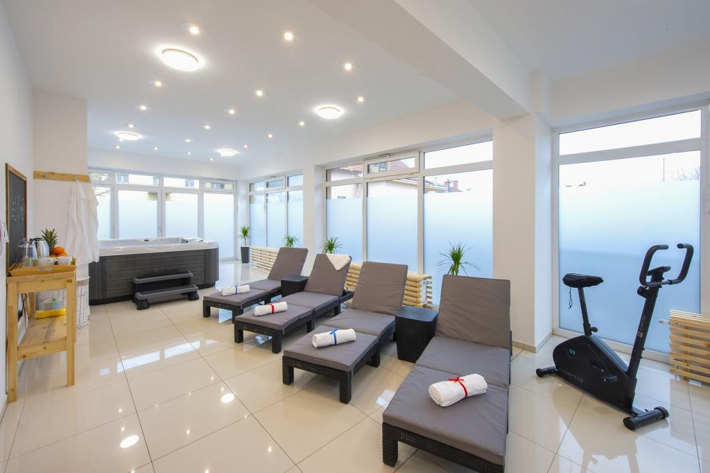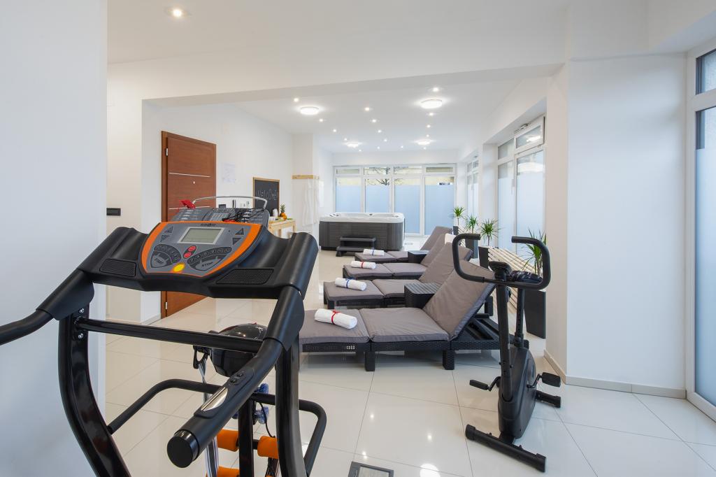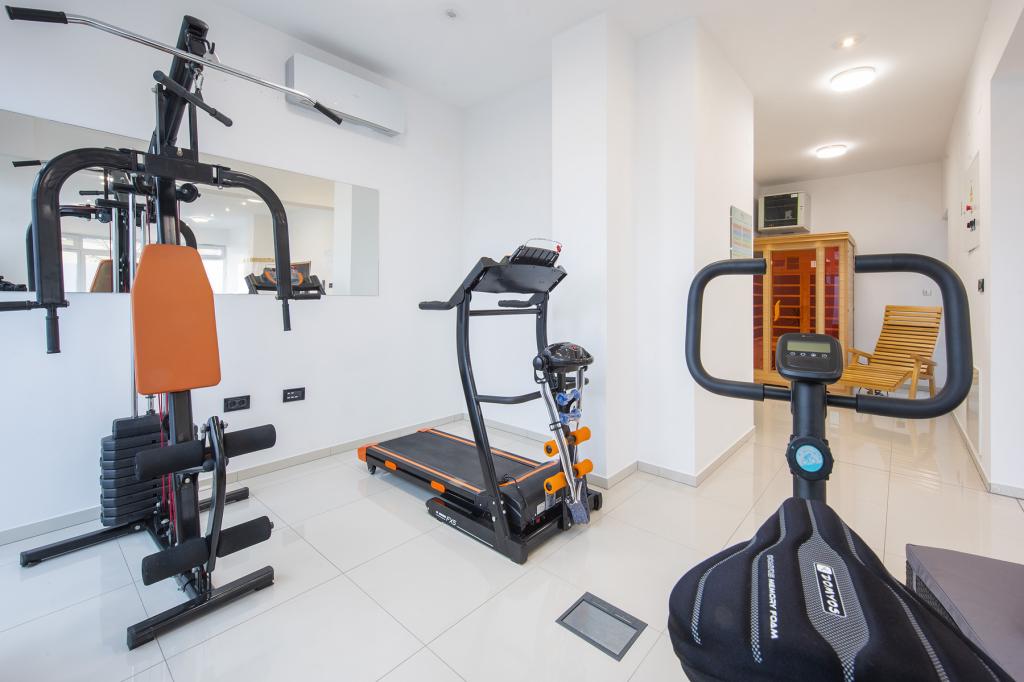 The price of the apartment includes a wellness area with a hydromassage tub, sauna, deckchairs and fitness equipment. Also, other facilities such as a punching bag, darts and table football are included.