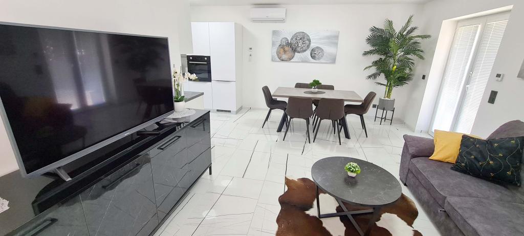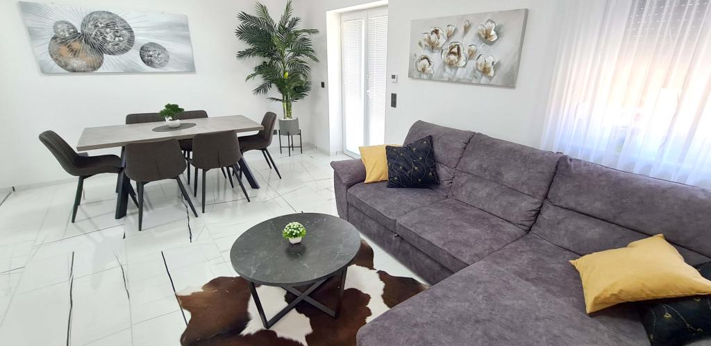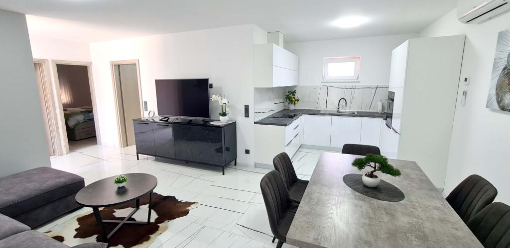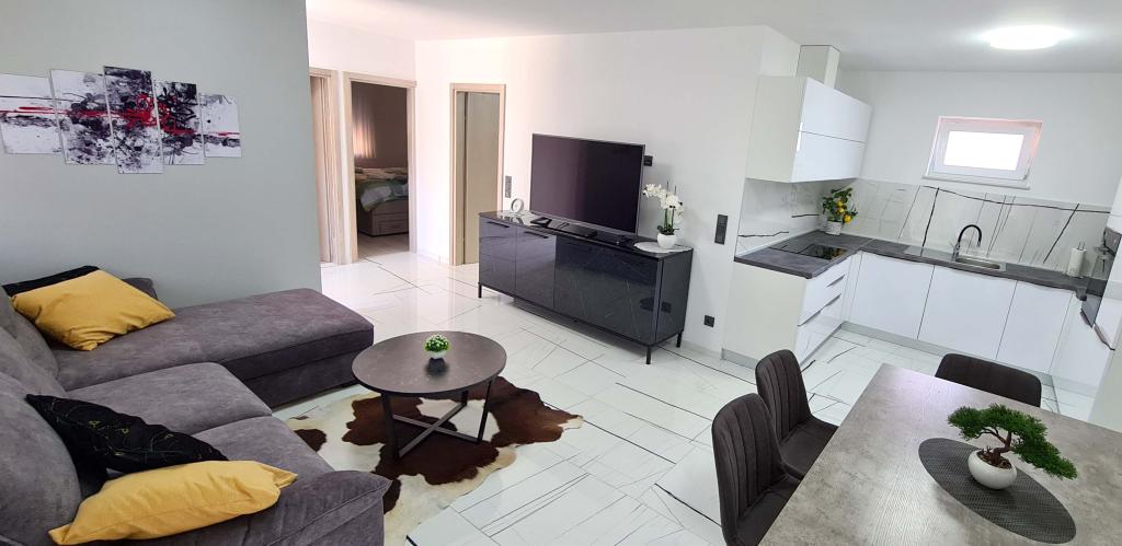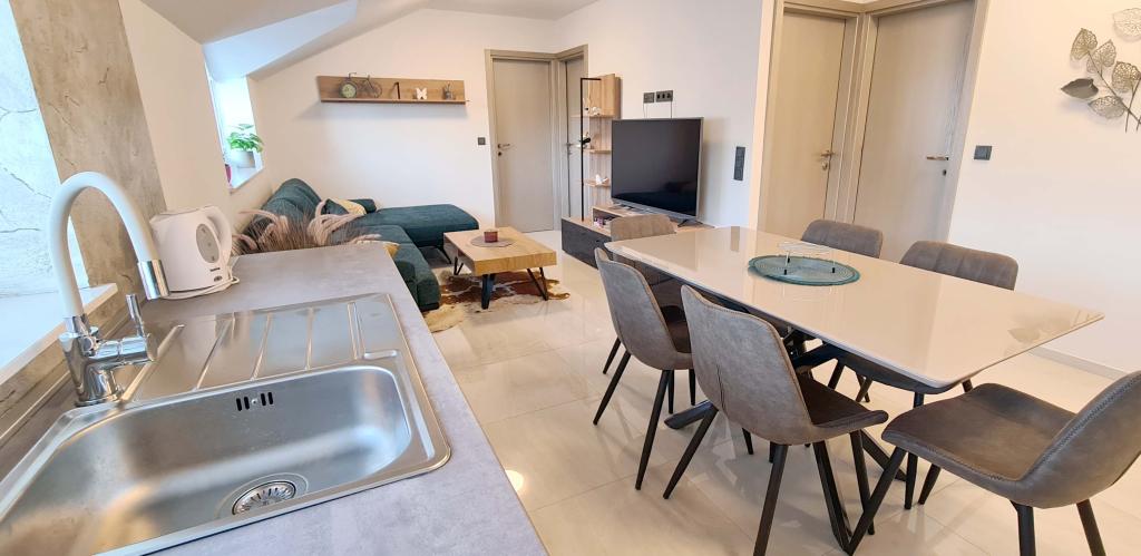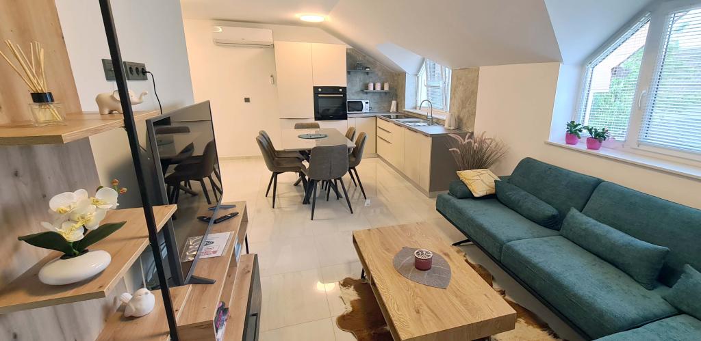 Apartmani Magić. Relaxing in the countryside in the small village of Imbriovec, not far from the baroque town of Varaždin, in an intimate natural environment, the modernly decorated property of the Magić family is located. Apartments Magić are the right place for a relaxing family vacation, an escape from the daily rush with a touch of untouched nature, but also for lovers of active vacations. The modernly decorated and richly equipped building consists of 2 apartments and one studio apartment, with accommodation capacity for a total of 11 people. The large yard offers you a simple, intimate and relaxing haven. This private oasis, rich in greenery and decorated with flowers, has a spacious covered terrace with an open grill. For the youngest, there is a children's corner with swings and a slide where children can play and have fun without hindrance.
