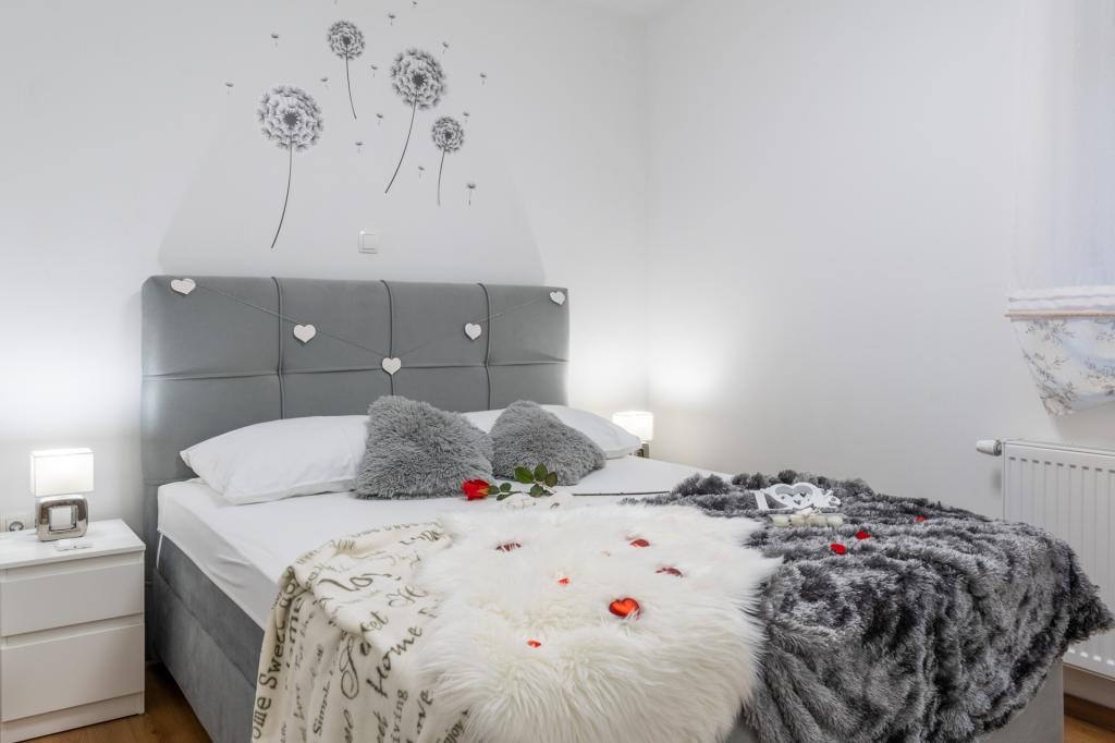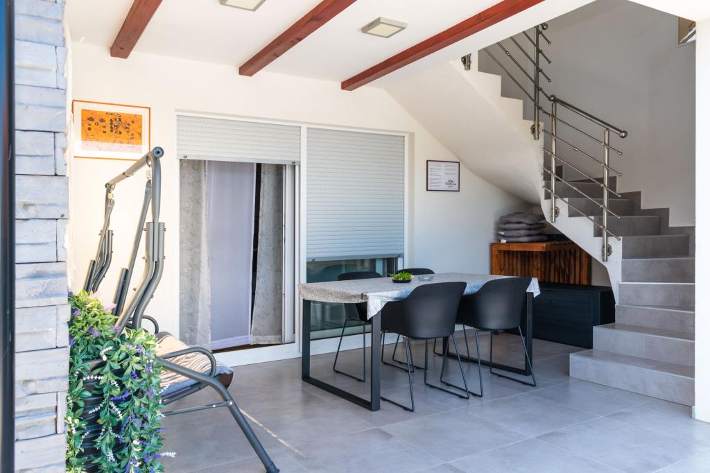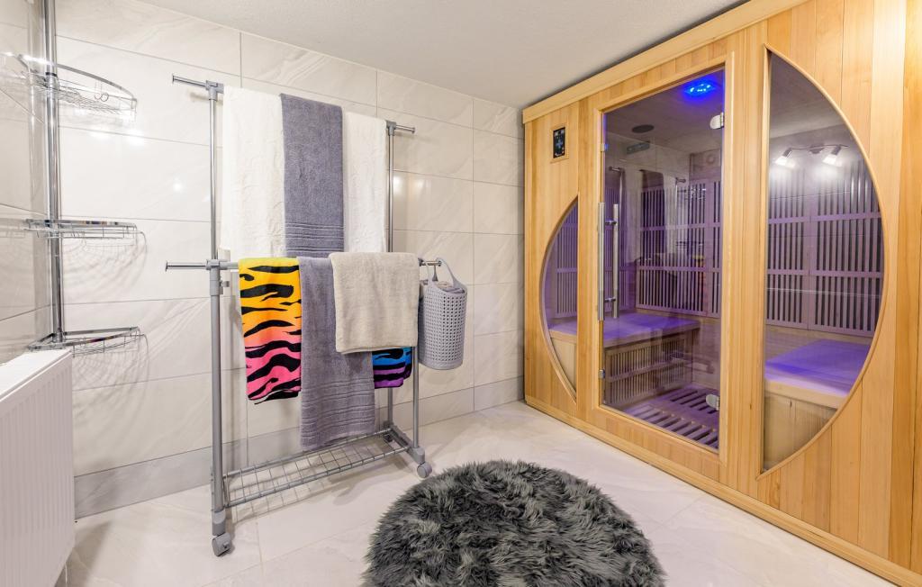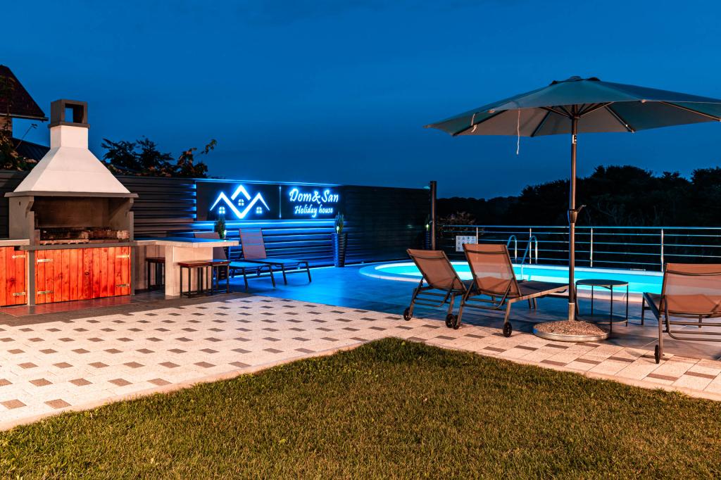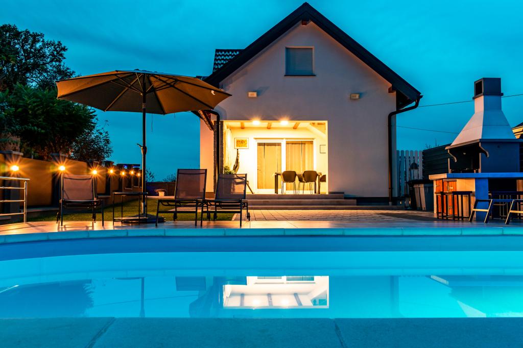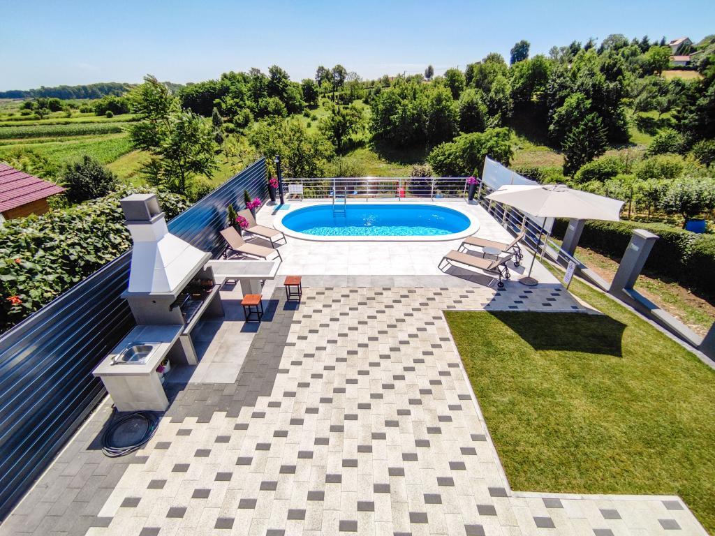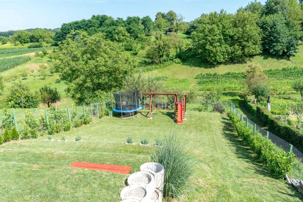 The holiday house Dom&San with a swimming pool and a location very close to the baroque city of Varaždin and numerous activities is ideal for an escape from reality. Relax in the indoor sauna or jacuzzi and enjoy your vacation. Thanks to the swimming pool, you are comfortably cooled here even during the hottest days of the year. The pool offers welcome refreshment, and the covered terrace invites you to relax in the shade with the smell of barbecue and a refreshing drink. Your children will be delighted with the trampoline, slide, climbing frame, and spacious yard, so they will certainly enjoy playing in nature in the fresh air. The house consists of two bedrooms, a bathroom, air-conditioned spacious living room with kitchen and dining room and a relaxation room with a jacuzzi and sauna. The bright and modern rooms are extremely well equipped, according to the latest standards in the world of interiors. The interior creates a relaxed and pleasant atmosphere to make your vacation as good as possible.