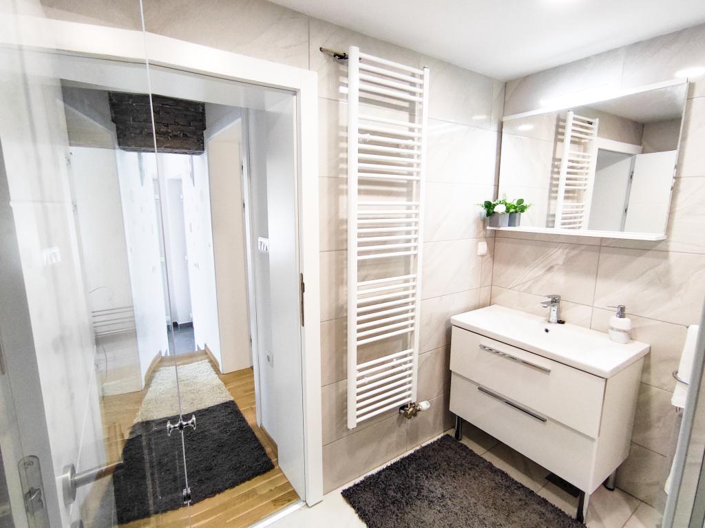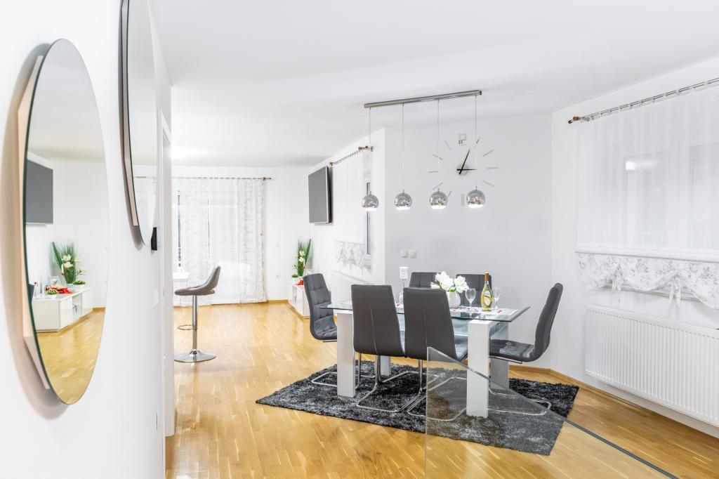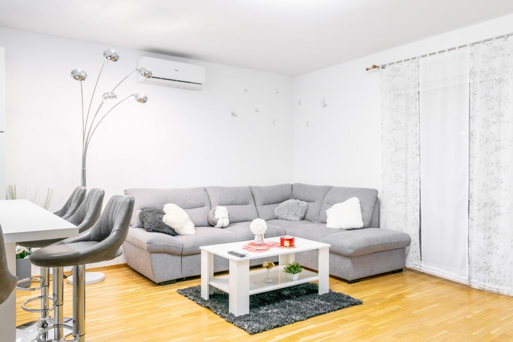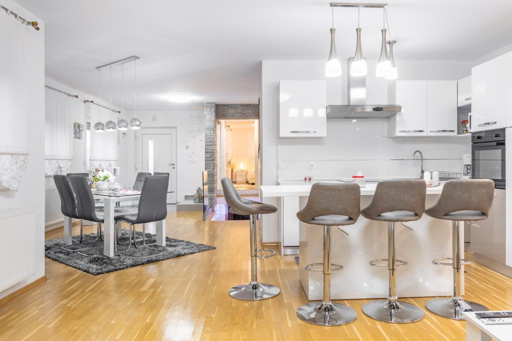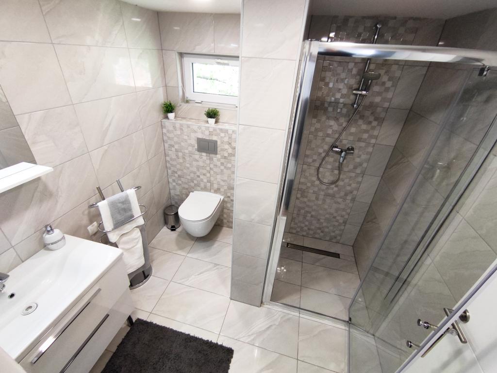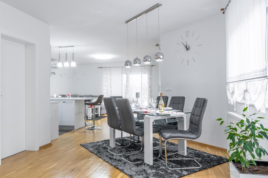 The holiday house Dom&San with a swimming pool and a location very close to the baroque city of Varaždin and numerous activities is ideal for an escape from reality. Relax in the indoor sauna or jacuzzi and enjoy your vacation. Thanks to the swimming pool, you are comfortably cooled here even during the hottest days of the year. The pool offers welcome refreshment, and the covered terrace invites you to relax in the shade with the smell of barbecue and a refreshing drink. Your children will be delighted with the trampoline, slide, climbing frame, and spacious yard, so they will certainly enjoy playing in nature in the fresh air. The house consists of two bedrooms, a bathroom, air-conditioned spacious living room with kitchen and dining room and a relaxation room with a jacuzzi and sauna. The bright and modern rooms are extremely well equipped, according to the latest standards in the world of interiors. The interior creates a relaxed and pleasant atmosphere to make your vacation as good as possible.