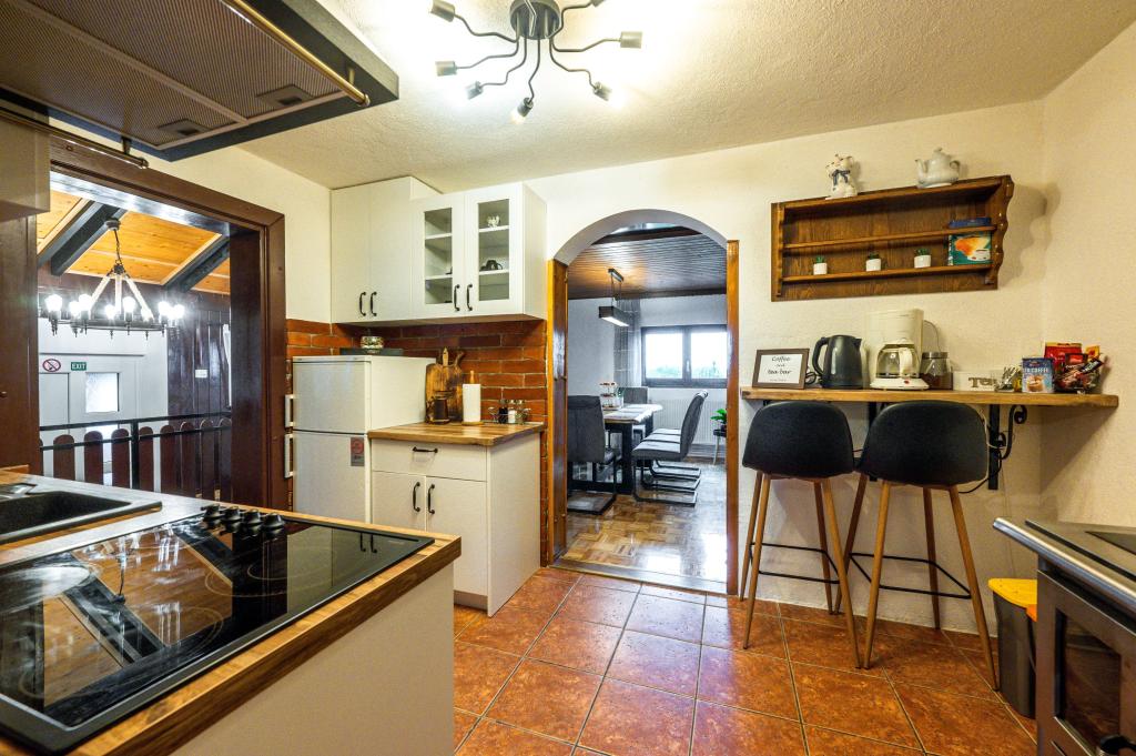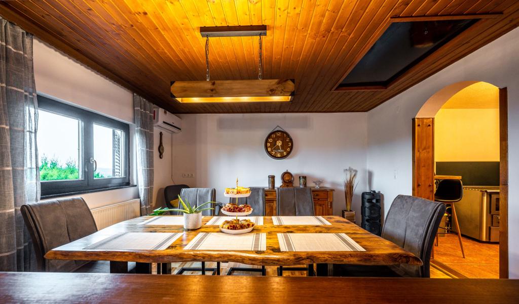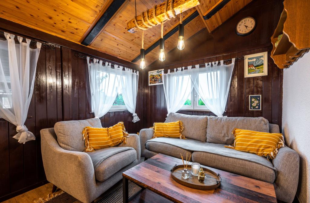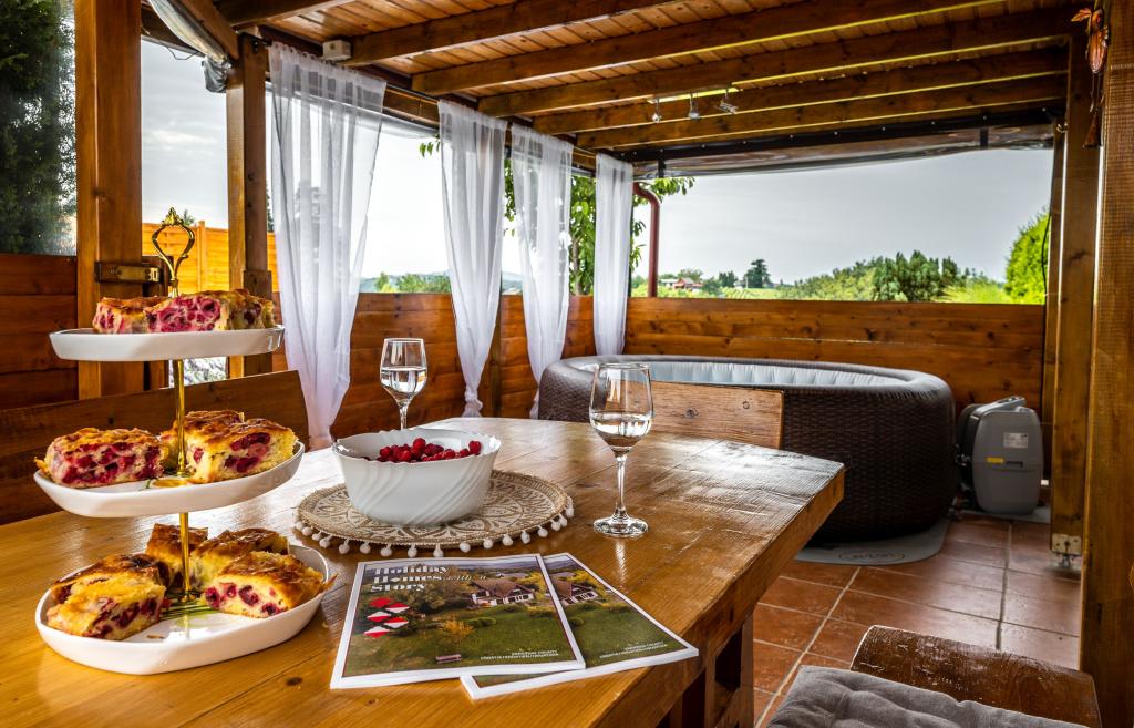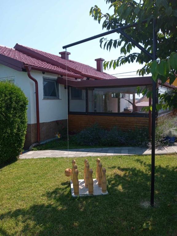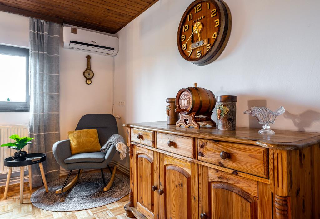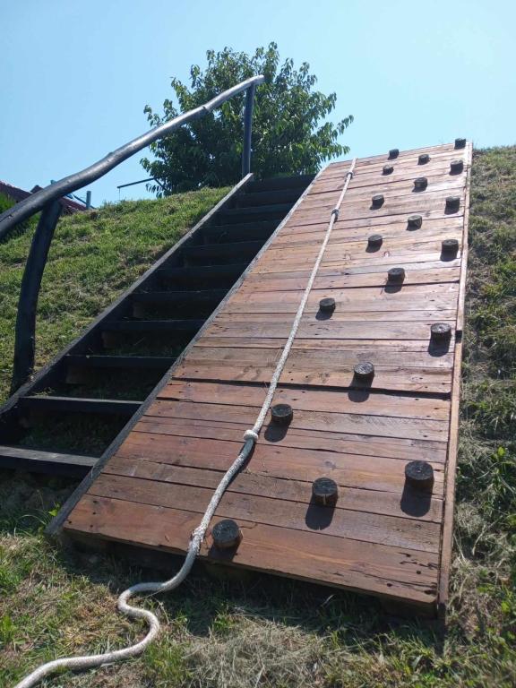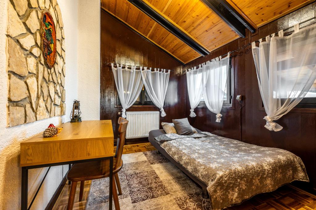 The holiday house "Nihil deest" is located in Falinić Breg, municipality of Cestica, 20 km from Varaždin, and 6 km from the border crossing Dubrava Križovljanska. The house offers a fully equipped kitchen, bathroom with bathtub, shower and toilet, separate toilet, dining room, living room and 2 bedrooms with a double bed and 1 room with a single bed. The house has a terrace with a hydromassage pool and wooden garden furniture, a barbecue, and an outdoor solar shower. The house is suitable for families with children. The yard of the house is fenced. In the yard there is a wooden climbing frame for children, a mini gym, a hanging bowling alley and a badminton set. From June to the end of September, an outdoor swimming pool (dimensions 7.5x3.5 m) with a sunbathing area is open.