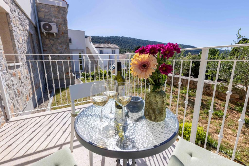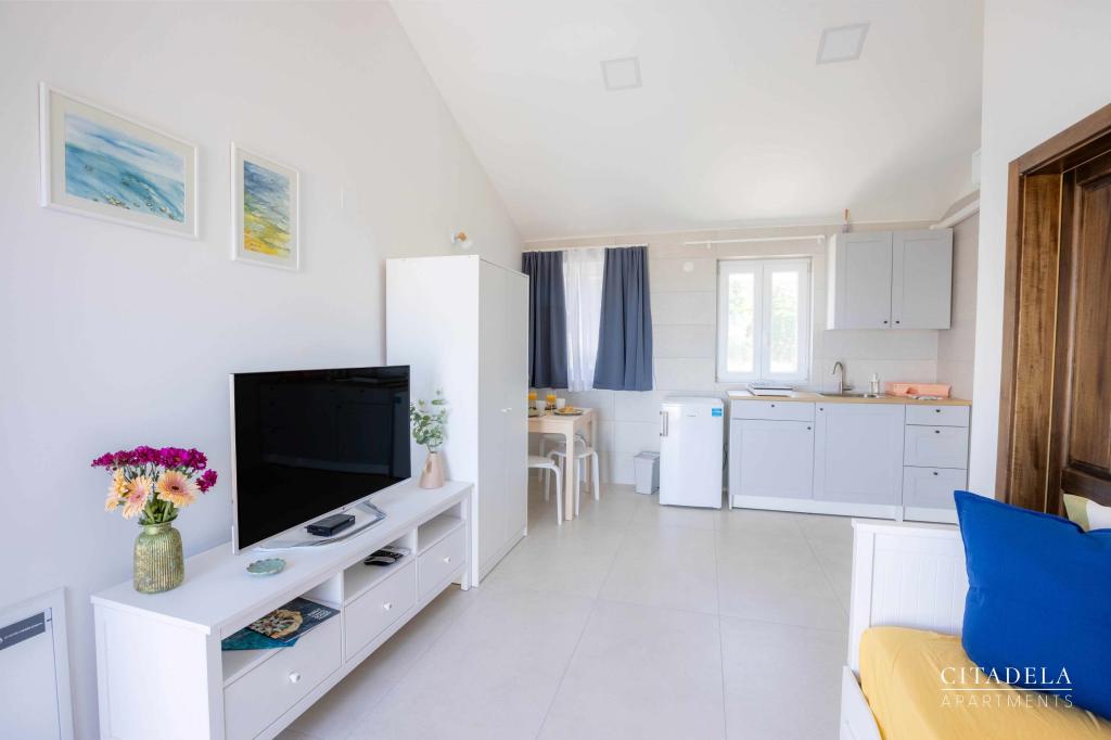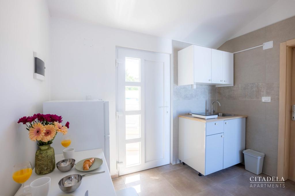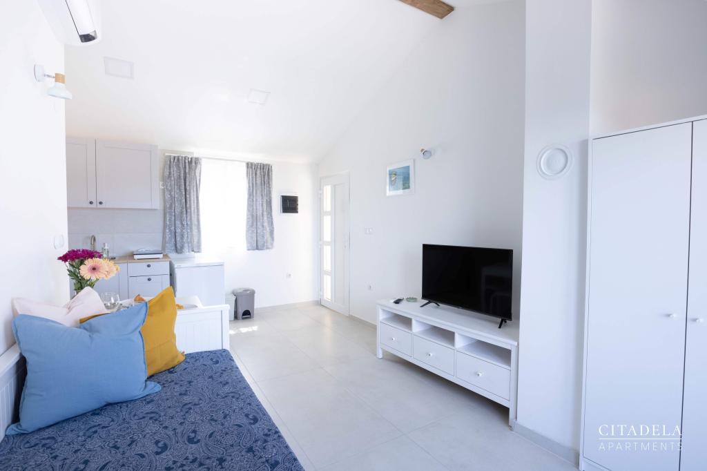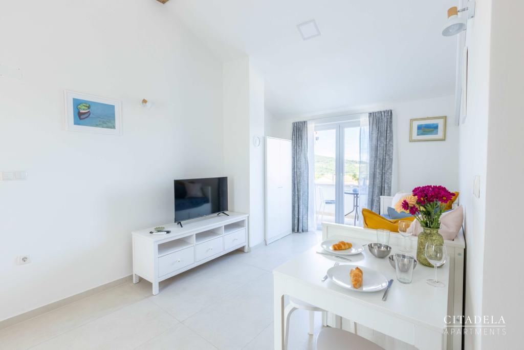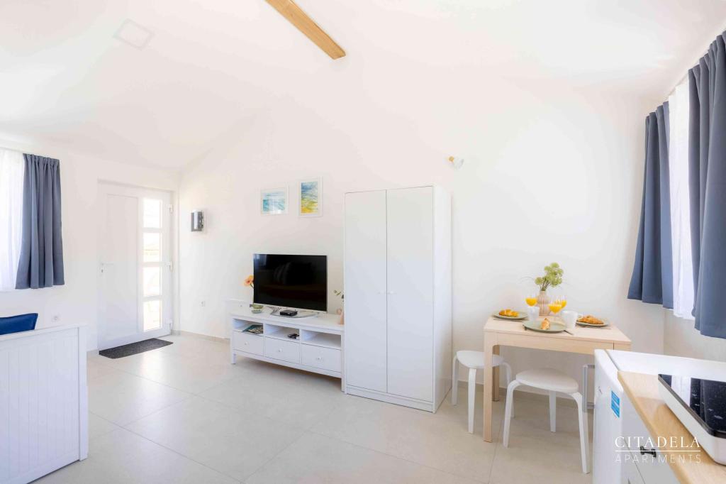 Citadela Veli Lošinj consists of two studio apartments (2+0) and six apartments (2+1). Each apartment has its own entrance, its own terrace, free parking within the facility, Wi-Fi, satellite TV, equipped kitchenette. A warm welcome, with a light snack, upon arrival is mandatory. As hosts, we will guide you to all the facilities and attractions on the island of Lošinj, and provide you with a quality and carefree vacation on the island of Lošinj. !!!!!!!!!!!!!!!!!!!!! FROM THE 2025 SEASON. WE HAVE EXPANDED THE OFFER TO PROVIDE BREAKFAST PREPARATION SERVICES !!!!!!!!!!!!!!!!!!!!!!!!!!!!!!!!!!! Breakfast is a la carte, with each guest choosing breakfast for the next day. Breakfast is charged at the facility. The guest chooses the type and price of breakfast.