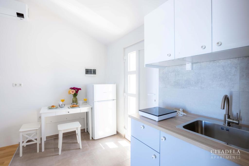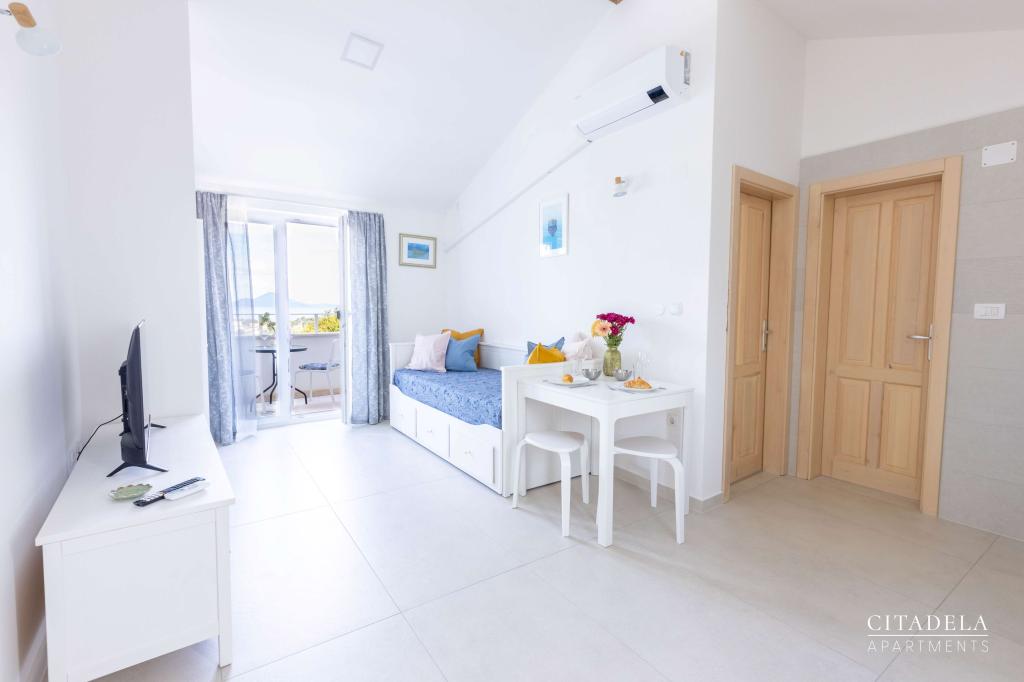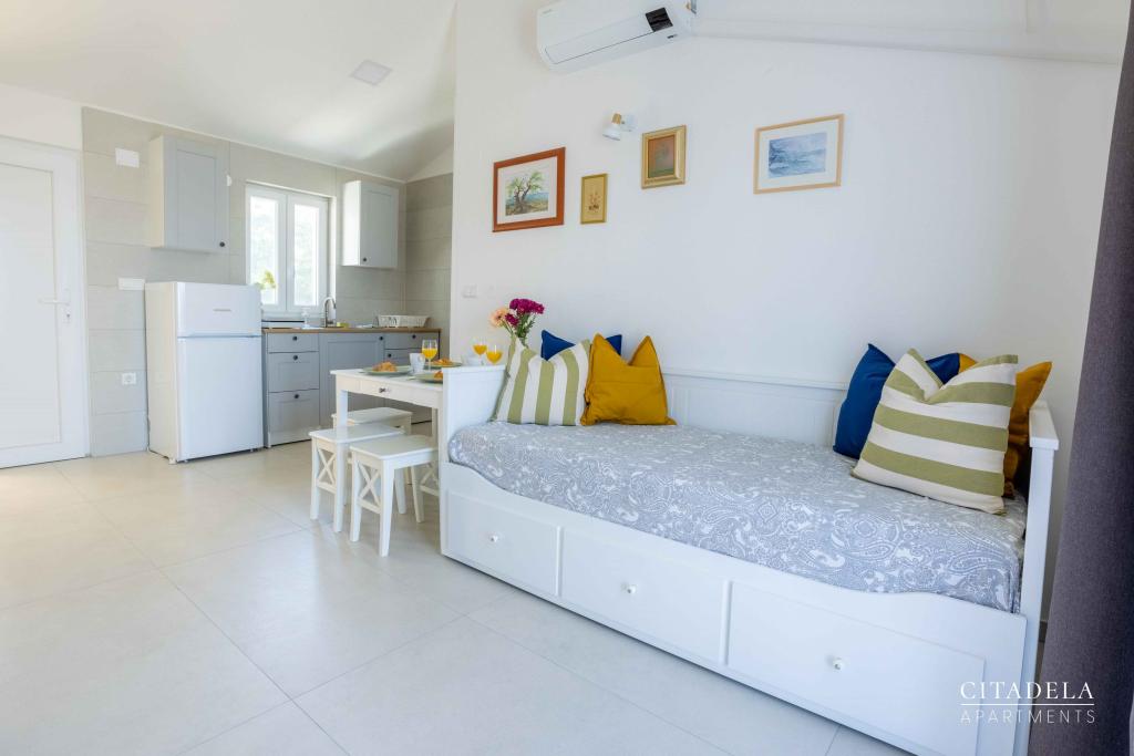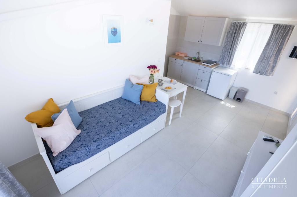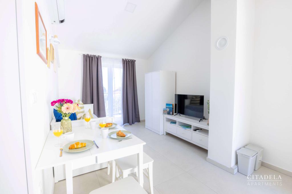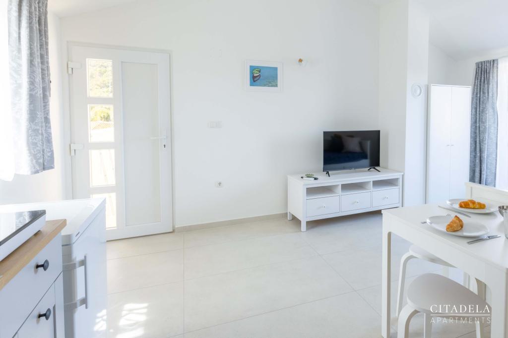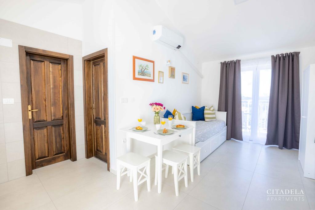 Citadela Veli Lošinj consists of two studio apartments (2+0) and six apartments (2+1). Each apartment has its own entrance, its own terrace, free parking within the facility, Wi-Fi, satellite TV, equipped kitchenette. A warm welcome, with a light snack, upon arrival is mandatory. As hosts, we will guide you to all the facilities and attractions on the island of Lošinj, and provide you with a quality and carefree vacation on the island of Lošinj. !!!!!!!!!!!!!!!!!!!!! FROM THE 2025 SEASON. WE HAVE EXPANDED THE OFFER TO PROVIDE BREAKFAST PREPARATION SERVICES !!!!!!!!!!!!!!!!!!!!!!!!!!!!!!!!!!! Breakfast is a la carte, with each guest choosing breakfast for the next day. Breakfast is charged at the facility. The guest chooses the type and price of breakfast.