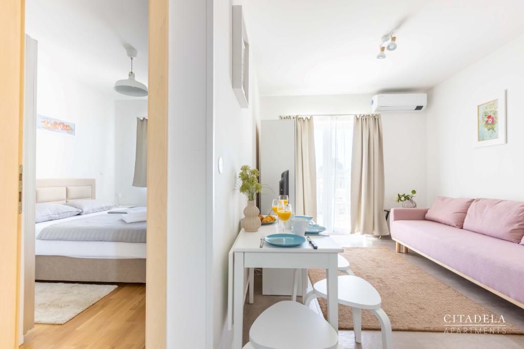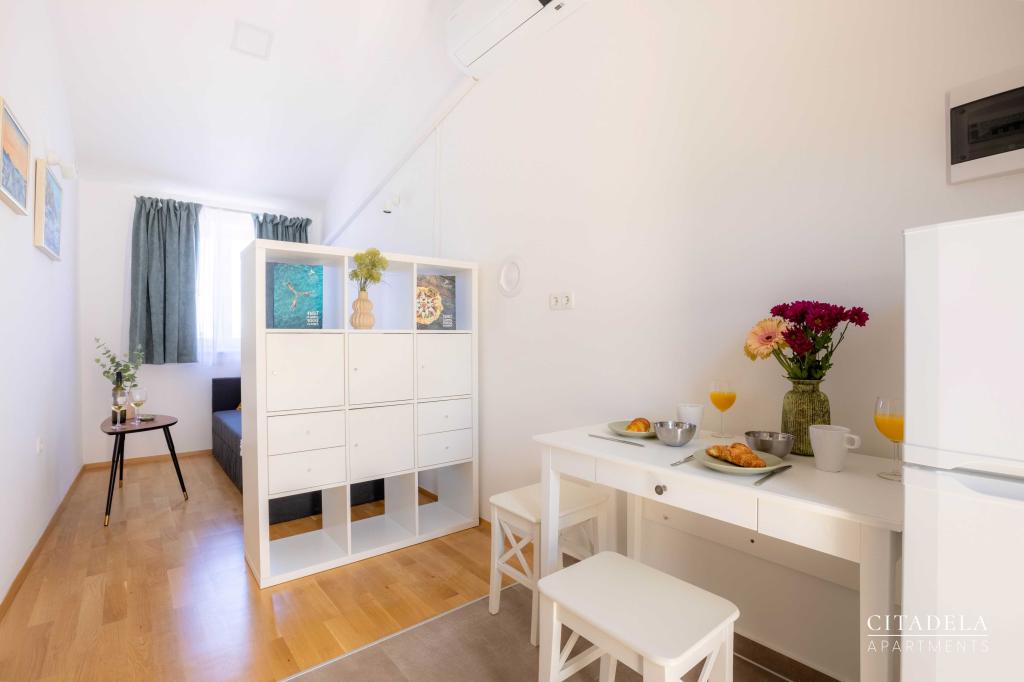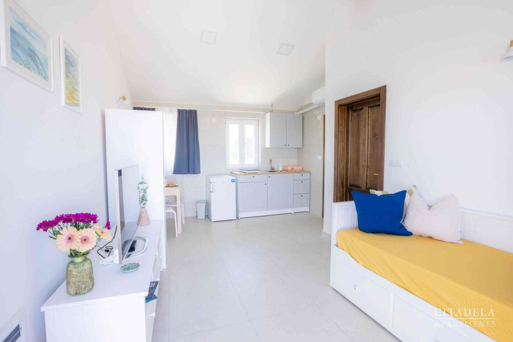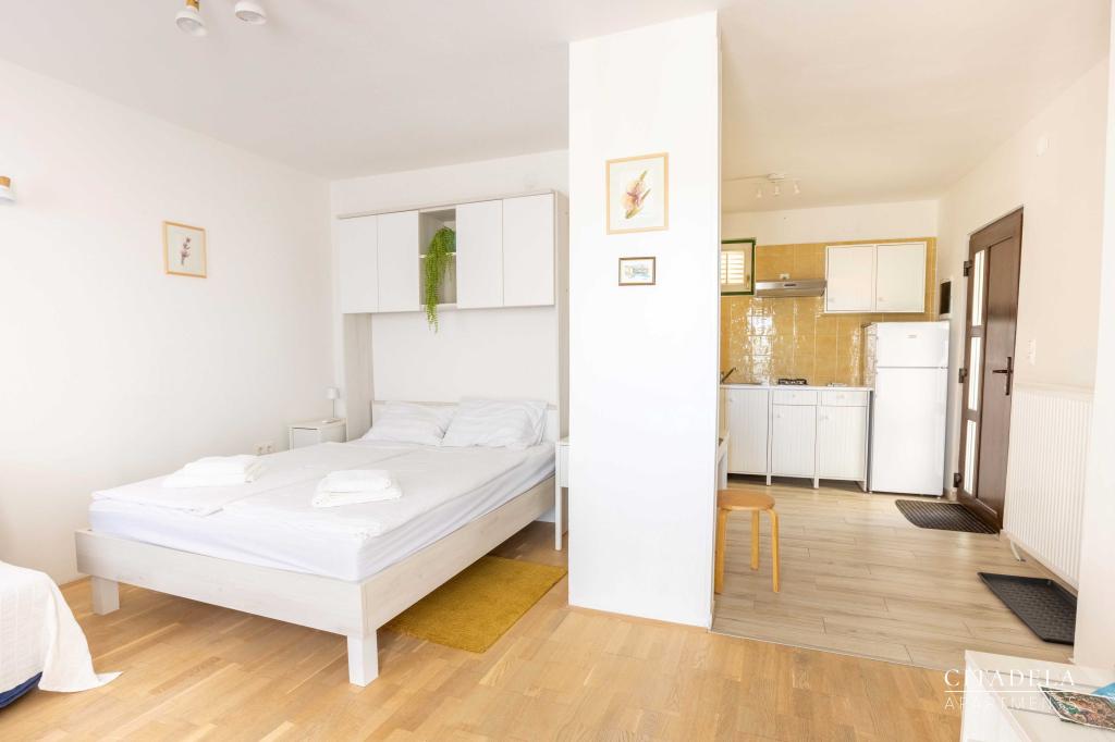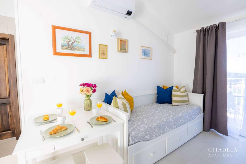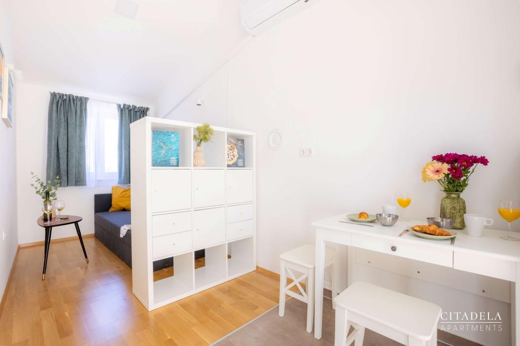 Citadela Veli Lošinj consists of two studio apartments (2+0) and six apartments (2+1). Each apartment has its own entrance, its own terrace, free parking within the facility, Wi-Fi, satellite TV, equipped kitchenette. A warm welcome, with a light snack, upon arrival is mandatory. As hosts, we will guide you to all the facilities and attractions on the island of Lošinj, and provide you with a quality and carefree vacation on the island of Lošinj. !!!!!!!!!!!!!!!!!!!!! FROM THE 2025 SEASON. WE HAVE EXPANDED THE OFFER TO PROVIDE BREAKFAST PREPARATION SERVICES !!!!!!!!!!!!!!!!!!!!!!!!!!!!!!!!!!! Breakfast is a la carte, with each guest choosing breakfast for the next day. Breakfast is charged at the facility. The guest chooses the type and price of breakfast.