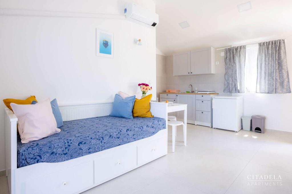 Apartments CITADEL VELI LOŠINJ, is a new facility. It opened on June 1, 2024. !!!!!! From the 2025 season, the offer has been expanded to include the BREAKFAST service. !!!!!!!! It is located in the immediate vicinity of the church of St. Anne in Veli Lošinj, which is considered to be the oldest church on the island of Lošinj, and around the church in the 13th century, the first 12 Croatian families settled, on the island of Lošinj in general. One of these houses is located within the CITADEL VELI LOŠINJ. Due to the beauty of the landscape, lush vegetation and extremely favorable climatic conditions, in 1892 the Austro-Hungarian Ministry of Health declared Veli Lošinj a climatic health resort. In addition to the benefits of the climate on Lošinj, it is possible to enjoy various sports and water activities. There are fantastic natural beaches nearby, which are a ten-minute walk away. (Javorna, Kriška, Rovenska) Restaurants in the Rovenska bay, the Apoxyomenos Museum in Mali Lošinj. Aqua Park Čikat. Themed viewpoint Providence......