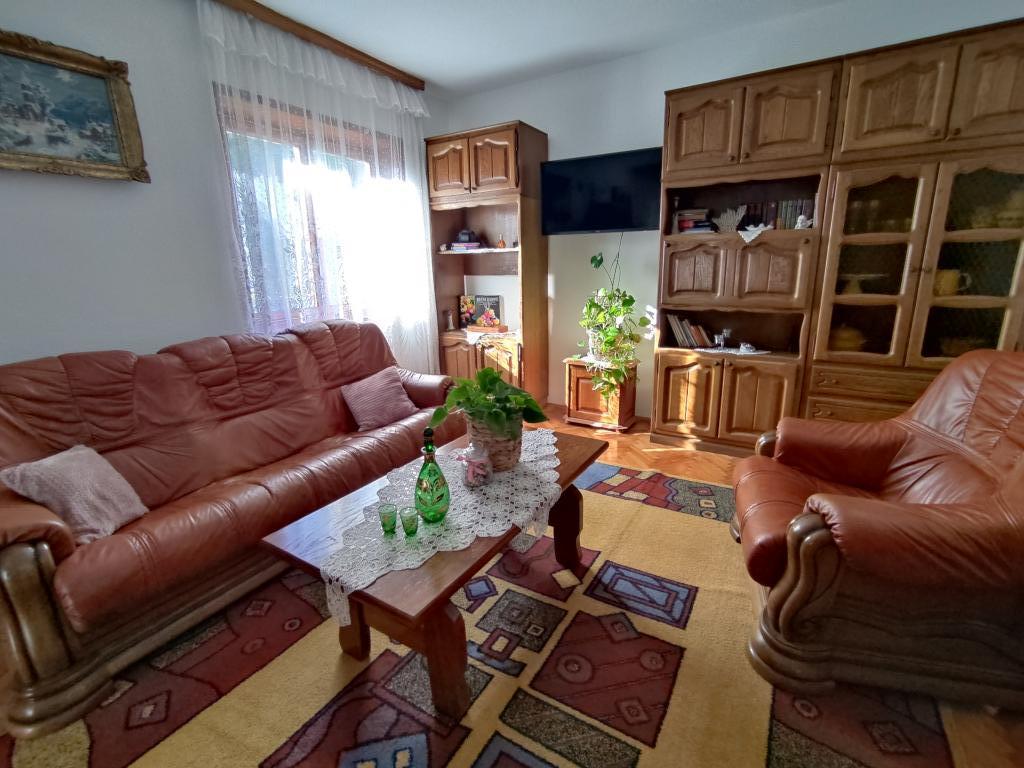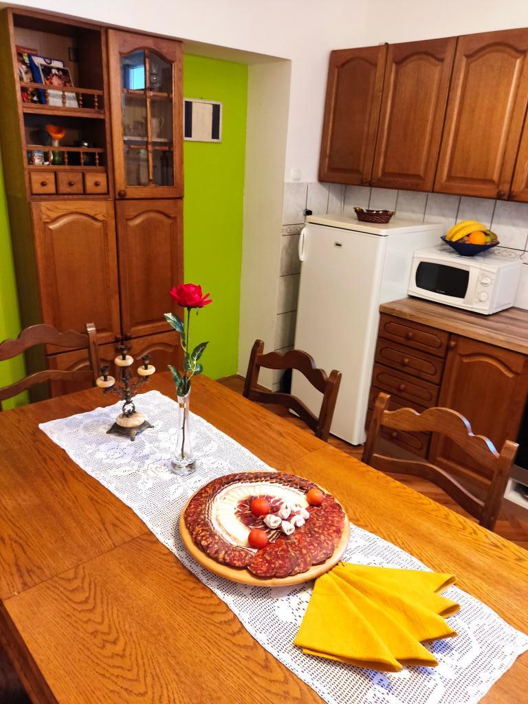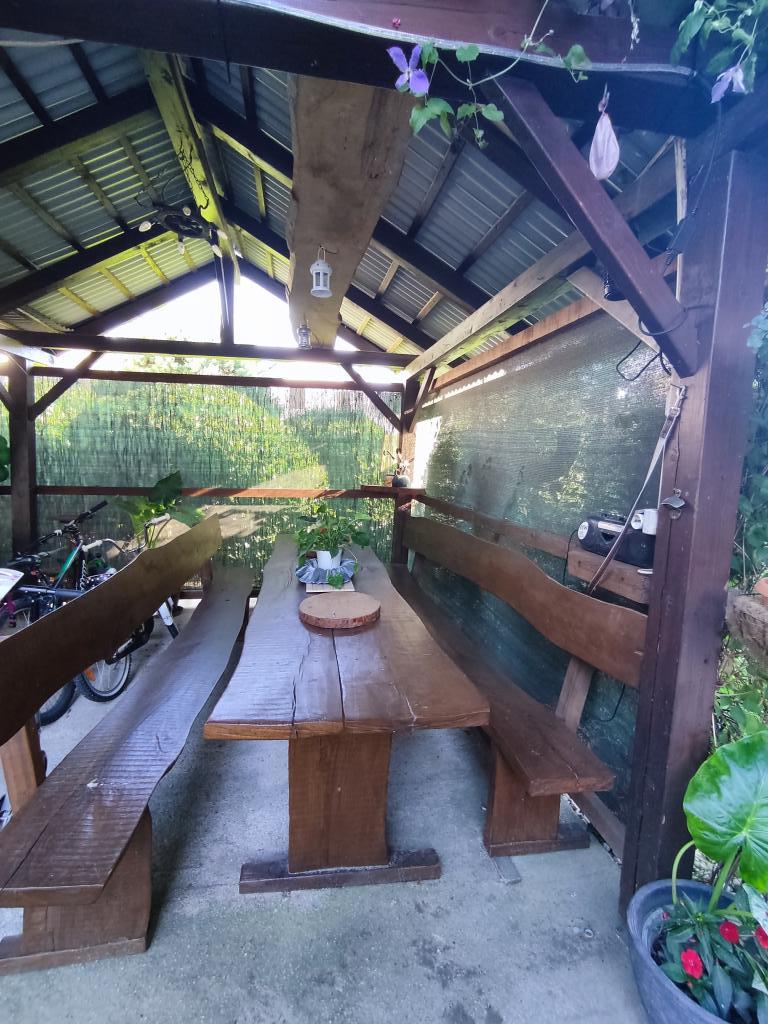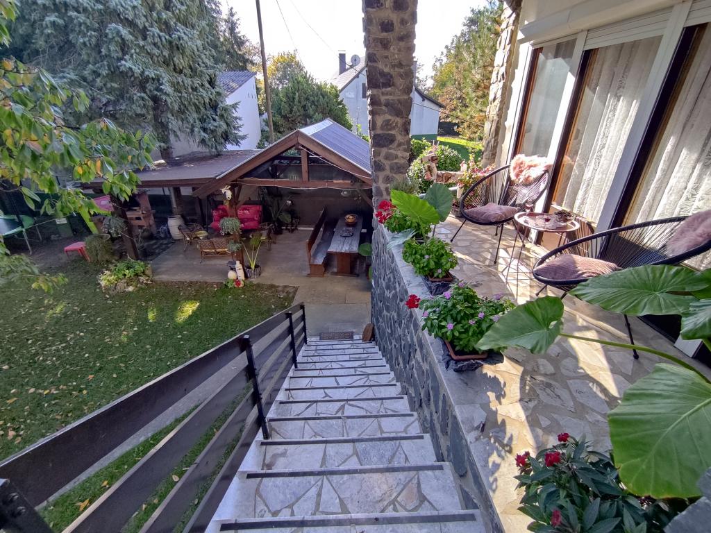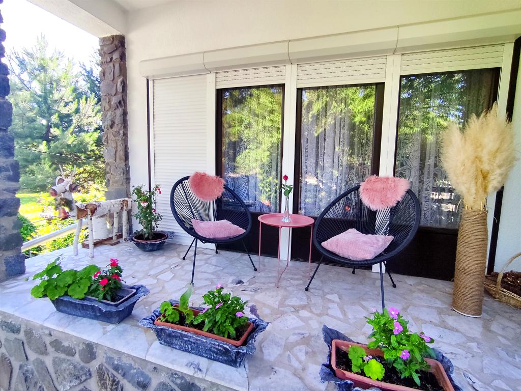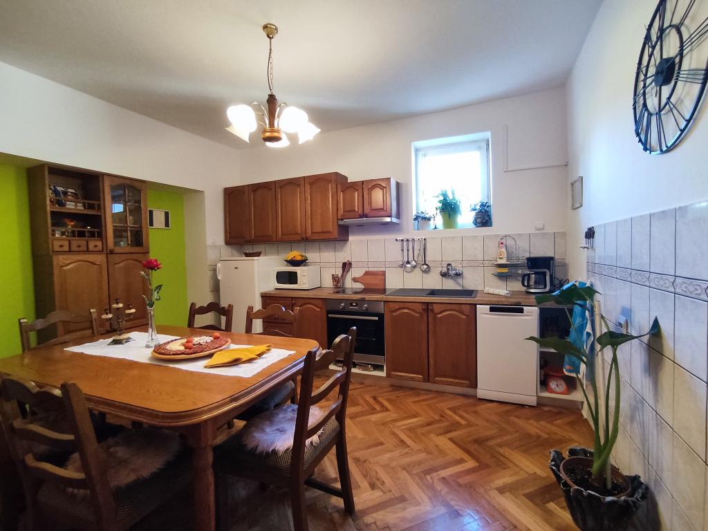 Apartment furnished in Slavonic style, modernized, functional, surrounded by trees and streams in the village of Velika podno Papuka. The kitchen is equipped with appliances and dishes for preparing and serving food. In the bedroom there is a large double, hand-made, oak bed, as well as a double wardrobe, a bedside table and a makeup table with a mirror. In the spacious living room there is a leather three-seater and two-seater and a smart TV with access to the terrace with garden furniture. The bathroom has underfloor heating, a shower and a washing machine. At your disposal is a yard with a canopy and a large table with benches, a barbecue, a children's playground, and a trampoline. Behind the building is a stream where you can fish or refresh yourself on hot days. The apartment is located near the nature park, adrenaline park, aqua park, forest and vineyard. It is 300 m from the restaurant, 1000 m from the store and gas station.