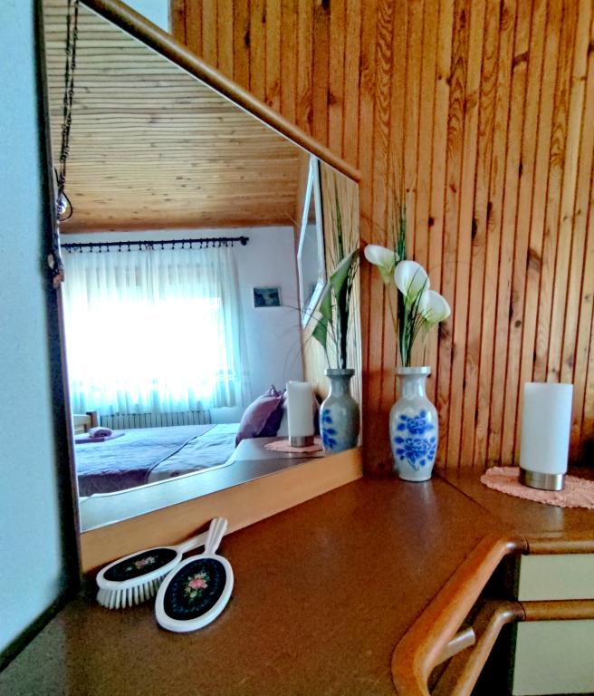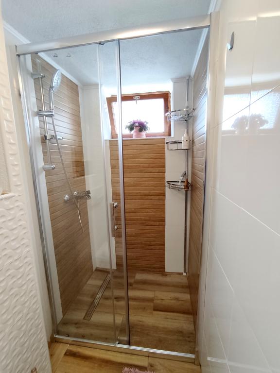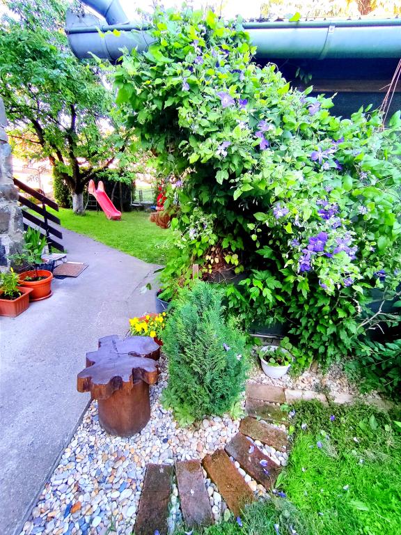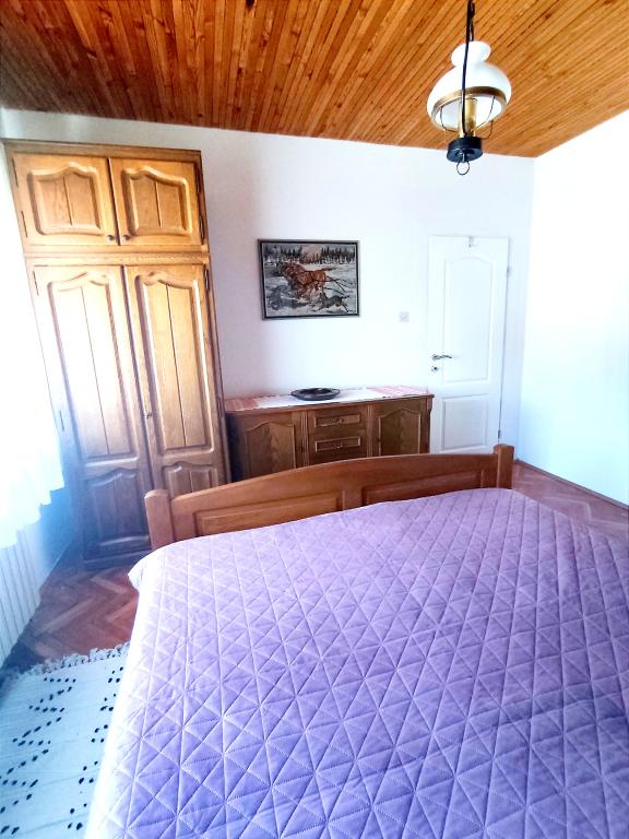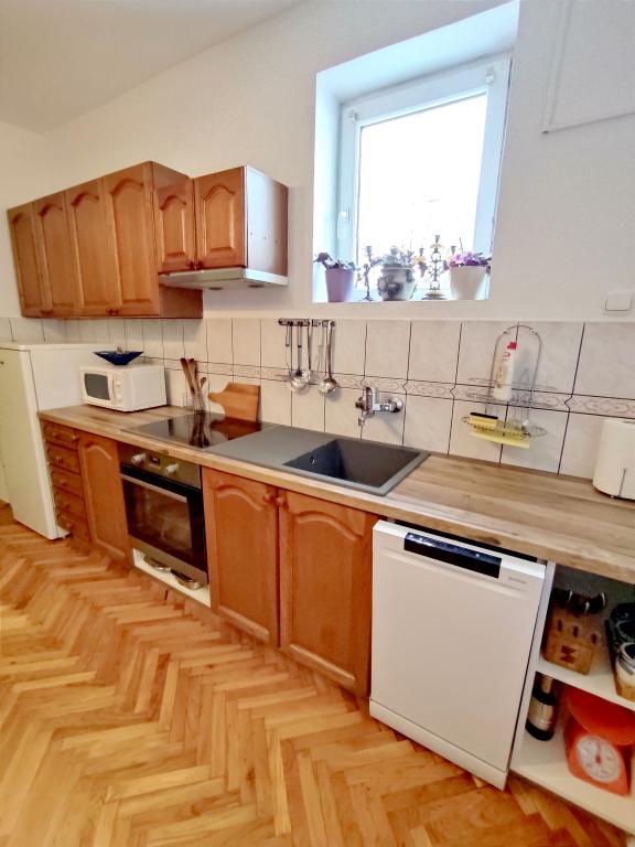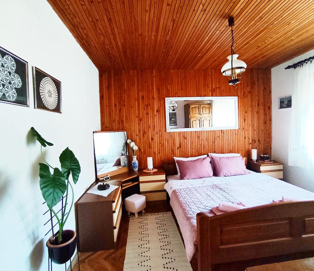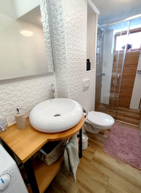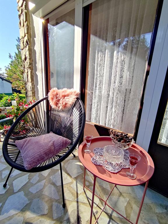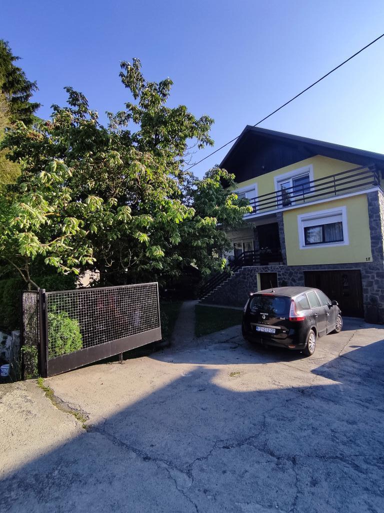 Apartment furnished in Slavonic style, modernized, functional, surrounded by trees and streams in the village of Velika podno Papuka. The kitchen is equipped with appliances and dishes for preparing and serving food. In the bedroom there is a large double, hand-made, oak bed, as well as a double wardrobe, a bedside table and a makeup table with a mirror. In the spacious living room there is a leather three-seater and two-seater and a smart TV with access to the terrace with garden furniture. The bathroom has underfloor heating, a shower and a washing machine. At your disposal is a yard with a canopy and a large table with benches, a barbecue, a children's playground, and a trampoline. Behind the building is a stream where you can fish or refresh yourself on hot days. The apartment is located near the nature park, adrenaline park, aqua park, forest and vineyard. It is 300 m from the restaurant, 1000 m from the store and gas station.