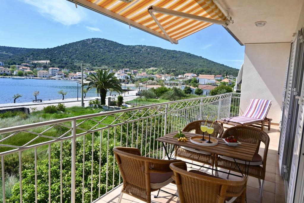 Apartment Leonora is located right next to the beach, first row to the sea, in the very center of a small fishing village. It is located on the first floor of a family house with a large yard. In front of the house there is a well-kept gravel beach that is ideal for families with children. The apartment is air-conditioned, with its own parking lot and the possibility of using a grill and a solar shower in front of the house. It consists of two bedrooms, a large living room with a corner sofa that can be opened and used for sleeping, a spacious kitchen with a dining room and a bathroom. There is also the possibility of installing an extra bed, as well as a cot by prior agreement. On the south side, it faces the sea, and the entire length of the prosthesis is covered with a terrace that allows you to enjoy a beautiful view of the entire bay. All necessary facilities are no more than 50 meters away from the house (bakery, cafes, restaurants, tourist agency, ATM). The apartment is prepared depending on the guests and we want every guest to feel at home.