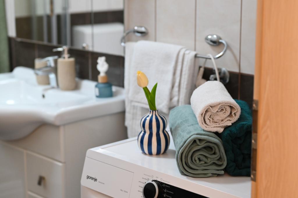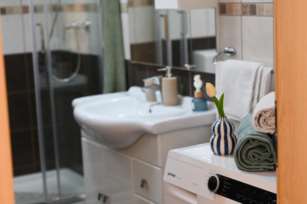 The price includes a welcome drink, as well as the possibility of renting a SUP. In Vinišće itself, it is possible to rent a boat and discover hidden sandy beaches. Trogir, a city under the protection of UNESCO, is located near the town, about 20 kilometers away. At your request, we can recommend nearby towns and cities that are lovely for sightseeing (Primošten, Rogoznica, Krka National Park). Vinišće also offers several bike paths, mountain trails and areas for exploration. It is possible to go fishing and diving with the hosts. The apartment is very well and modernly equipped, especially the kitchen, which has all accessories. In the living room, there is a large smart TV, and it has the ability to watch Netflix.
