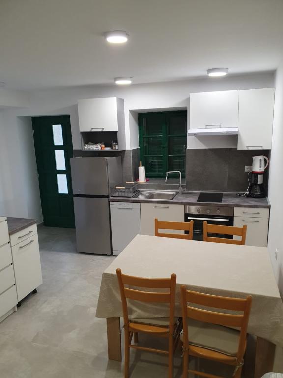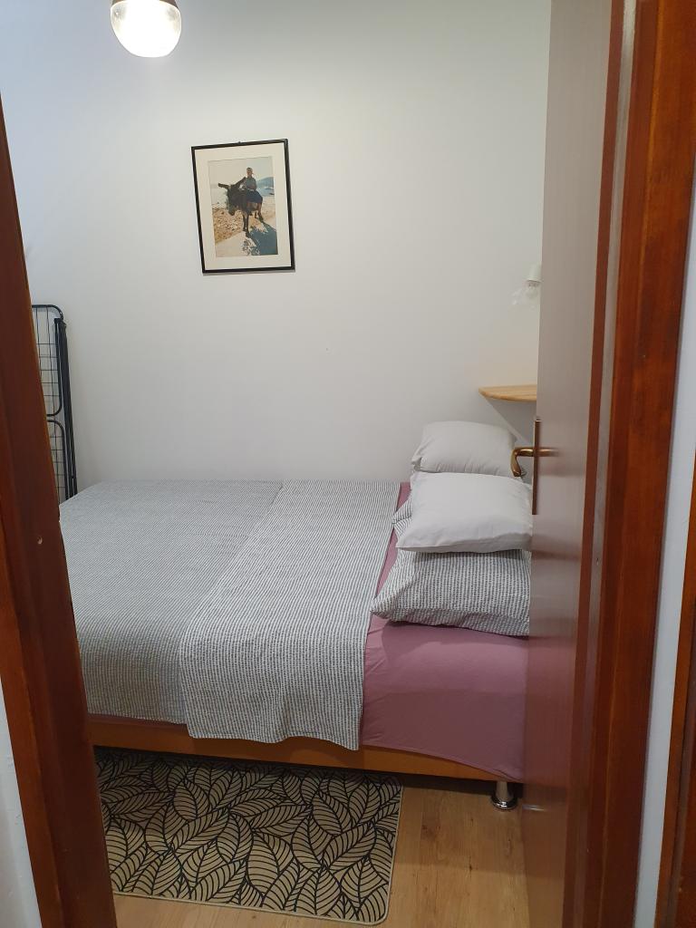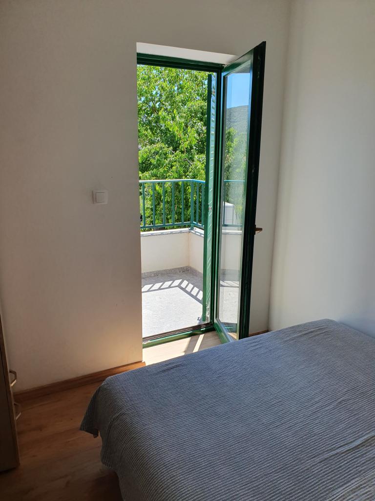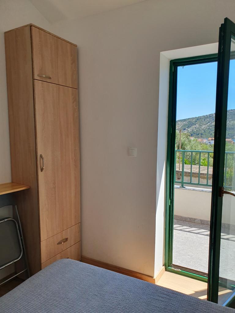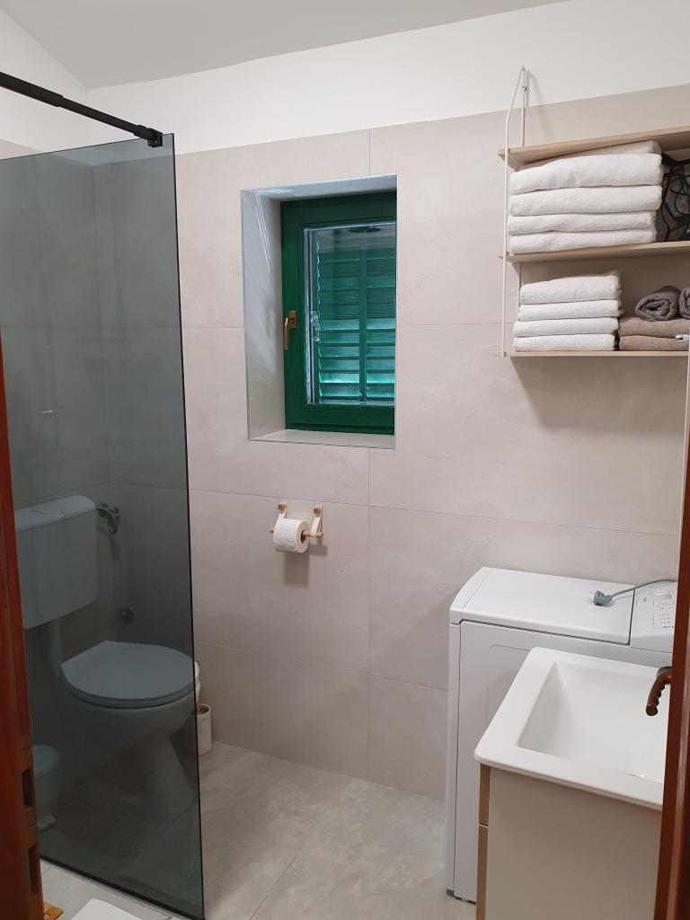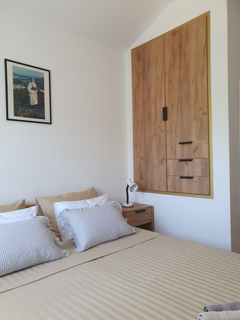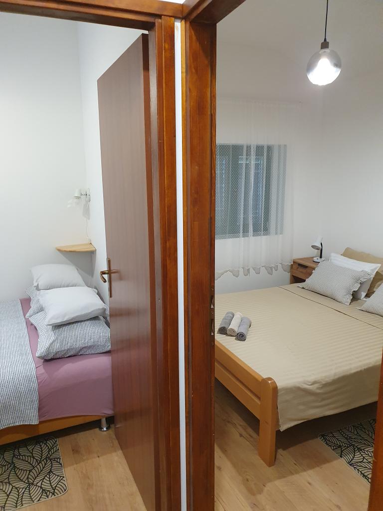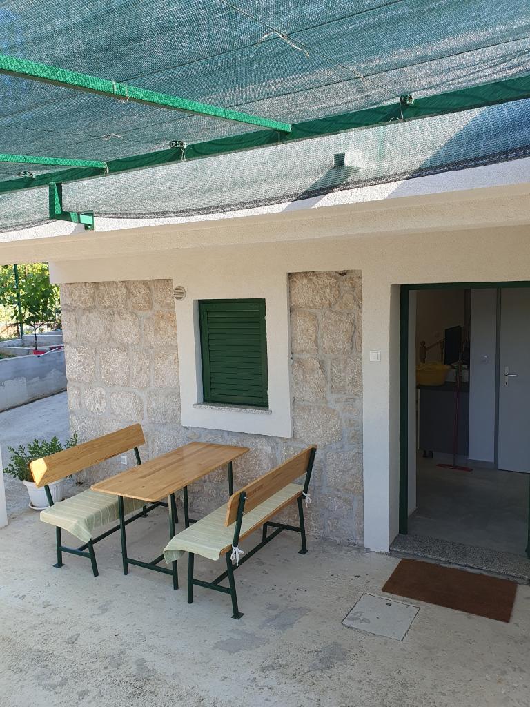 The holiday house "Kaja" is located in the old, quiet part of a small Dalmatian town. It is equipped with all the necessary equipment for a pleasant stay. Right next to the house there is a parking space and a shaded terrace. The house is spread over two floors, connected by an internal staircase. On the ground floor there is a fully equipped kitchen with a dining room, a living room and a small toilet. On the first floor there are two double bedrooms and a bathroom with a toilet. One of the rooms has an exit to a balcony from which there is a panoramic view of the entire town. The beach is about a 10-minute walk from the house, and other facilities such as restaurants and shops are located at a similar distance.