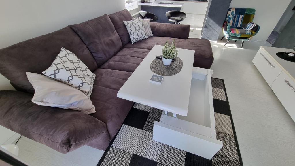 Laura Exclusive, designer apartment, excellently equipped, self check-in is located in Vinkovci, 41 km from Museum of Slavonia and 42 km from Museum Of Fine Arts in Osijek, in an area where cycling can be enjoyed. The property features free bikes, a terrace, city views and free WiFi throughout the property. The air-conditioned apartment consists of 1 bedroom, a living room, a fully equipped kitchen with a fridge and a coffee machine, and 1 bathroom with a shower and free toiletries. A flat-screen TV with satellite channels is available, as well as a computer. Opus Arena is 42 km from Laura Exclusive, designer apartment, excellently equipped, self check-in, while Stadion Gradski vrt is 40 km from the property.