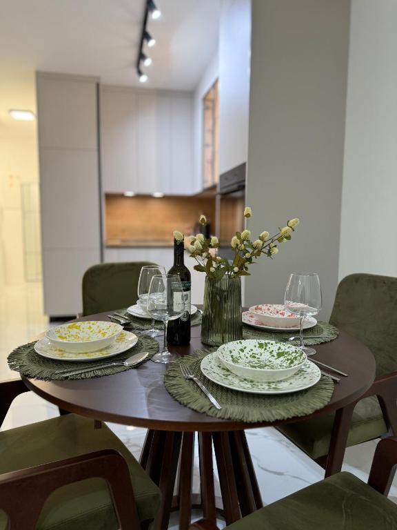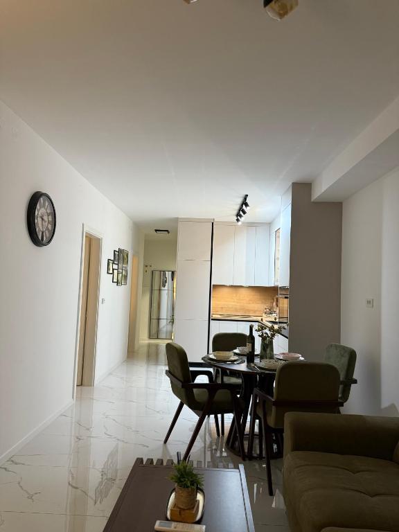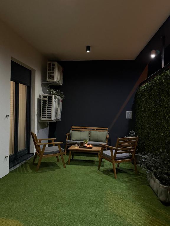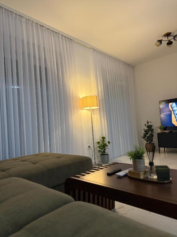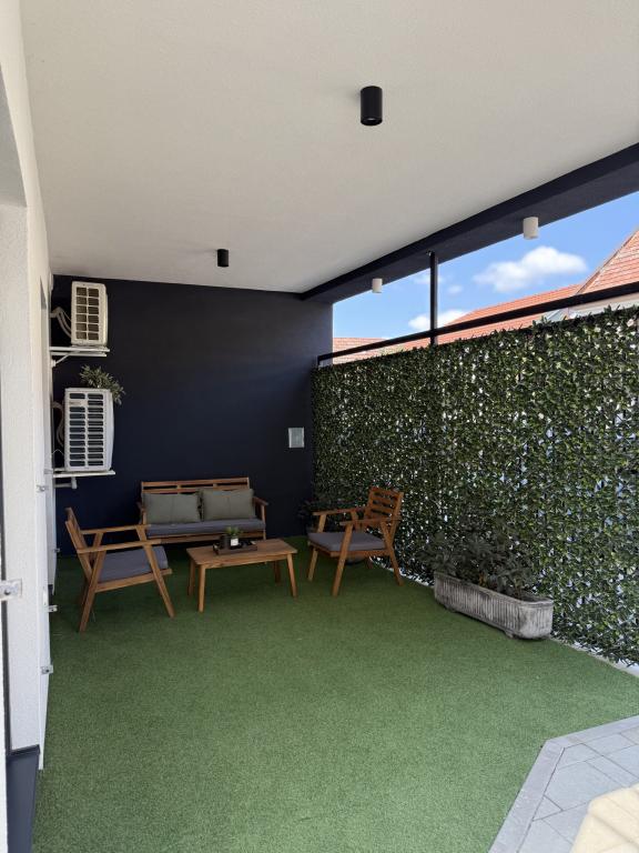 Welcome to Apartment Dukat, a modern apartment in a new building located in the very center of Vinkovci! This elegantly decorated space on the ground floor (no stairs) is ideal for families, couples or business travelers. The apartment has its own parking space in the yard and a spacious terrace (18m2) for relaxation. It is fully equipped to make your stay