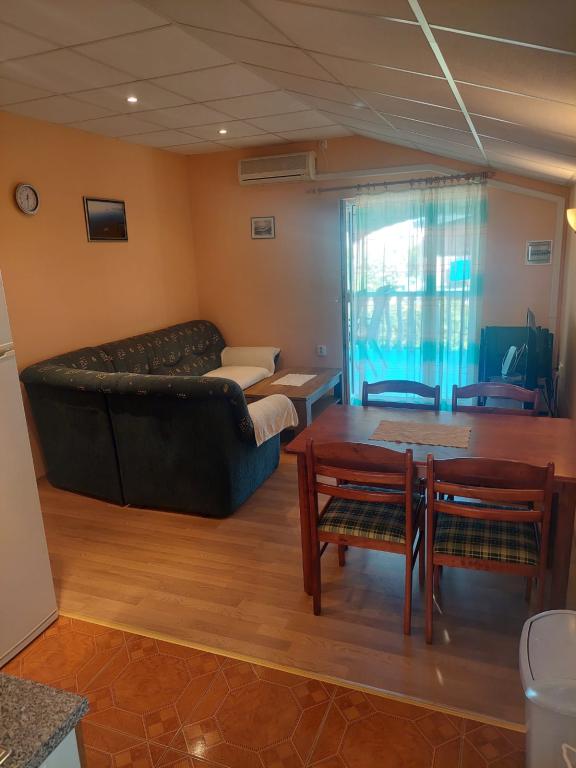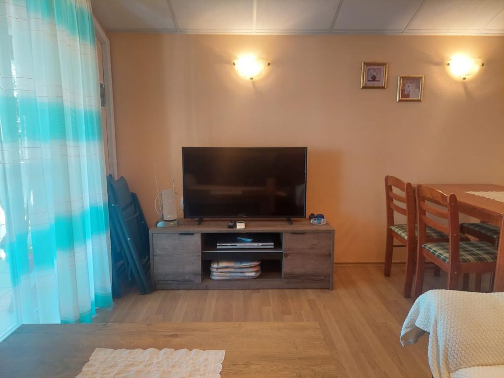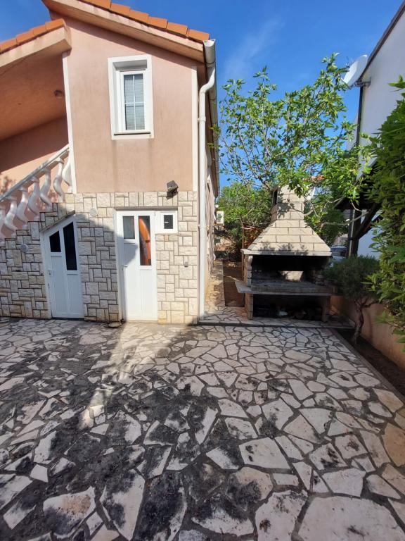 The pleasantly furnished apartment is located on the island of Vir, which offers many activities for fun and relaxation at the same time. The yard is full of greenery and offers free parking for your car. It is also possible to use the equipment for an ideal barbecue. The building contains a living room, kitchen, bathroom, two bedrooms and a spacious terrace. The apartment is equipped with devices such as air conditioning, internet, smart TV, DVD, radio, microwave oven, kettle, refrigerator with freezer, hair dryer, etc. The beach is pebble, and there are small pebbles and sand in the sea. Part of the beach is perfectly adapted for children. The beach is only a few minutes away, and the center is a 10-minute walk away. A large supermarket is 400m away, and the nearest restaurant is only 300m away.