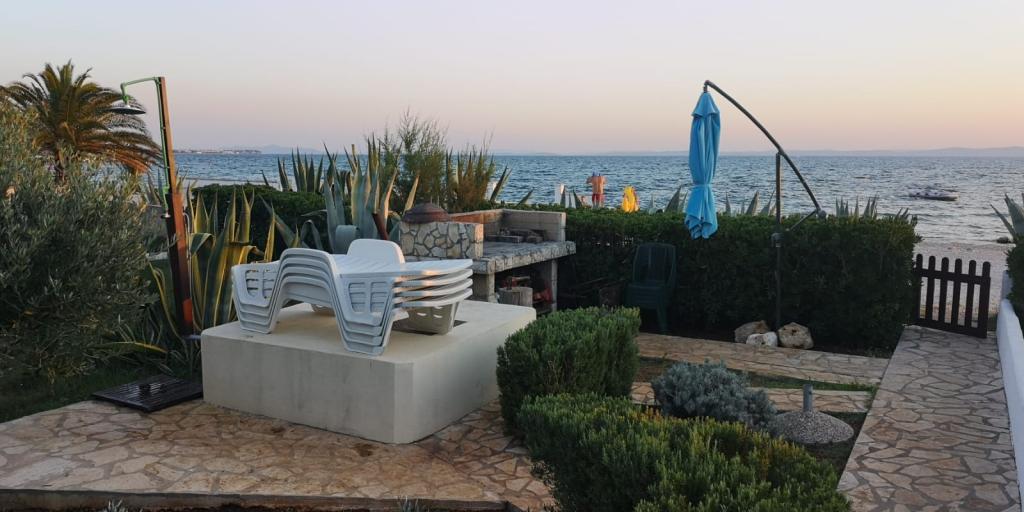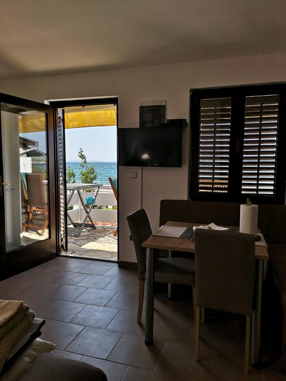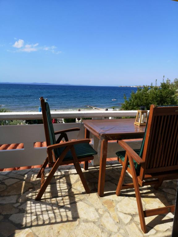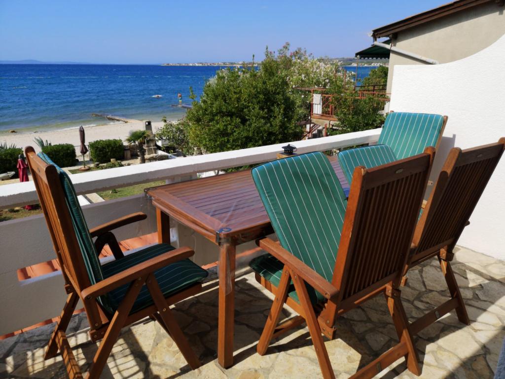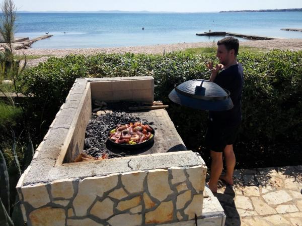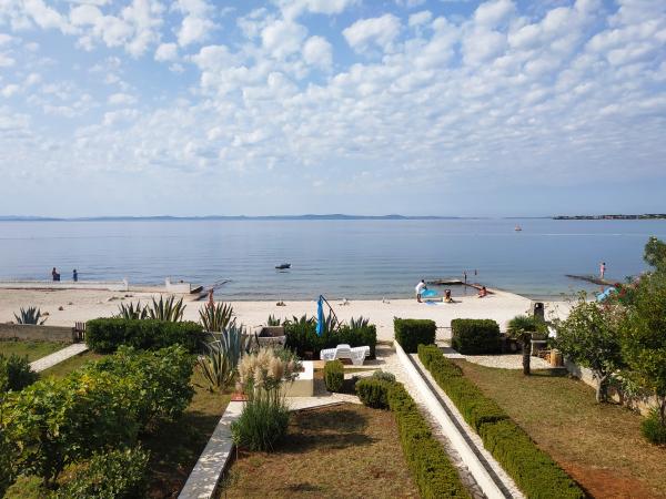 We vacationed in the apartment in 2019 with two young children. The apartment is directly on the beach. There are few such locations. Wonderful view from the terrace. There is no road between the apartment and the beach. Very suitable for children. Practically, you always have them on your eyes (even from the terrace), even if you are not always with them on the beach. When you leave the garden you are on the beach. After a few steps in the sea. So pillows and socks we had nonstop on the beach. Refrigerator is at your fingertips… a few steps to the apartment… And no beach packing and shipping…. and then tidying up and loading them back to the apartment !!!! In the evening, I just moved all the fodder over the fence to the apartment garden. However, if we accidentally forgot, the friendly owner did it for us. In the garden next to the beach shower, fireplace for baking .. with umbrella…. After the daily fresh fish, vegetables, fruits I went to the local fishermen. Of course, the owner tells you about them. The apartment is newly furnished. This is a studio + 1 apartment. On the terrace of the apartment a great shade awning with motor and remote control. At every turn, one can see (also the son of a tourism worker) that they know themselves as tourism. The owners are very friendly, helpful and unobtrusive. Everything is tidy, tidy, clean ... Every little thing is taken care of ... There is a promenade leading to the city center. There is a lot going on in the city and a concert almost every night. There are several shops, bakeries nearby. I used to ride a bicycle, which is of course lent by your owner. In short for us, great, five. As it is said, there are few such locations. Of course, we will return at the first opportunity, if only to comply with the term.