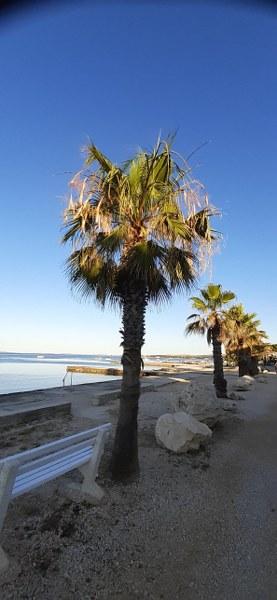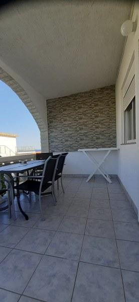 The apartment is located in an excellent location, only 20 m from the beach. It has a large beautiful terrace with a view of the sea (the terrace is very well provided with shade). The location is very suitable for families with children or people who do not want noisy nightlife. There are restaurants, cafes and shops nearby. There is also some natural shade along the beach. We must especially emphasize the friendly owners of the apartment. You will feel at home with them!!