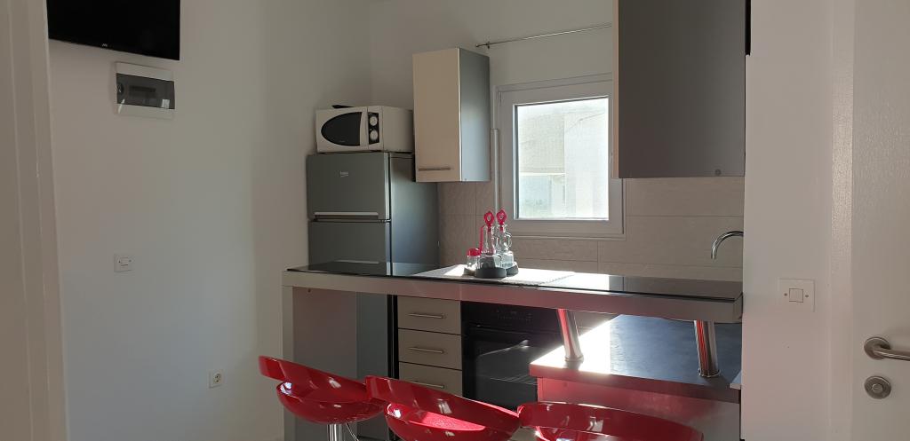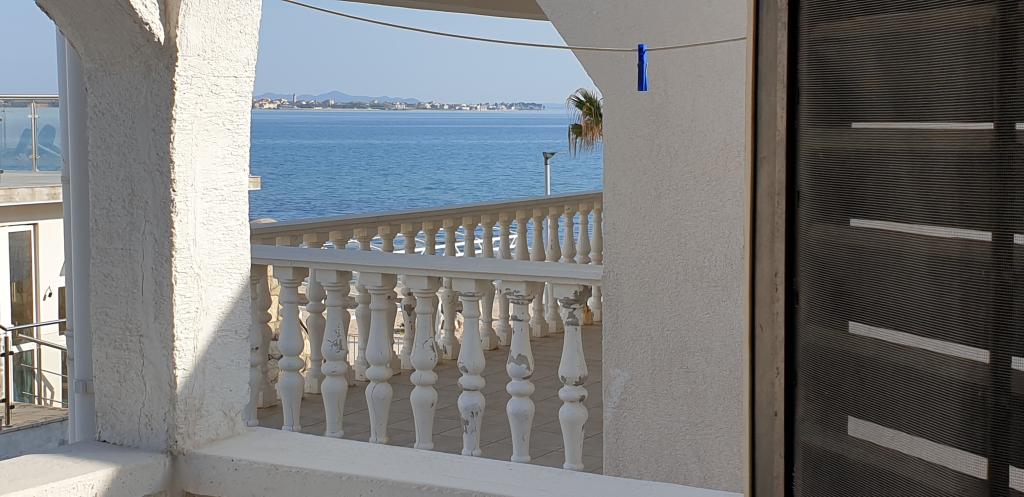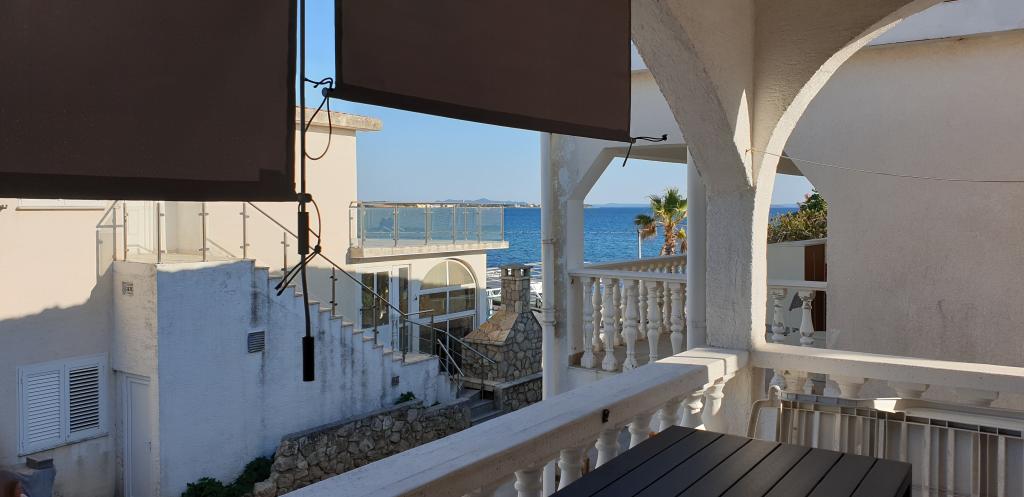 Fully equipped apartment, TV, air conditioning, wi-fi, induction hob, oven, microwave, kettle, dishwasher. The apartment is upstairs, consists of a kitchen, bathroom and two bedrooms, one with a double bed and the other with two single beds leading to a terrace overlooking the sea. The center is about 2 km along the promenade by the sea, a shop is 300 meters away, and a restaurant 30 meters. We look forward to your visit and are always available for questions and reservations.