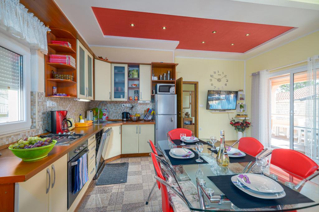Apartment Lela is located on the first floor. The apartment has two bedrooms, two bathrooms, large living room with kitchen and dining area, and a large terrace. The beach is 100 m away from the apartment, shop also 100 meters. On the beach there is a fast food restaurant and a coffee bar. The street is quiet, traffic is only for street residents. The apartment has its own parking space in the yard, grill and its own large terrace. The beach is concrete with pebbles, and 200m away is a bay with a sandy beach. Shop and bakery is 100m from the apartment The apartment has city water. It has air conditioning and free internet access. Organized trips through the Tourist Office Vir to the Krka waterfalls, Kornati, Plitvice Lakes and other interesting destinations. Bicycle, speedboat and boat rental. Diving school. We want you to feel comfortable in your apartment in your house and that your stay in Vir will remain in your fond memories :) We look forward to your arrival