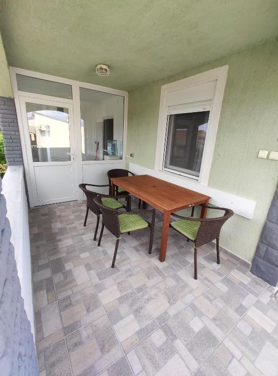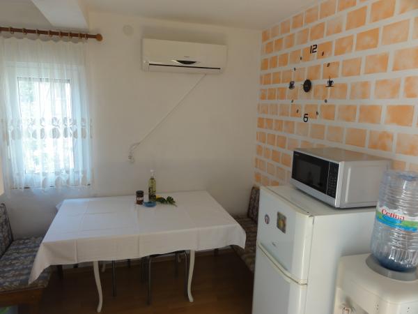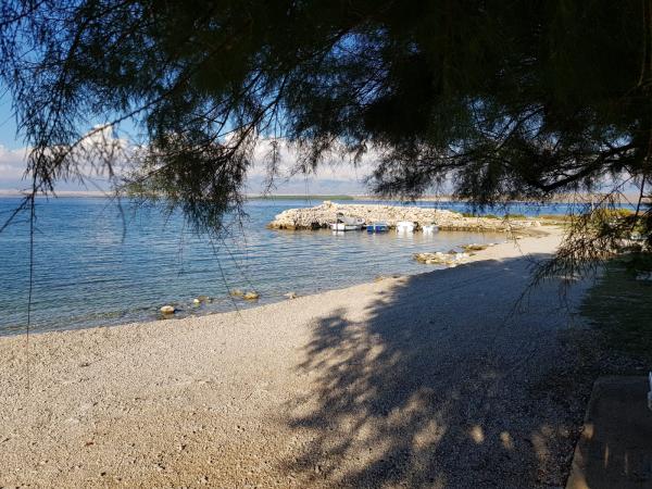 The apartment is located in a quiet part of the island, on the first floor with a separate entrance and a terrace. The apartment consists of two bedrooms, living room, kitchen with dining room, bathroom and terrace. There is a parking space in the yard as well as the possibility of using the grill. The apartment is equipped with LCD TV, water heater, dishwasher, microwave, toaster, hair dryer, iron and there is a possibility to use a washing machine. The pebble beach is suitable for families with small children and is 220 meters away from the apartment, and there is a small cafe on the beach.