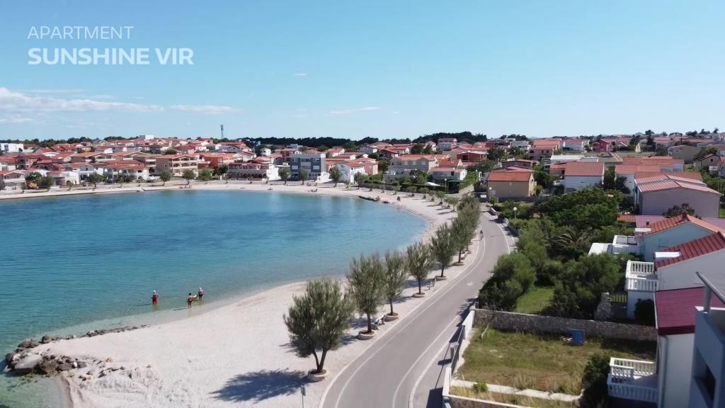 Two-bedroom apartment 'Sunshine' on the island of Vir. The apartment is located in a quiet street, 90 meters from the beach. The beach has a sandy bottom, so it is ideal for families with children. Shop, bakery, cafe bar within 50 meters. One parking space provided, Wi-Fi, air conditioning. Mosquito nets on all doors and windows. Arrival time: From 14:00h, departure time until 9:00h.