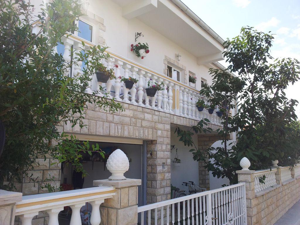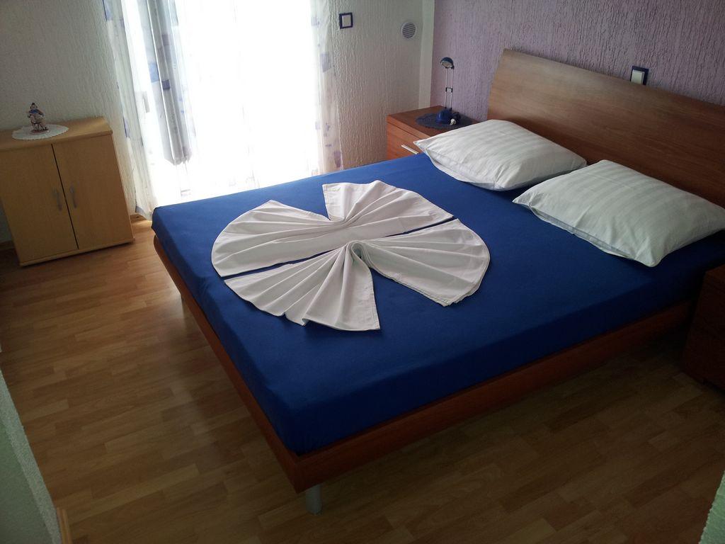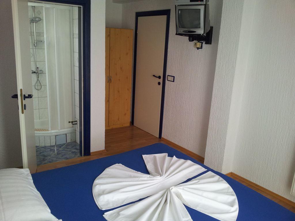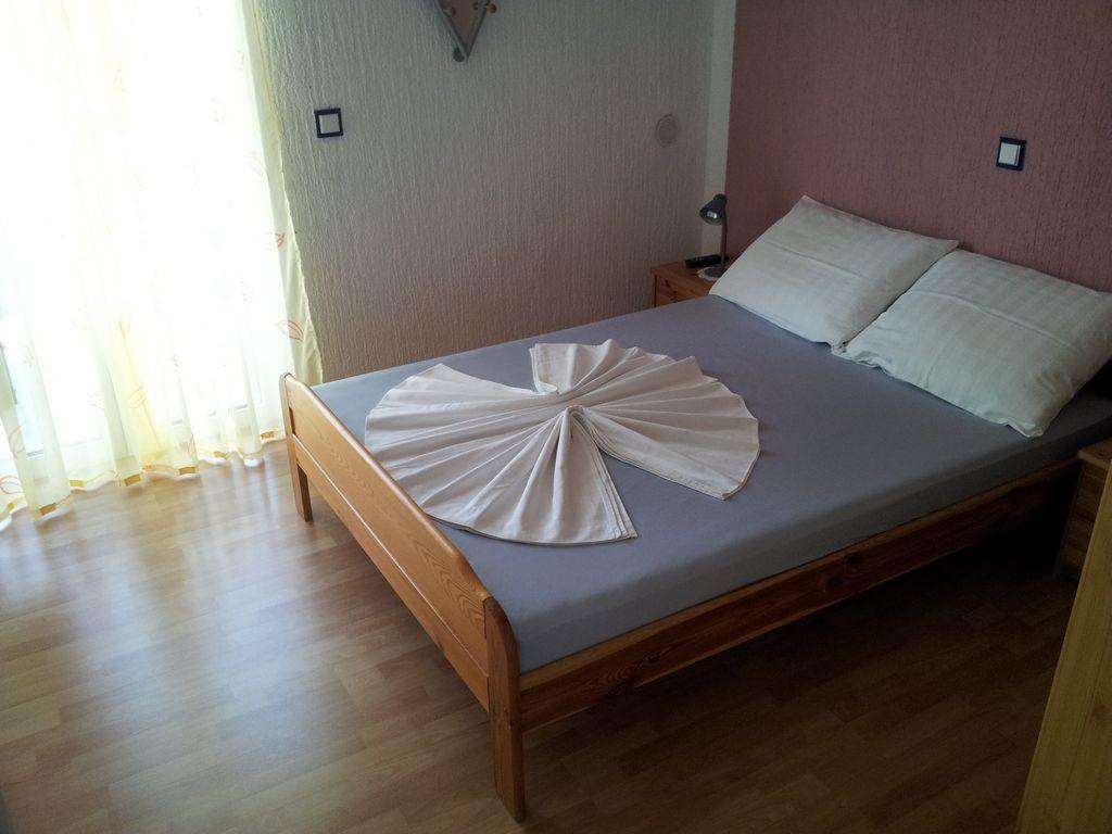 Modern apartment with two balconies on the first floor of a family house, consists of living room, kitchen, two bedrooms, each room includes its own bathroom, balcony and satellite TV, Wi-fi, in a quiet area, fourth row to the sea, 3 minutes walk to the beach, 5 minutes to the first shop and bus stop. In the yard there is a barbecue for guests and a parking space.