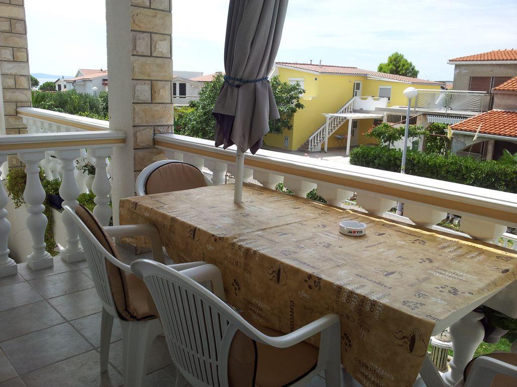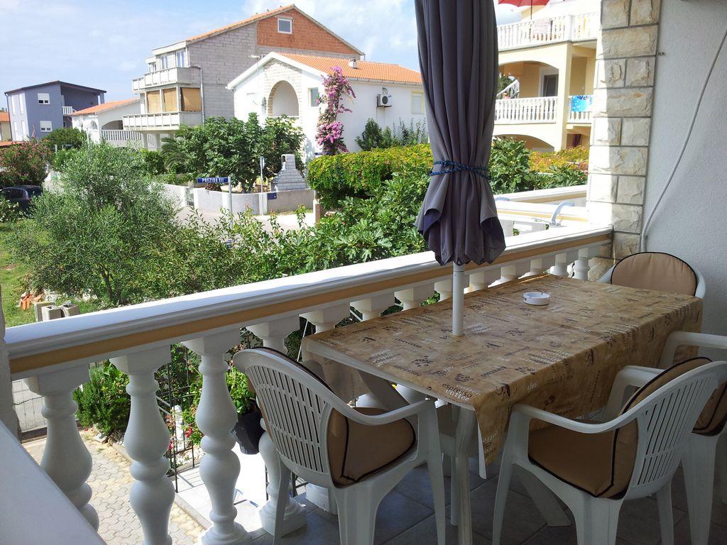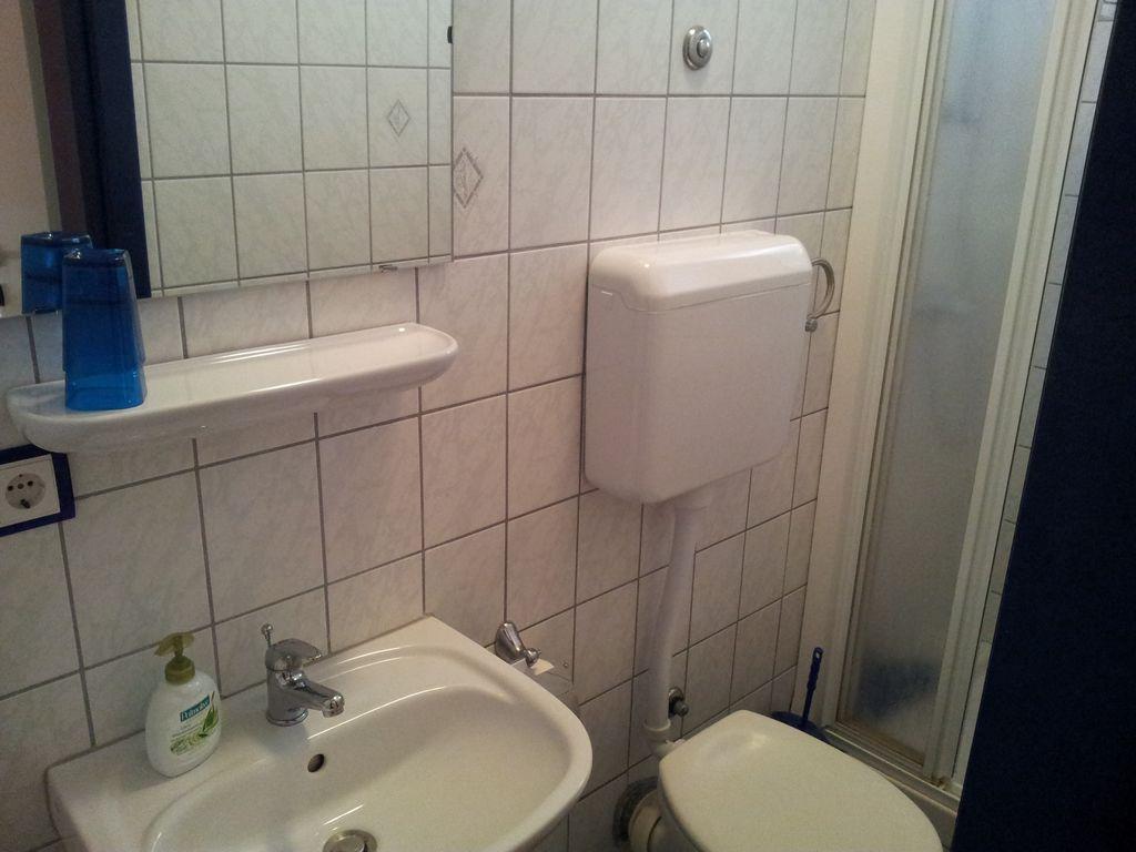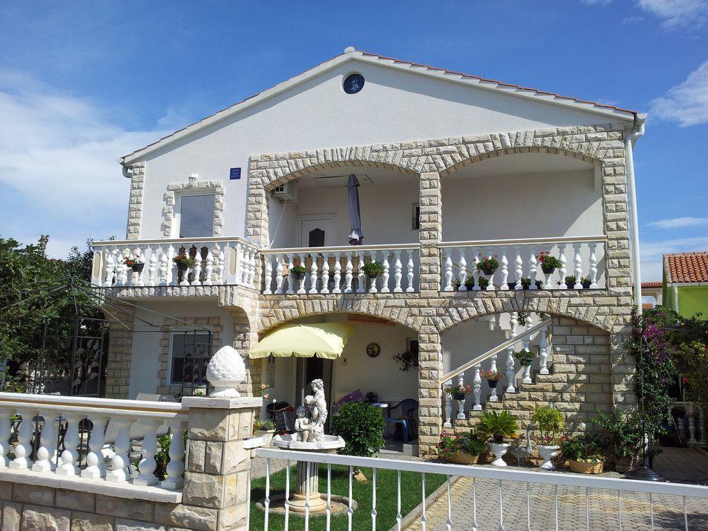 Modern apartment with two balconies on the first floor of a family house, consists of living room, kitchen, two bedrooms, each room includes its own bathroom, balcony and satellite TV, Wi-fi, in a quiet area, fourth row to the sea, 3 minutes walk to the beach, 5 minutes to the first shop and bus stop. In the yard there is a barbecue for guests and a parking space.