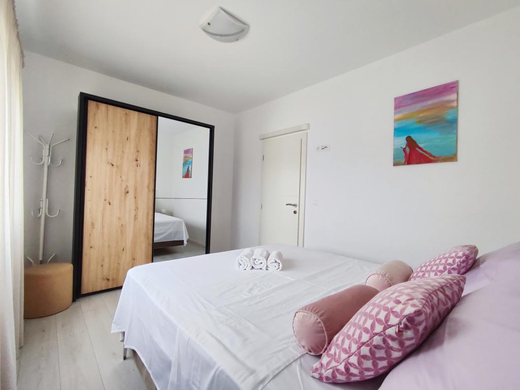 Modern and functionally decorated apartments with all the necessary devices for a perfect family holiday; air conditioning, washing machines, WIFI... The house with 2 separate apartments is located in a green oasis with a garden where children can play in the natural shade while they are not on the beach, and you a place for a grill is also available. Each apartment consists of two bedrooms, a living room and a spacious bathroom. Each apartment has its own parking lot. We are located in a quiet part of the island of Vir, a 3-minute walk to the beach. There is a supermarket, bakery, grocery store, ATM nearby. The center of Vira is 3 km away, so you will need a car to get there. In the evening, when the sun and heat subside, cetar Vira offers you a lot of good entertainment for the youngest, but also for the elderly who want to have a good time and dance. If you still want to visit a little more than Vir, the beautiful city of NIN is about 10 km away, and one of the most beautiful cities, ZADAR, is about 20 km away. Therefore, book your accommodation and enjoy a colorful and beautiful vacation.