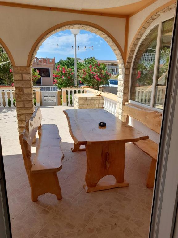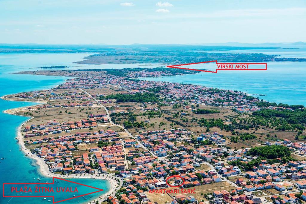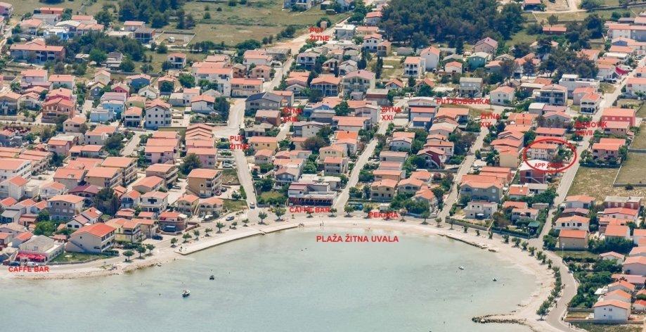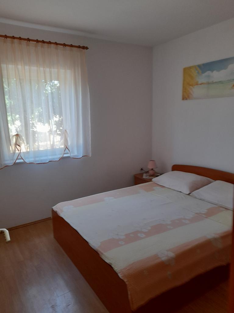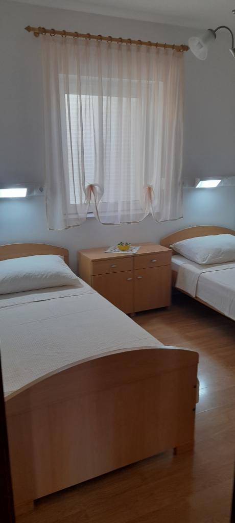 There are three apartments in the house. Two of them have two bedrooms, a living room, a kitchen, a bathroom and a large covered terrace. Each has one room with a double bed, and the second room has two single beds. The third apartment has one bedroom with a double bed, a kitchen, a bathroom and also a large covered terrace. All rooms have bedding. The kitchens have dishes for cooking and serving food, as well as a microwave and a kettle. Each apartment also has air conditioning, which is included in the price. All apartments have a separate entrance. There is a parking lot within the house that is available for all guests. A barbecue can also be used. Žitna uvala beach is 80m away. The beach is pebbly, and the sea is sandy. There is a promenade and a bicycle path along the beach, as well as several cafes, restaurants, pastry shops and bakeries. There are several shops within 100m. The center of Vir is 1800m away.