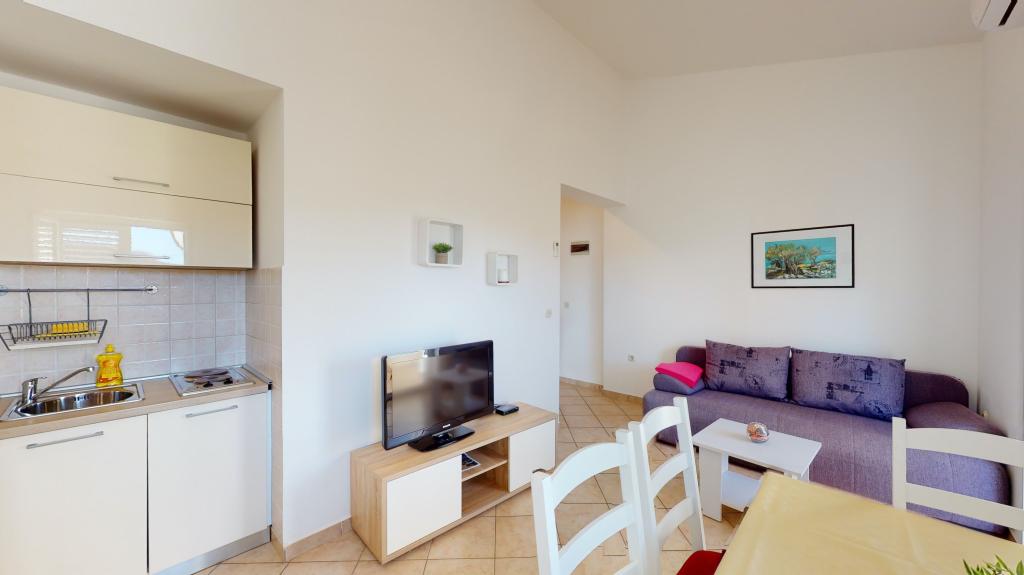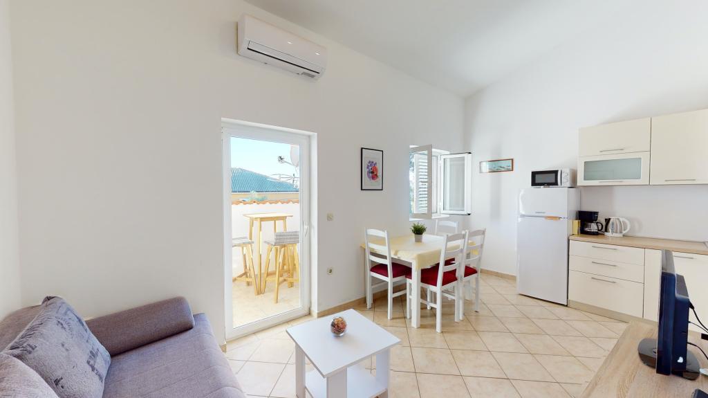 Apartment 3 ***, on the 1st floor with a beautiful sea view. Everything for a pleasant stay is located within a radius of 250 m: beach, town center, supermarket, restaurants. In the yard there is a grill and an additional terrace surrounded by greenery. The facility is located in a quiet environment.