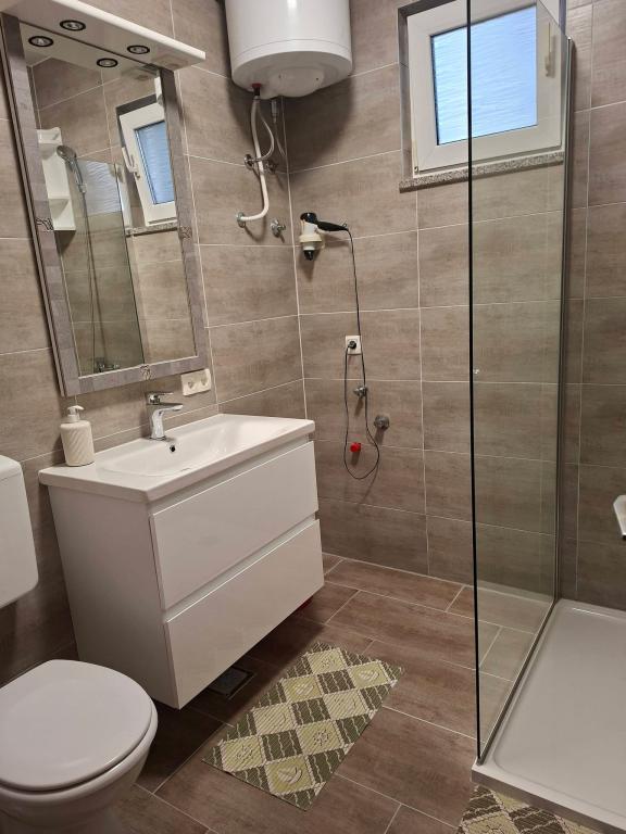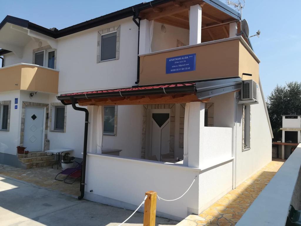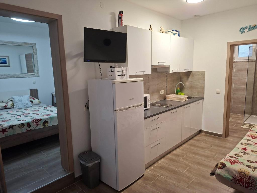 On the island of Vir, just 150 meters from the sea, there are two apartments with a capacity of up to 5 people. The apartments are modernly equipped, air-conditioned and adapted for a comfortable stay. Each apartment has its own terrace with a seating area, and in the fenced yard guests have access to private parking and a grill. The proximity of the sea and the beach, together with practical amenities, make these apartments a suitable choice for families and small groups of friends looking for accommodation in the immediate vicinity of all the main facilities. The apartments are suitable for accommodation of up to 5 people. They consist of two bedrooms, the apartments have a bathroom with a shower and a washing machine, and a fully equipped kitchen connected to the living room. For relaxation and outdoor living, there is also a terrace with a seating area. The apartments are air-conditioned and modernly decorated, ideal for a family vacation or a stay in a smaller group of friends.