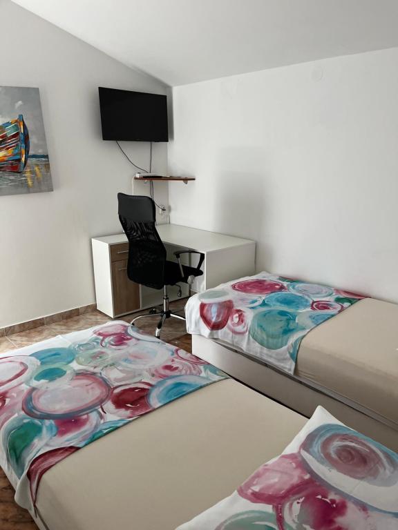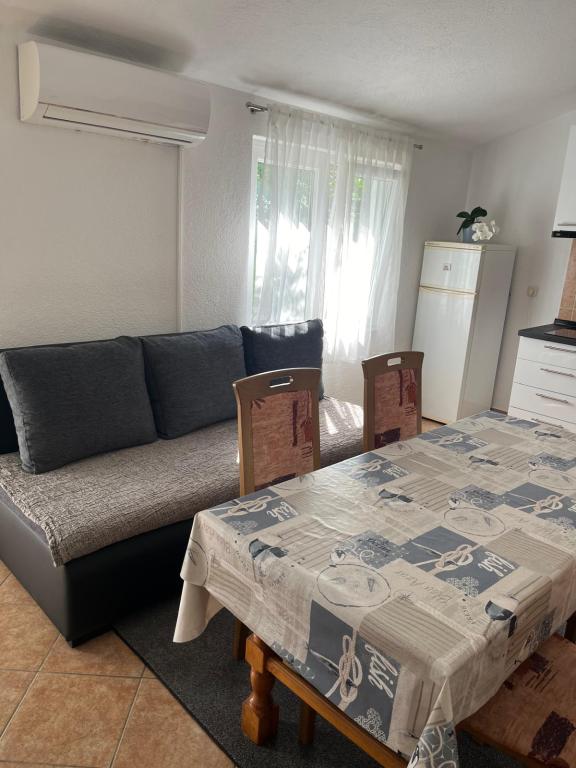 The family apartments Ivana are located on the island of Vir in the area of Soldatica, 200 m from the pebble beach of the same name. The apartments are equipped with all the facilities necessary for your pleasant stay. The southern apartment has two spacious bedrooms, one with a double bed and the other with three single beds. The spacious living room opens onto a covered terrace where you can enjoy your vacation carefree. The northern apartment also has two rooms, one with a double bed and one with two separate beds. From its terrace you have a view of the beautiful Velebit and the sea, while in the morning you can enjoy a beautiful sunrise while drinking coffee. Behind the house itself is a large fenced yard with parking, grill and space for socializing. Supermarket Konzum is located 100m from the accommodation, while all other facilities are 3 minutes away by car. The Ivana family apartments welcome you, we will do our best to make your vacation pleasant, so that you feel like our dear guests.