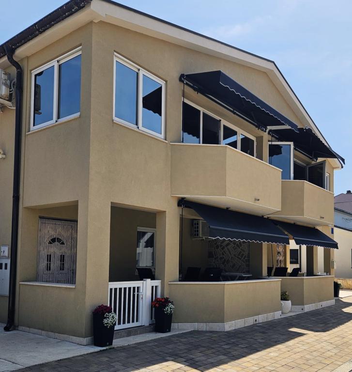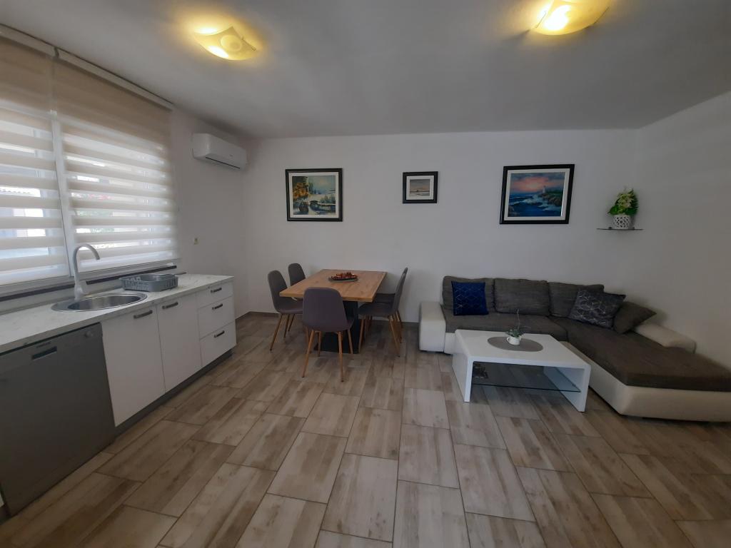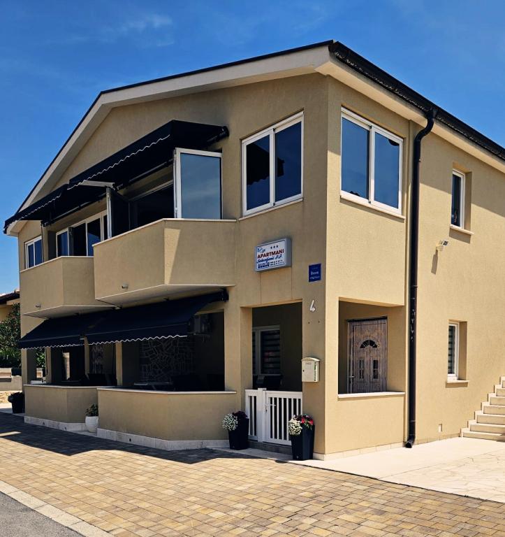 The apartments are located in a quiet part of the island of Vir, newly built, completely and modernly decorated. They are located 100 M from the beach. The facility is located 200m from shops, restaurants, casinos, bakeries, exchange offices, ATMs and cafes. The apartments consist of two bedrooms, living room, dining room, kitchen, bathroom, hallway and covered terraces. Each apartment has a grill on the terrace. The apartments are equipped with air conditioning, WIFI, satellite dish. Each apartment has its own parking space.