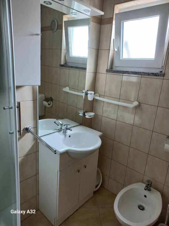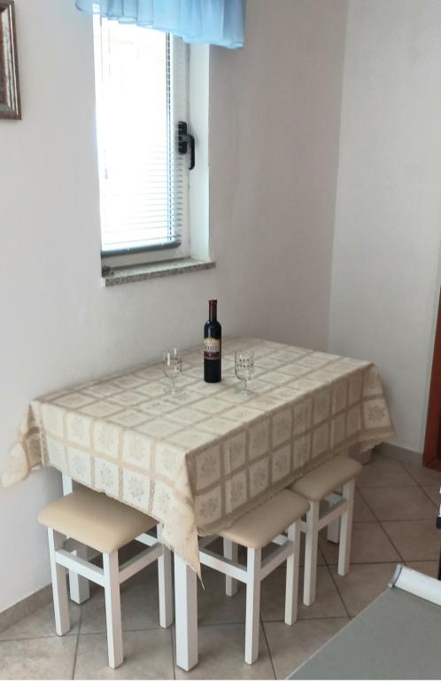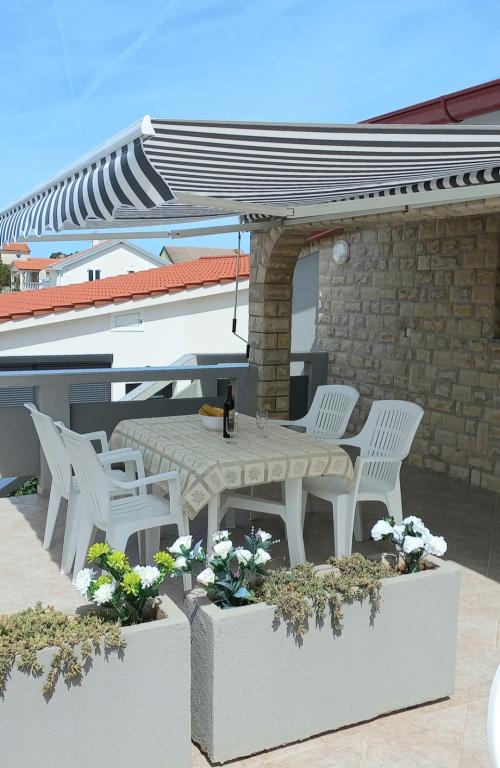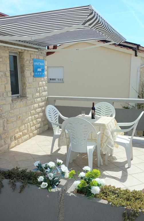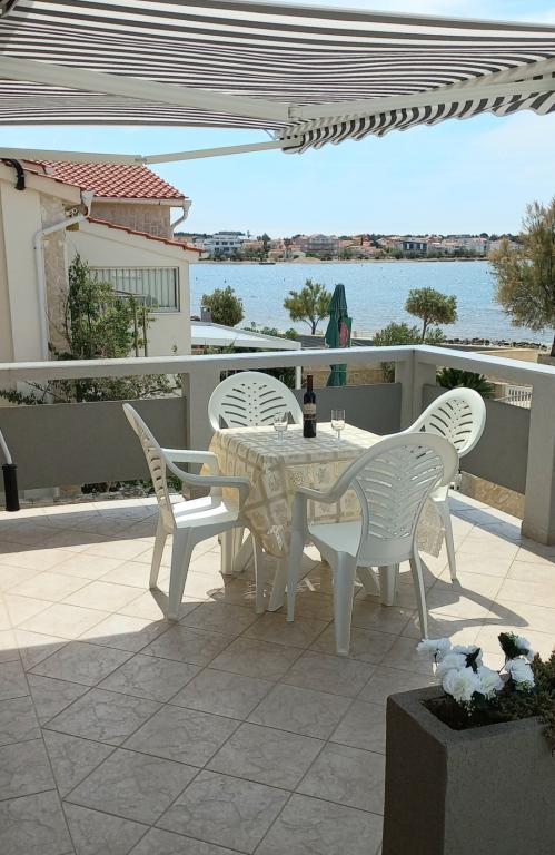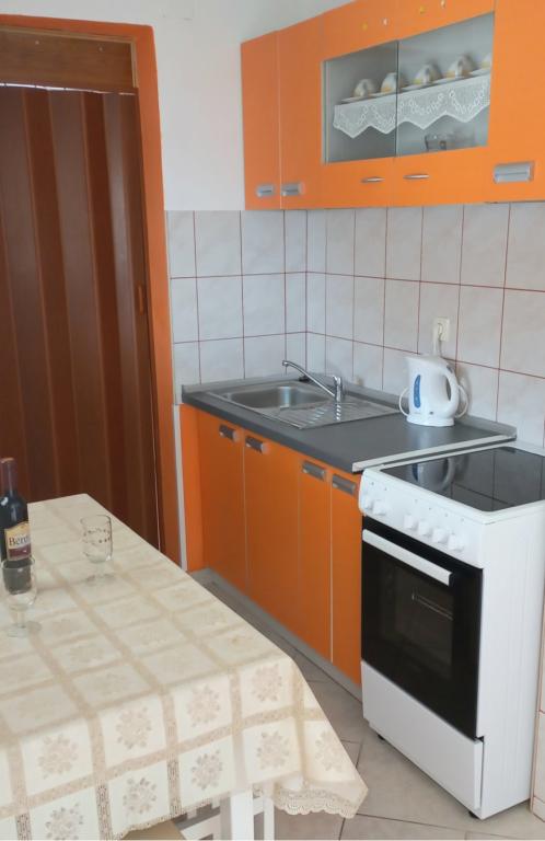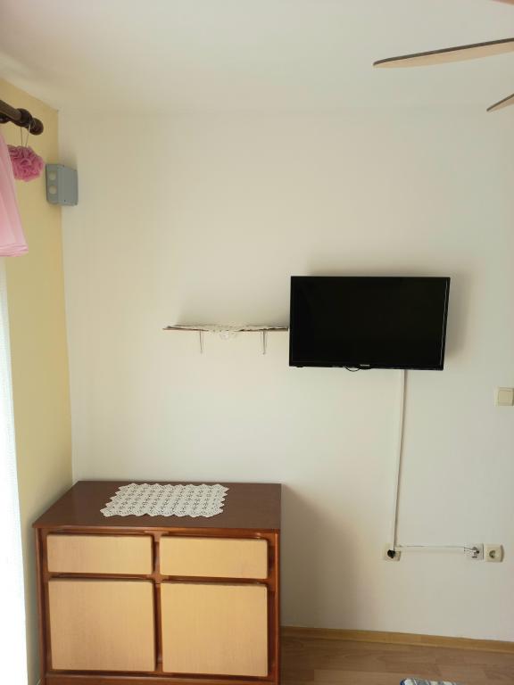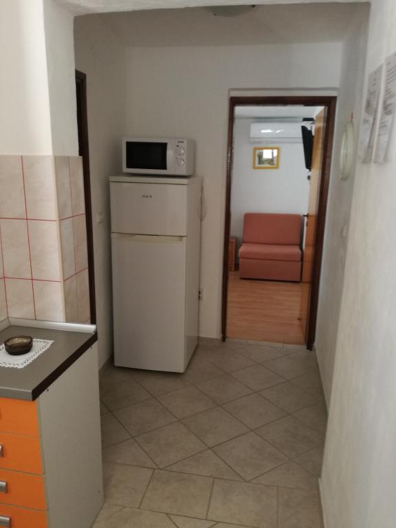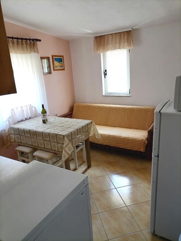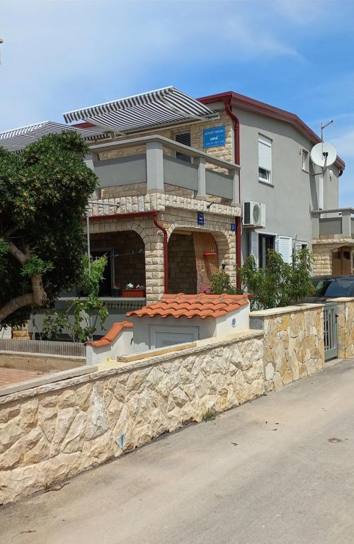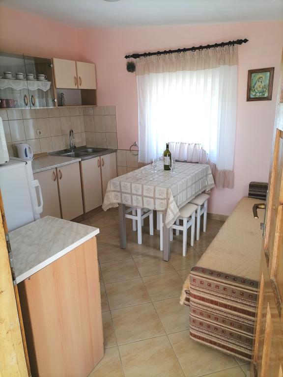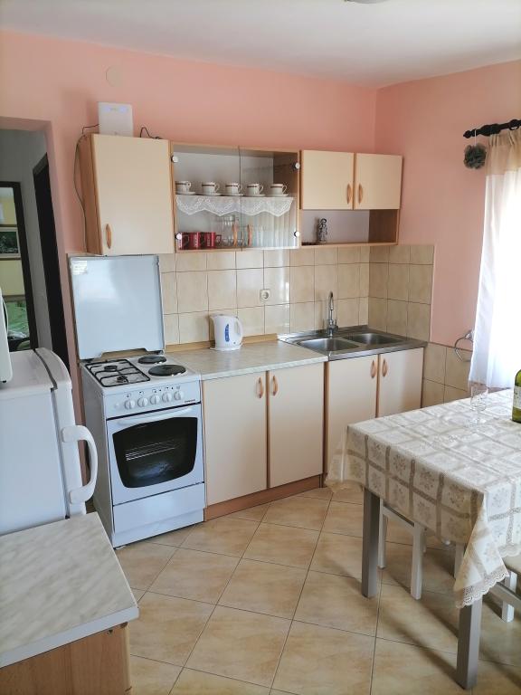 The apartments are located on the first floor of the house. With a large terrace and a view of the sea. They are located in a quiet area. Second row to the sea, distance from the beach and the sea 20m. The parking lot is located in the yard of the house and is intended only for smaller vehicles. Larger vehicles are parked on the shore. Guests have at their disposal a barbecue, air conditioning, TV, satellite TV, wi-fi.